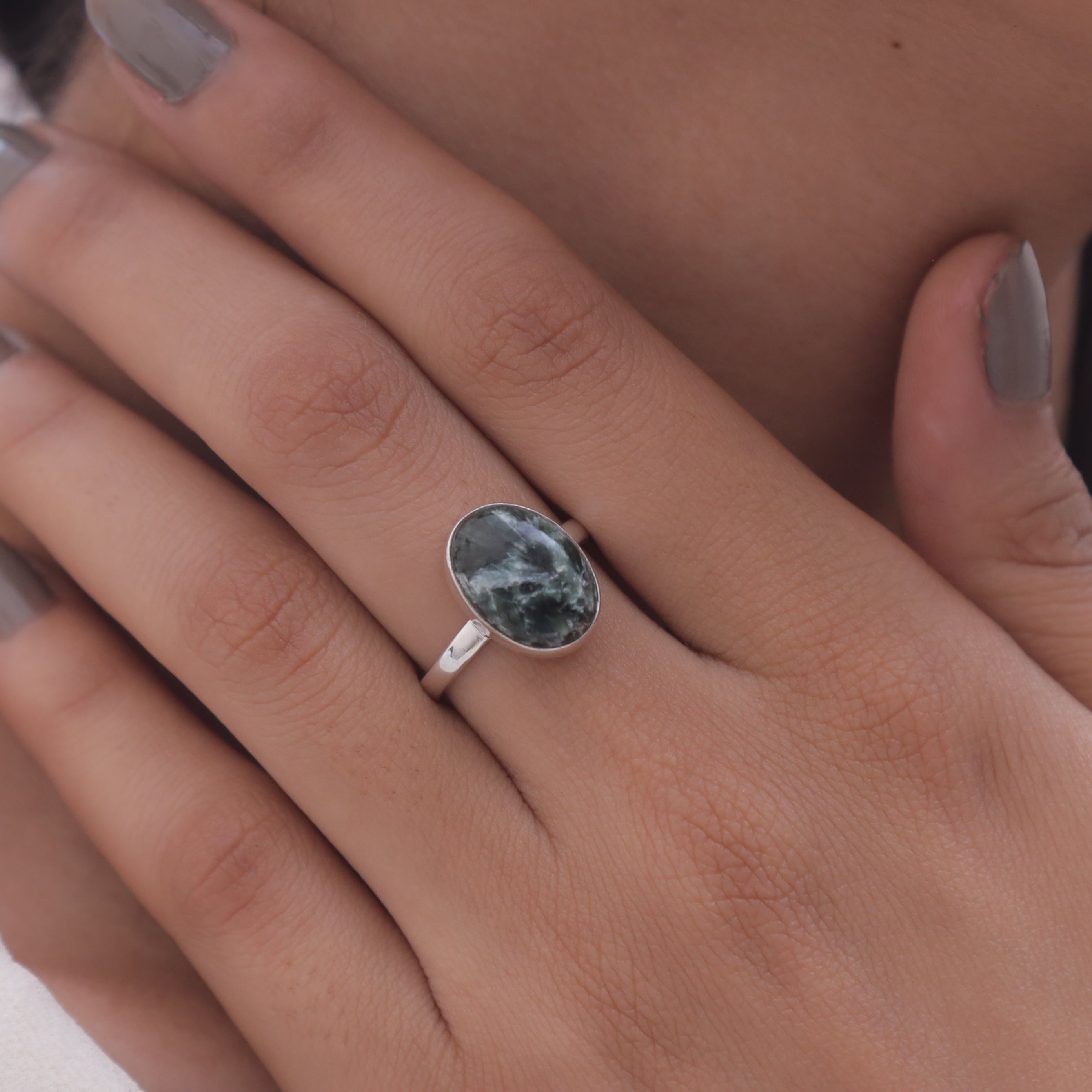 • Prehnite Sterling Silver Ring