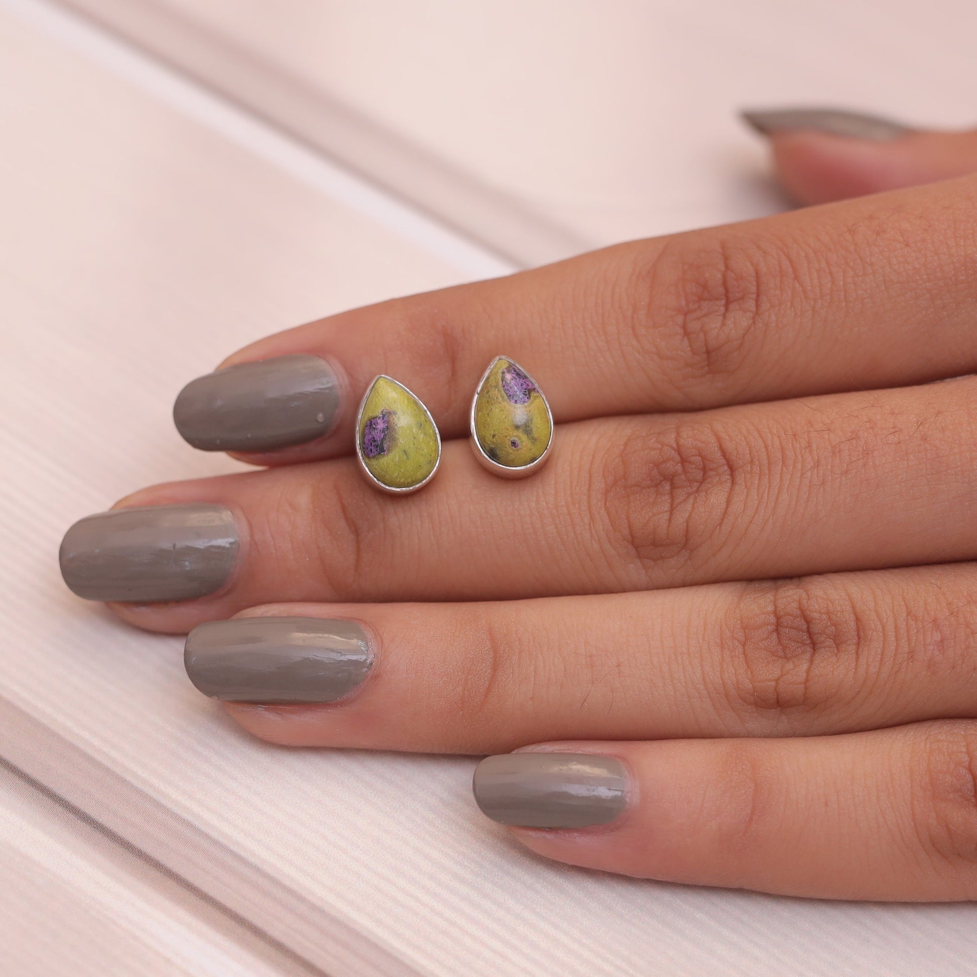 Elevate your style with the Atlantisite Sterling Silver Studs, a testament to blending natural beauty with refined craftsmanship. Each Studs features a radiant Atlantisite gemstone, carefully cut to enhance its inherent allure and brilliance. Set in 925 sterling silver, these studs offer durability and a lasting shine that complements the gemstone's vibrant hue.