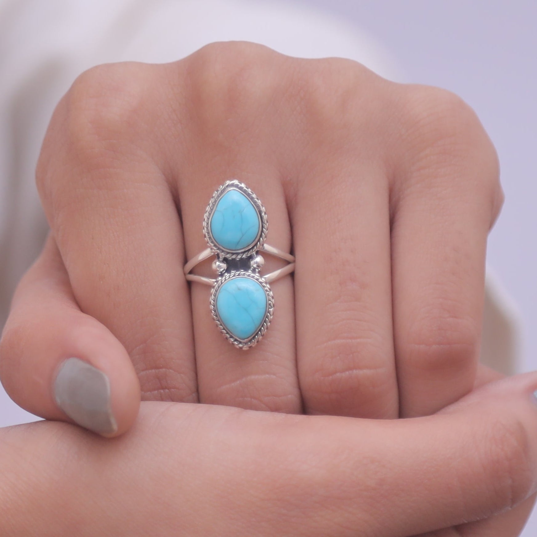 Elevate your style with the Arizona Turquoise Ring, a masterpiece that blends natural beauty with refined craftsmanship. The ring features a radiant Arizona Turquoise centrepiece, carefully cut to enhance its inherent allure and brilliance. Set in a band crafted from 925 sterling silver, it offers durability and a lasting shine that complements the gemstone's vibrant hue.