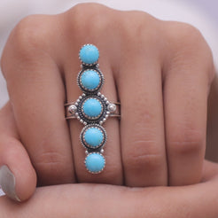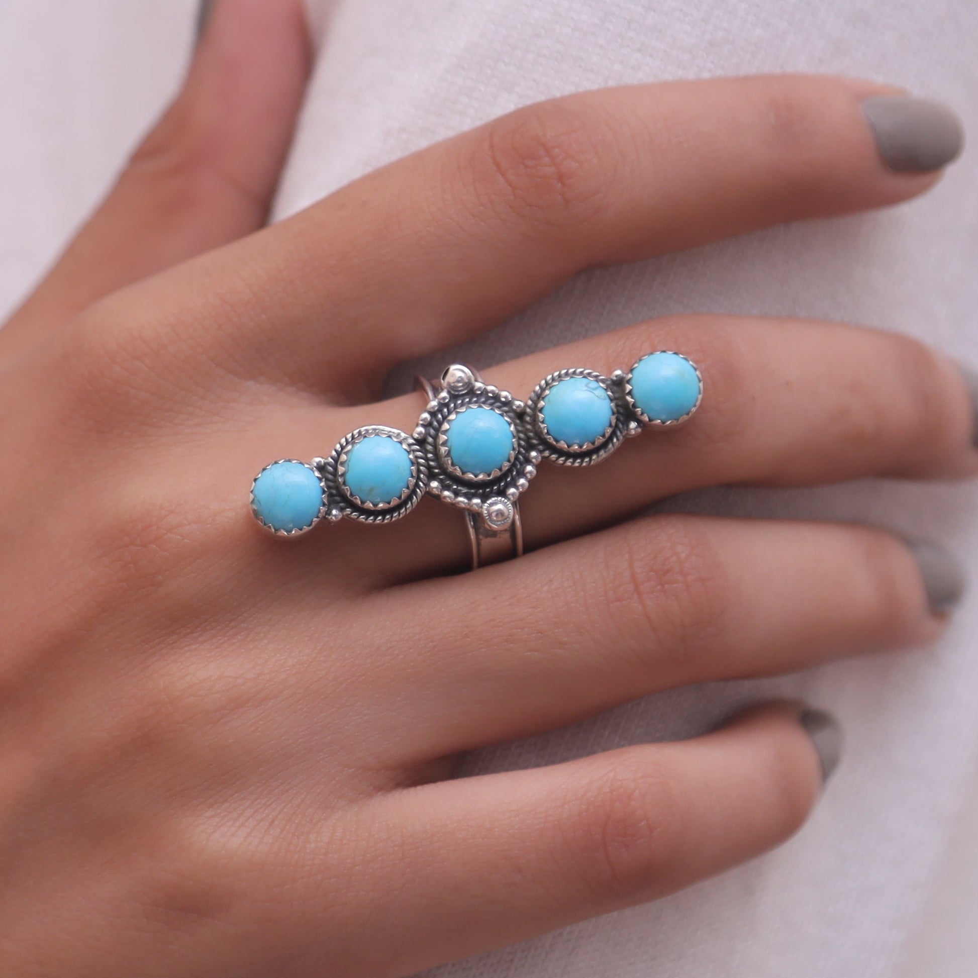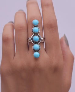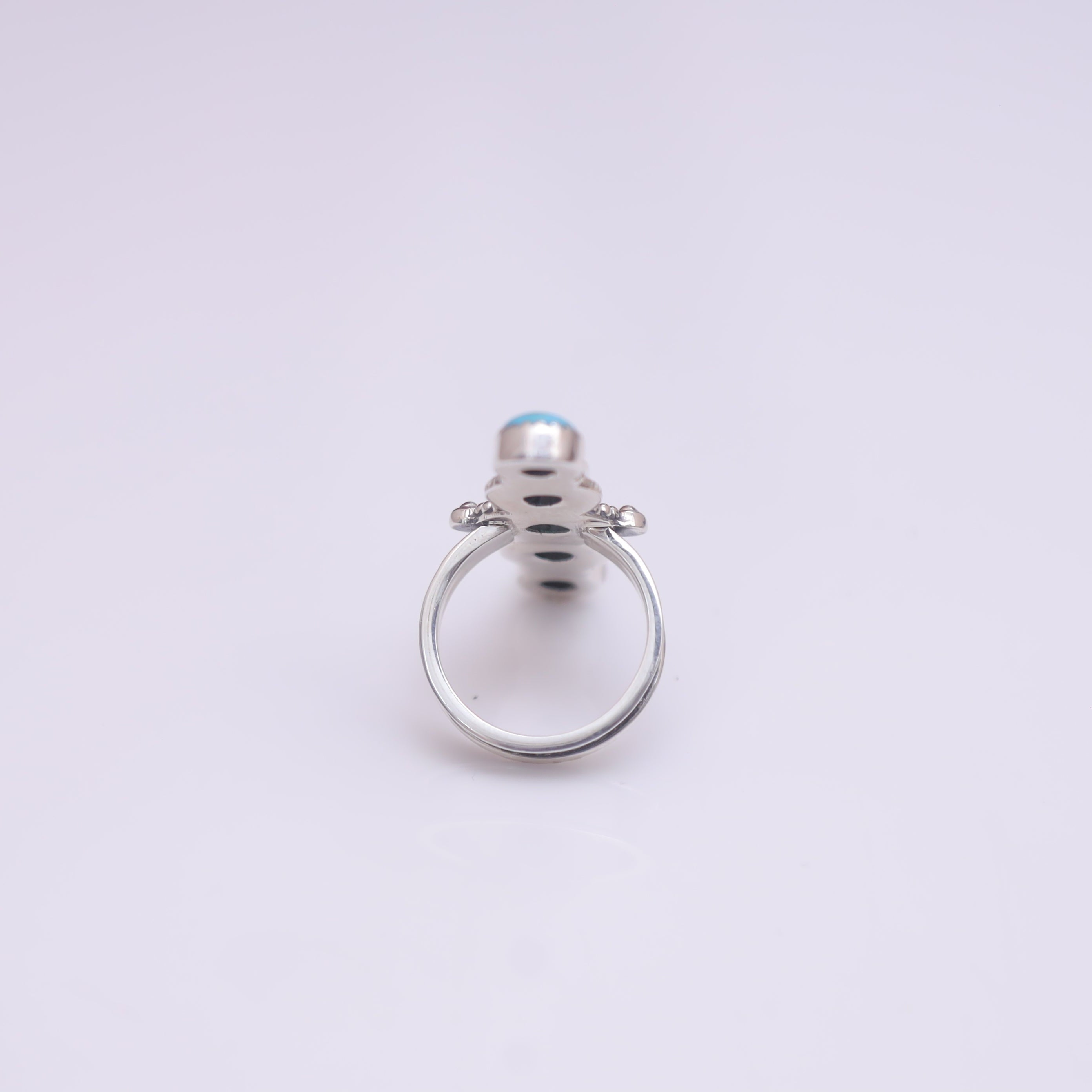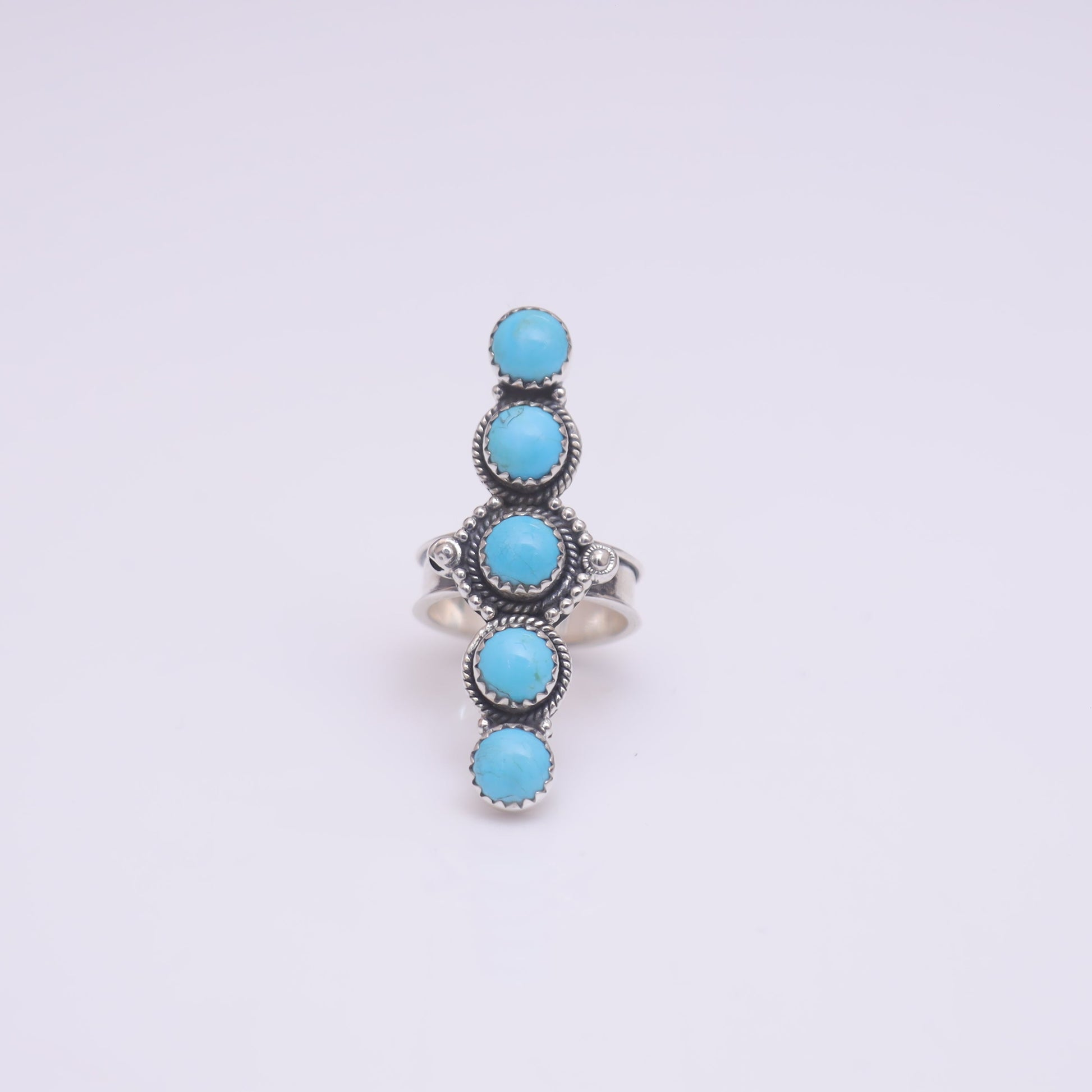 Each detail of the ring showcases expert craftsmanship, from the precisely set prongs securing the Arizona Turquoise to the polished silver band ensuring a comfortable fit. The design allows the Arizona Turquoise to shine as the focal point, making it a versatile accessory suitable for everyday wear or special occasions.