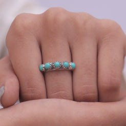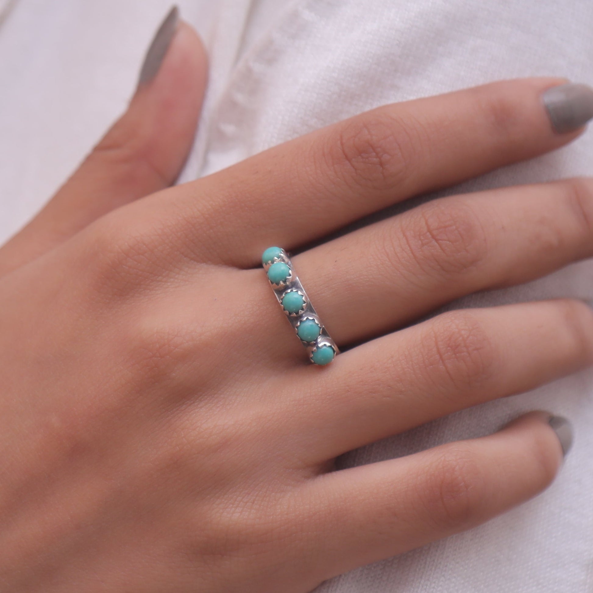 Each detail of the ring showcases expert craftsmanship, from the precisely set prongs securing the Arizona Turquoise to the polished silver band ensuring a comfortable fit. The design allows the Arizona Turquoise to shine as the focal point, making it a versatile accessory suitable for everyday wear or special occasions.