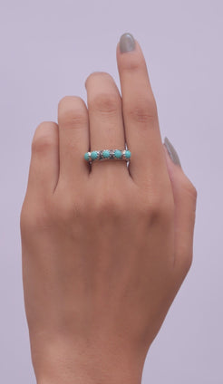 Elevate your style with the Arizona Turquoise Ring, a masterpiece that blends natural beauty with refined craftsmanship. The ring features a radiant Arizona Turquoise centrepiece, carefully cut to enhance its inherent allure and brilliance. Set in a band crafted from 925 sterling silver, it offers durability and a lasting shine that complements the gemstone's vibrant hue.