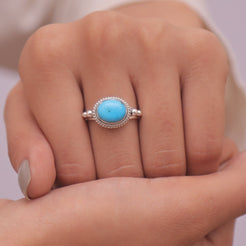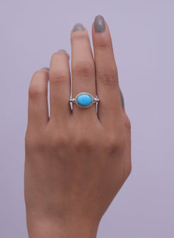 Elevate your style with the Arizona Turquoise Ring, a masterpiece that blends natural beauty with refined craftsmanship. The ring features a radiant Arizona Turquoise centrepiece, carefully cut to enhance its inherent allure and brilliance. Set in a band crafted from 925 sterling silver, it offers durability and a lasting shine that complements the gemstone's vibrant hue.