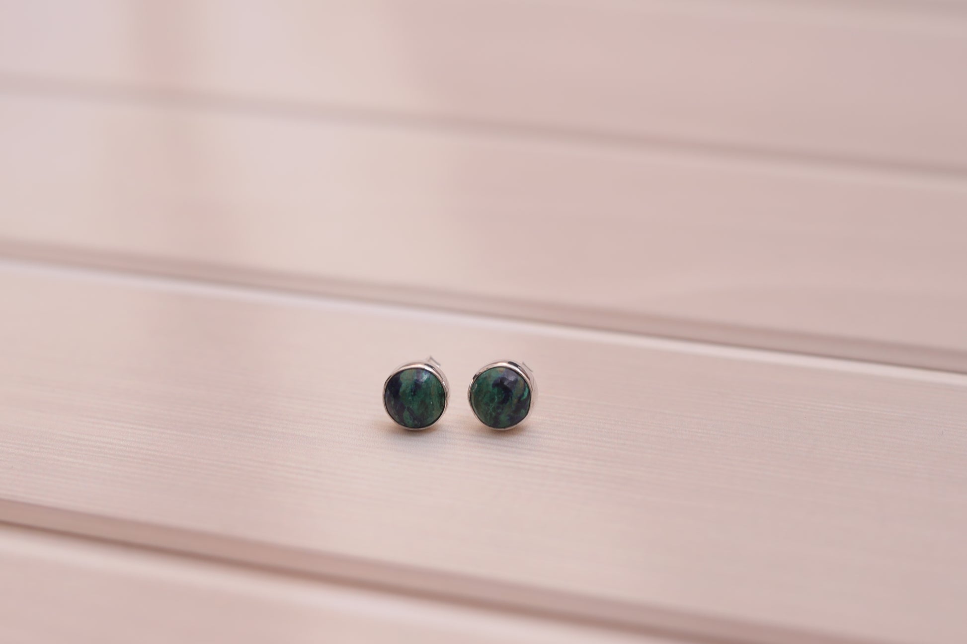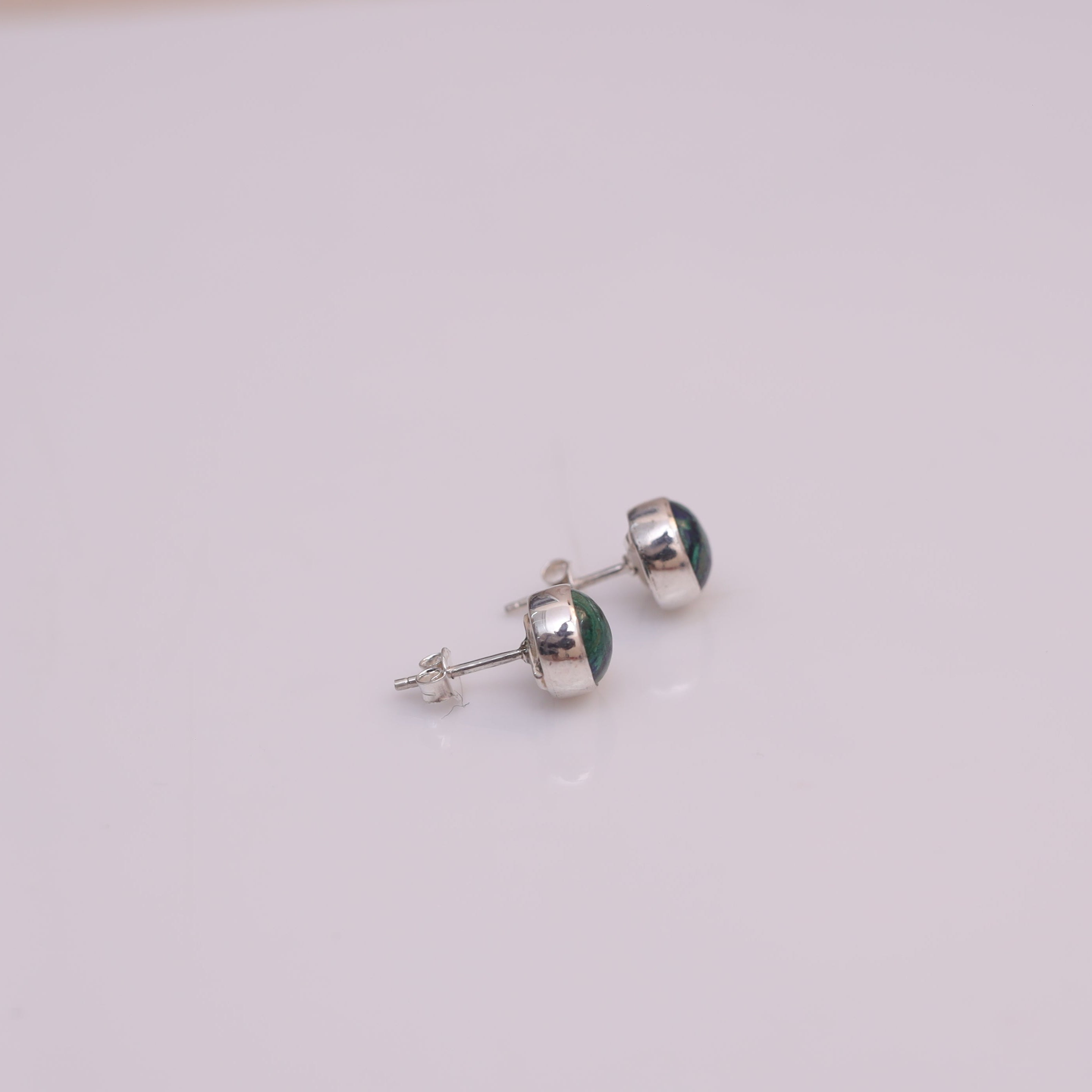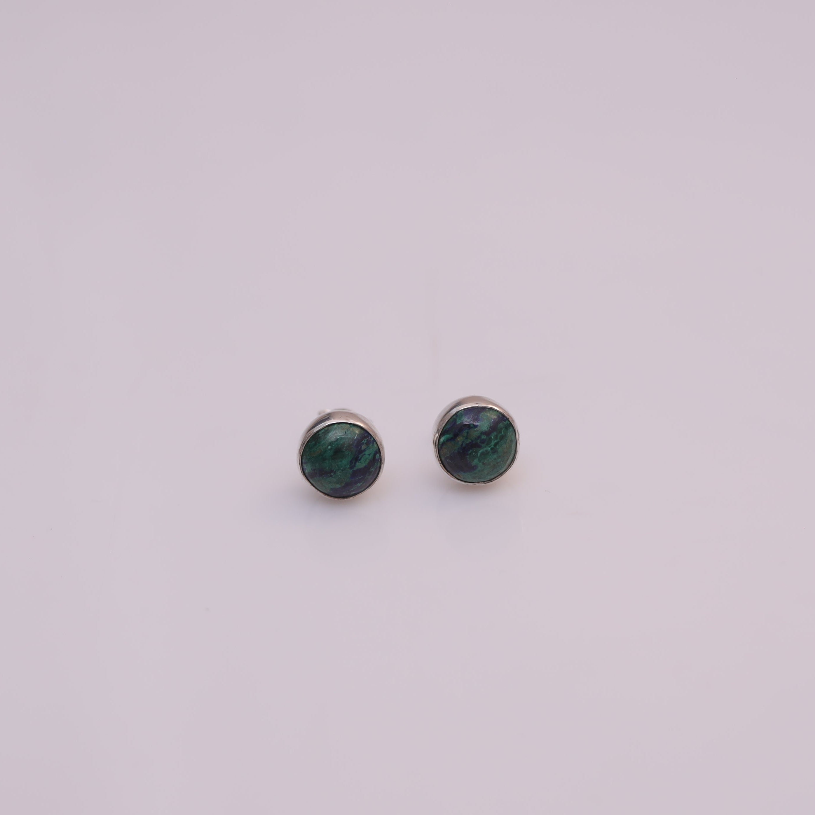 Each detail of the Studs showcases expert craftsmanship, from the precisely set prongs securing the azurite malachite to the polished silver band ensuring a comfortable fit. The design allows the azurite malachite to shine as the focal point, making it a versatile accessory suitable for everyday wear or special occasions.