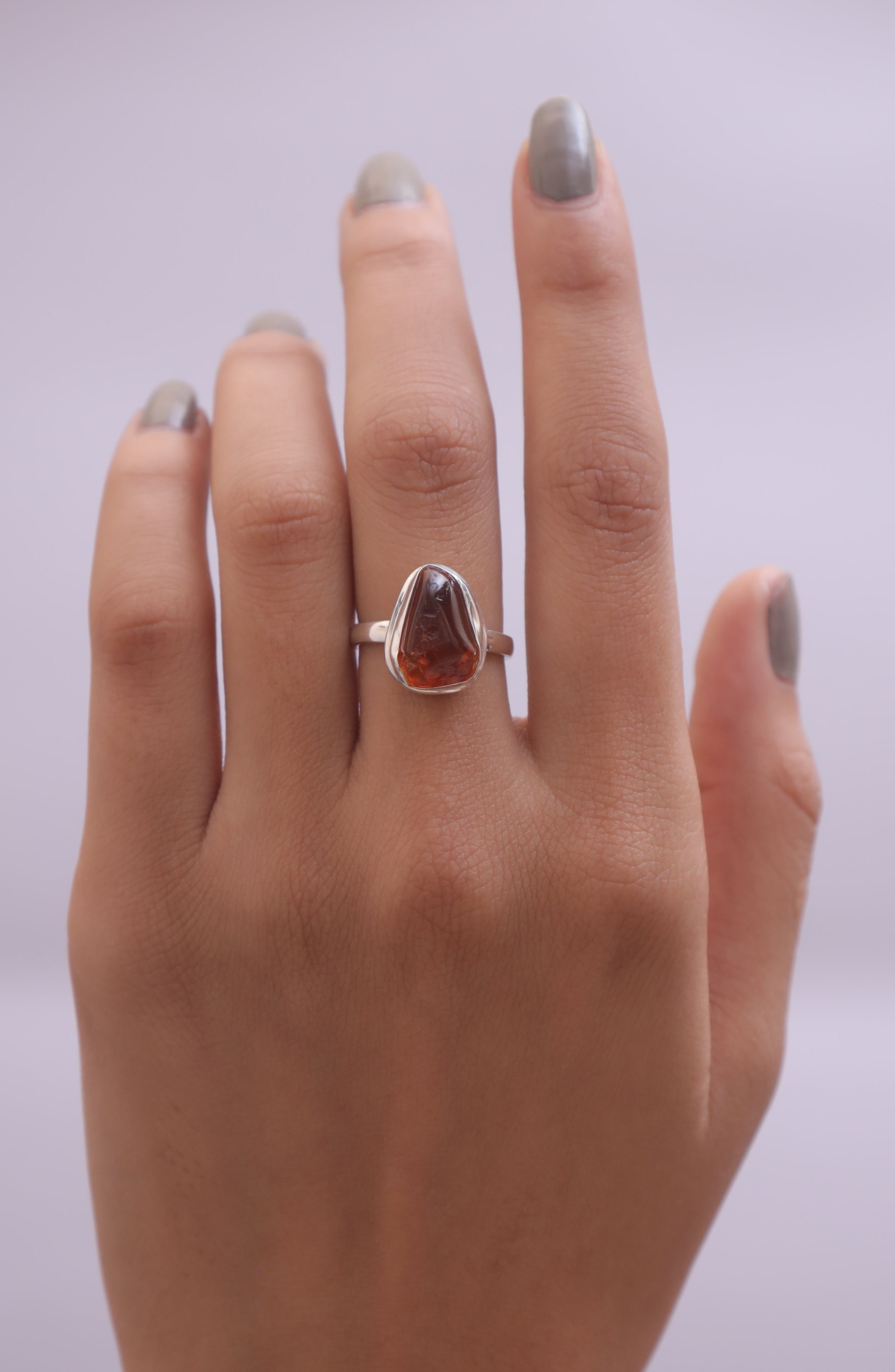 Elevate your style with the Baltic Amber Ring, a masterpiece that blends natural beauty with refined craftsmanship. The ring features a radiant Baltic Amber centerpiece, carefully cut to enhance its inherent allure and brilliance. Set in a band crafted from 925 sterling silver, it offers durability and a lasting shine that complements the gemstone's vibrant hue.