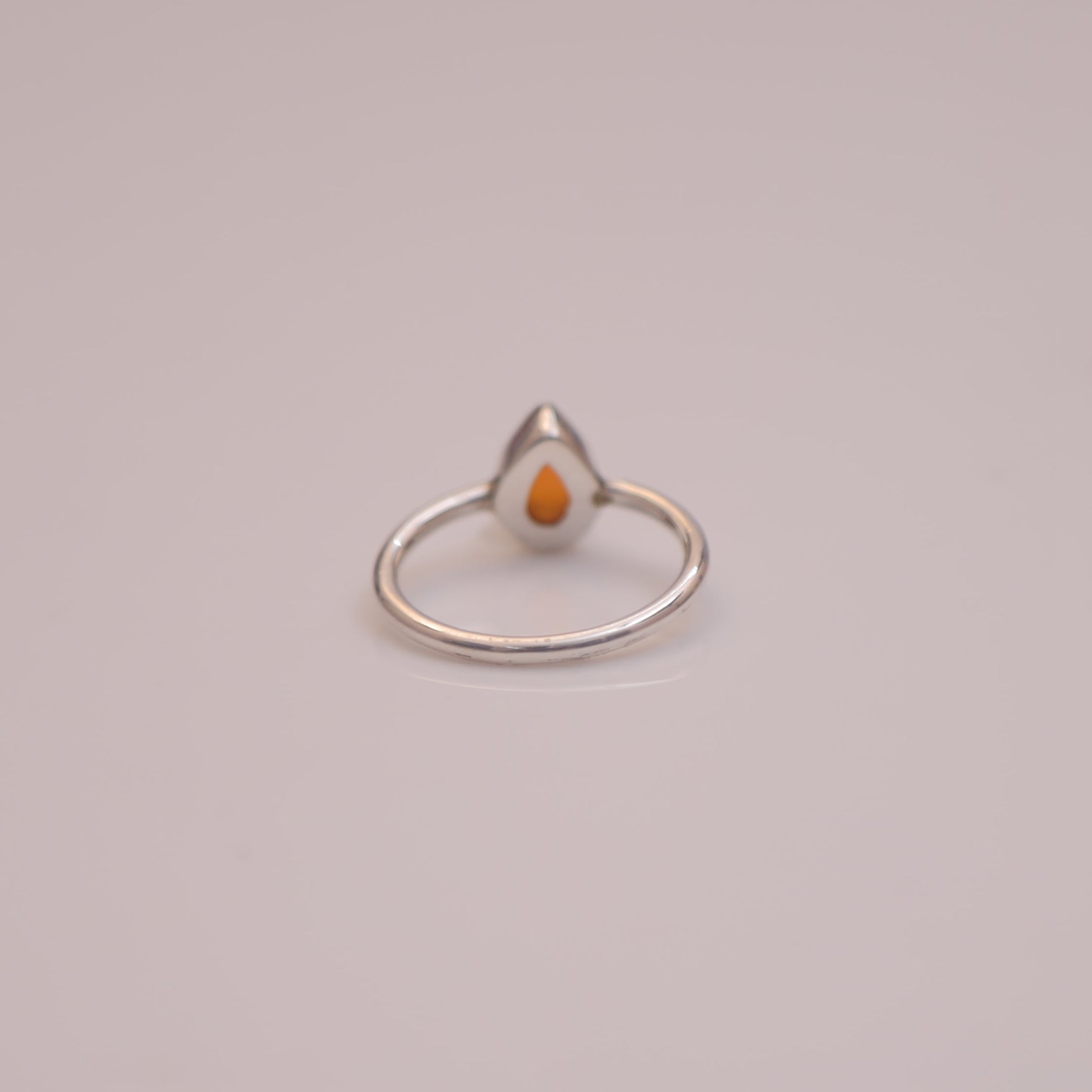 Each detail of the ring showcases expert craftsmanship, from the precisely set prongs securing the Carnelian to the polished silver band ensuring a comfortable fit. The design allows the Carnelian to shine as the focal point, making it a versatile accessory suitable for everyday wear or special occasions.