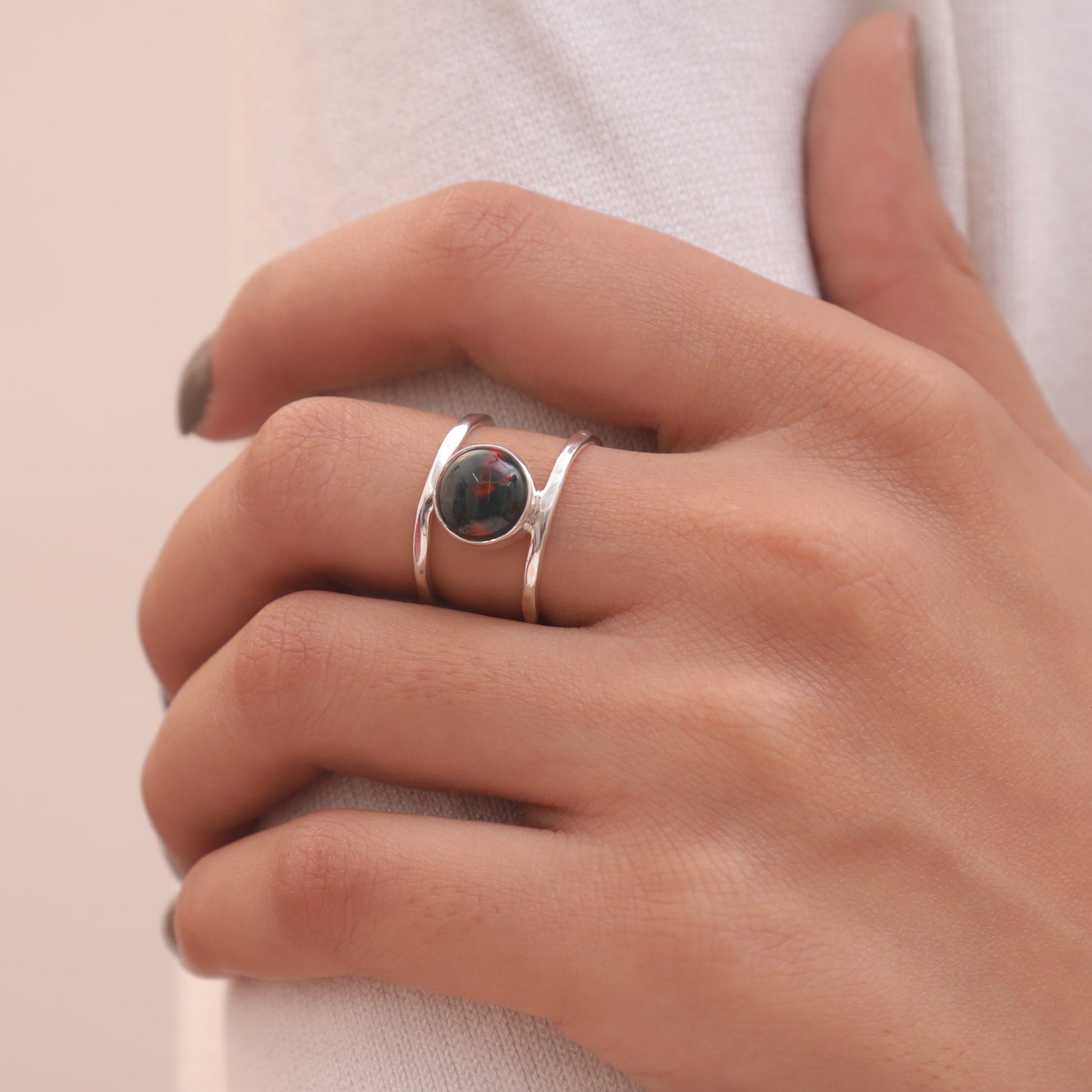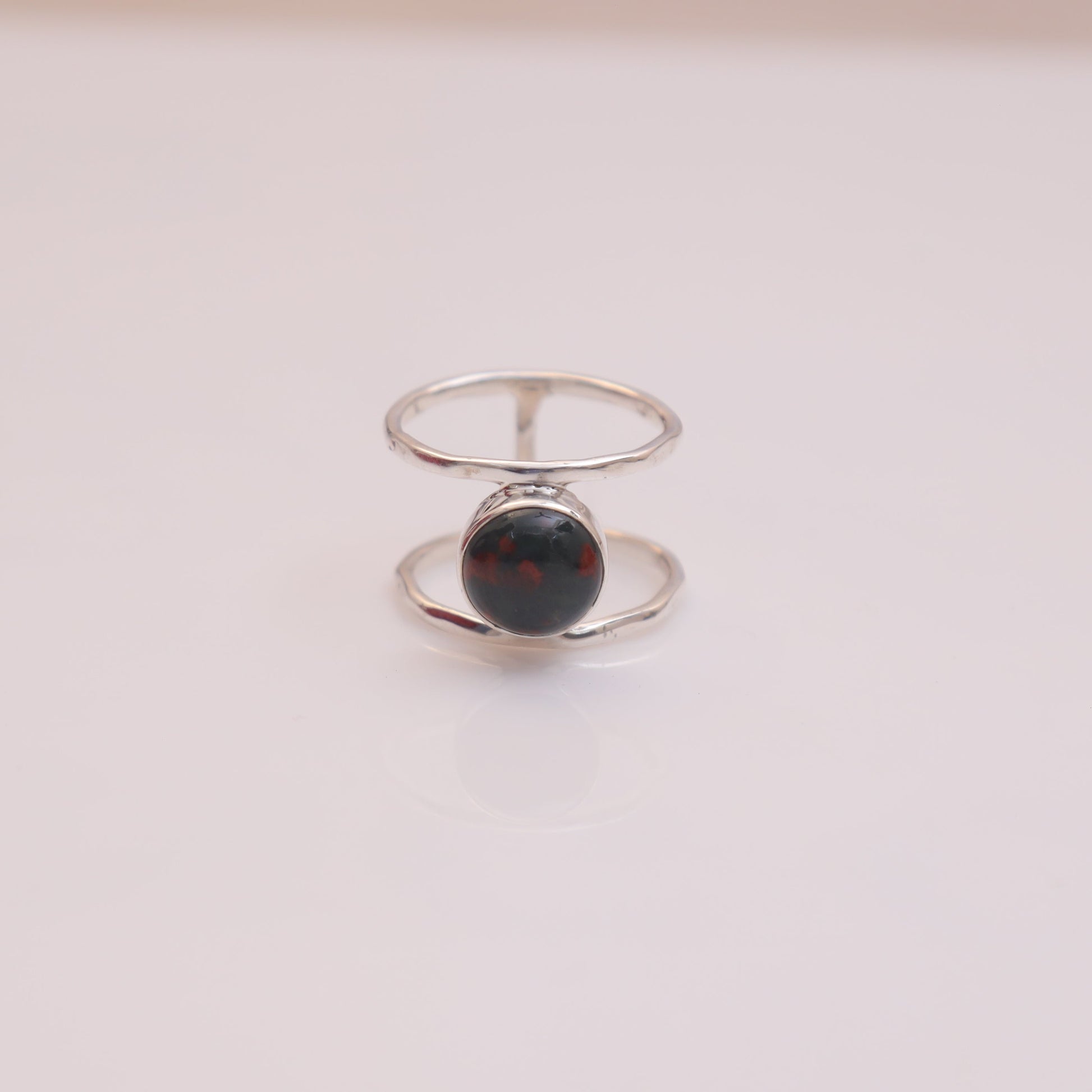 Elevate your style with the Bloodstone, a masterpiece that blends natural beauty with refined craftsmanship. The ring features a radiant Bloodstone centerpiece, carefully cut to enhance its inherent allure and brilliance. Set in a band crafted from 925 sterling silver, it offers durability and a lasting shine that complements the gemstone’s mesmerizing glow.
