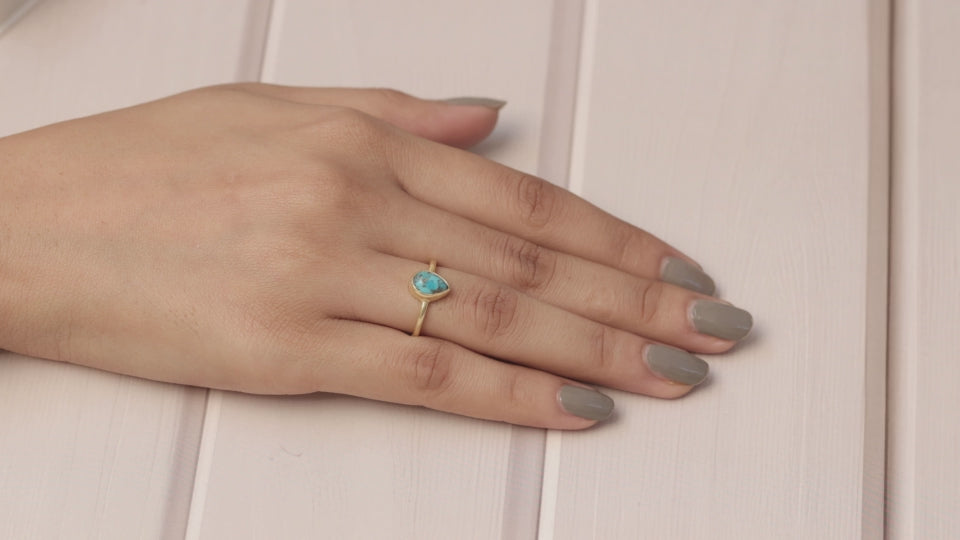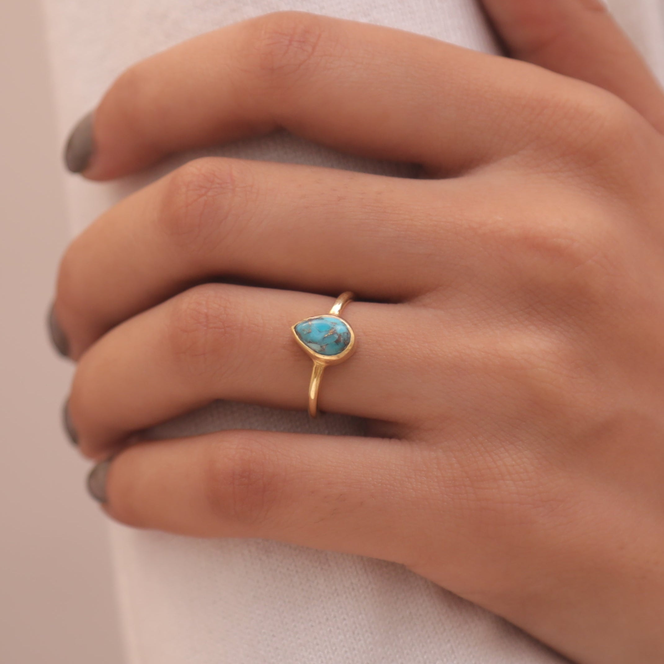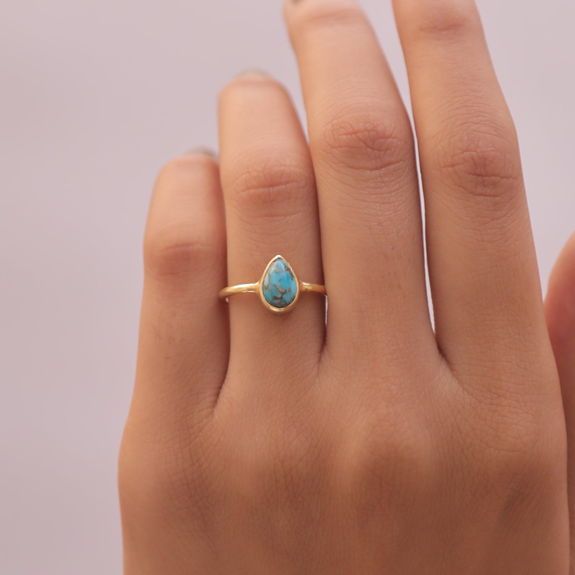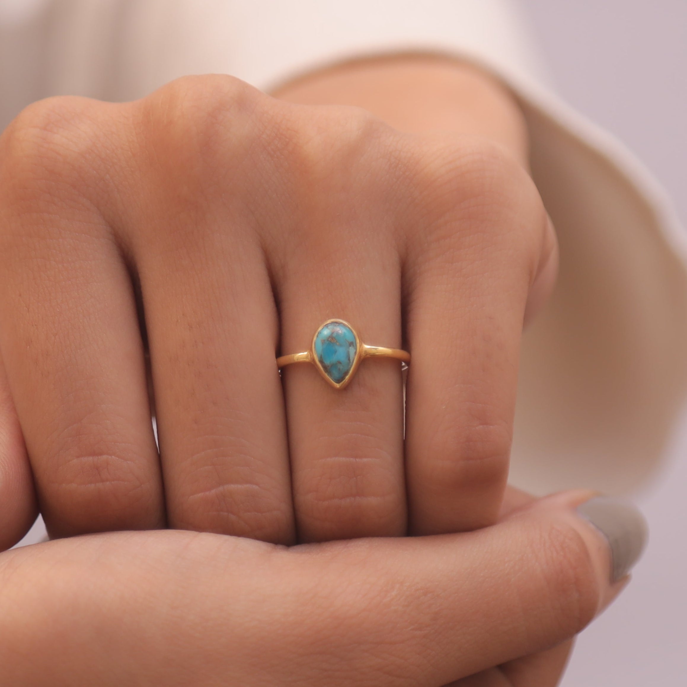 Blue Copper 18k Gold Plated Turquoise Solid Silver Ring