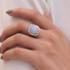 Elevate your style with the Blue Lace Agate , a masterpiece that blends natural beauty with refined craftsmanship. The ring features a radiant Blue Lace Agate centerpiece, carefully cut to enhance its inherent allure and brilliance. Set in a band crafted from 925 sterling silver, it offers durability and a lasting shine that complements the gemstone’s mesmerizing glow.