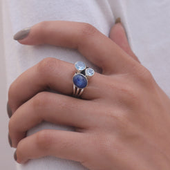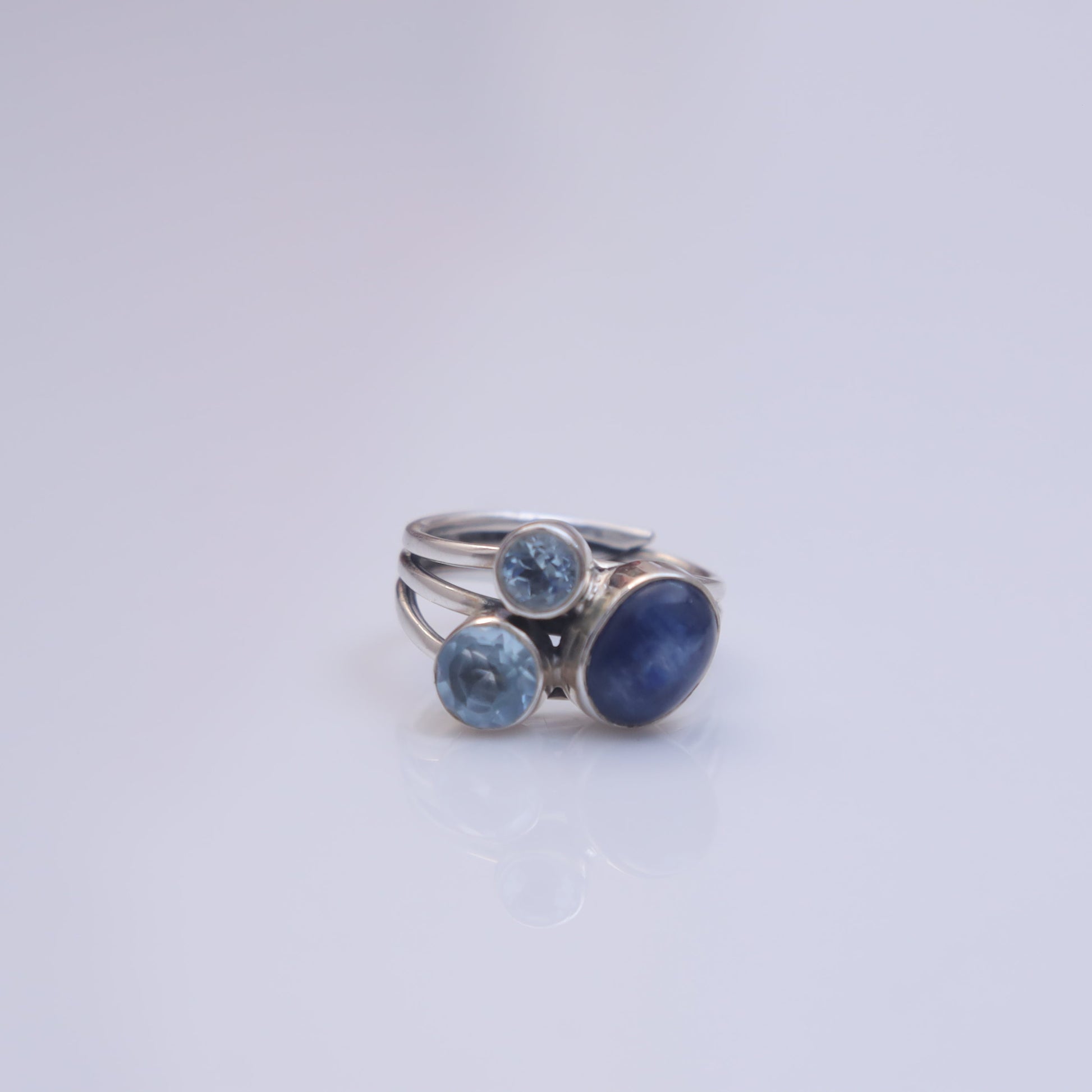 Elevate your style with the Blue Topaz & Kyanite a masterpiece that blends natural beauty with refined craftsmanship. The ring features a radiant Blue Topaz & Kyanite centerpiece, carefully cut to enhance its inherent allure and brilliance. Set in a band crafted from 925 sterling silver, it offers durability and a lasting shine that complements the gemstone’s mesmerizing glow.