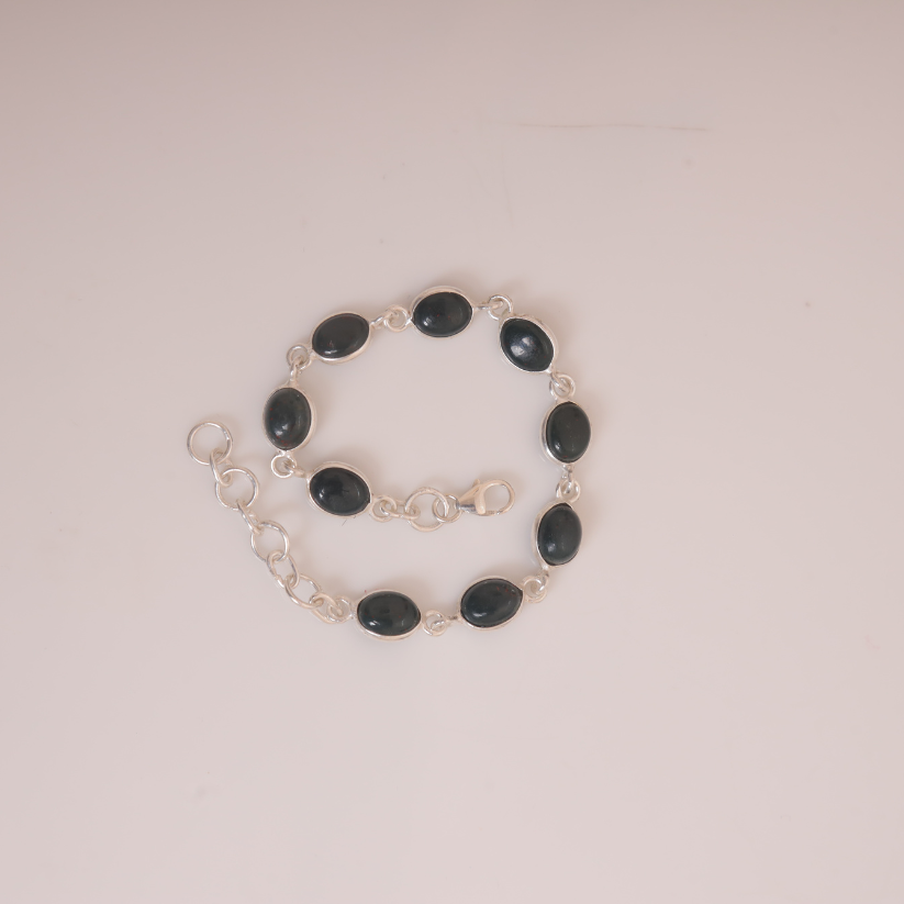 Elevate your style with the Bloodstone Bracelet, a masterpiece that blends natural beauty with refined craftsmanship. The bracelet features a radiant Bloodstone centerpiece, carefully cut to enhance its inherent allure and brilliance. Set in a band crafted from 925 sterling silver, it offers durability and a lasting shine that complements the gemstone’s deep green and red hues.