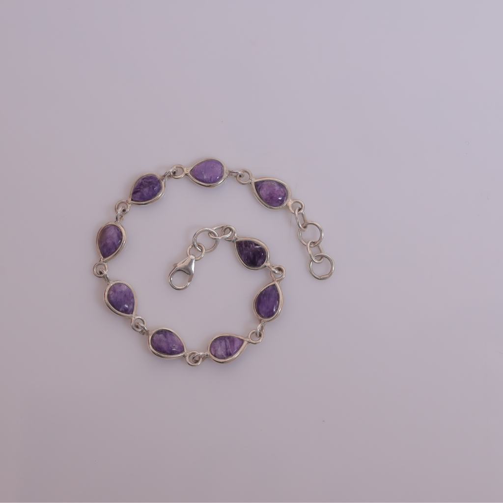 Charoite Sterling Silver Bracelet    Gemstone - Charoite Weight - 4.2 gm Stone Length - 7 mm Stone Width - 5 mm   Bra...