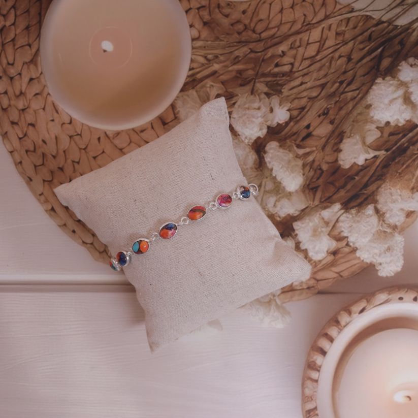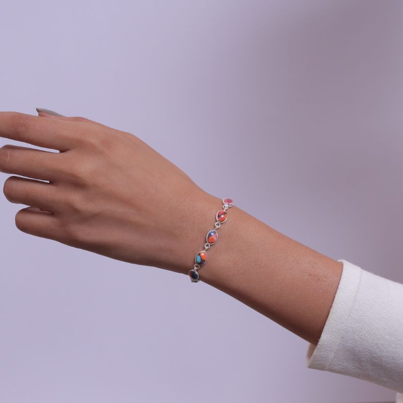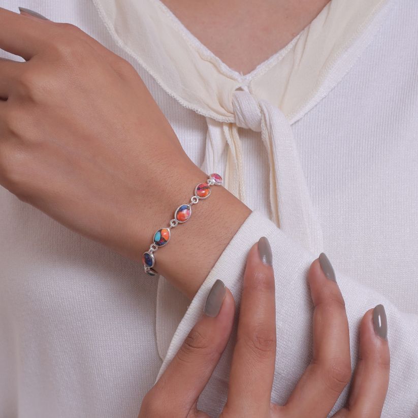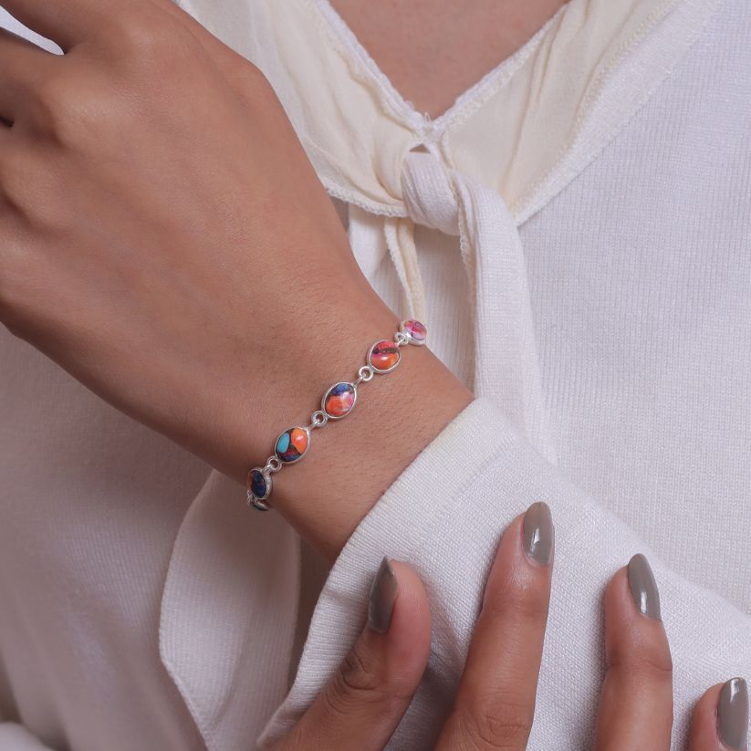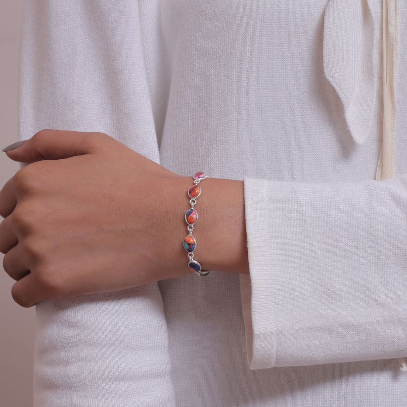 Elevate your style with the Pink Oyster Bracelet, a masterpiece that blends natural beauty with refined craftsmanship. The bracelet features a radiant Pink Oyster centerpiece, carefully cut to enhance its inherent allure and brilliance. Set in a band crafted from 925 sterling silver, it offers durability and a lasting shine that complements the gemstone's vibrant hue.