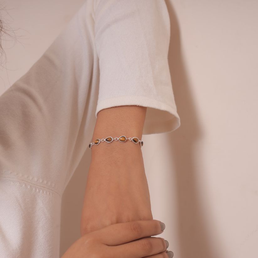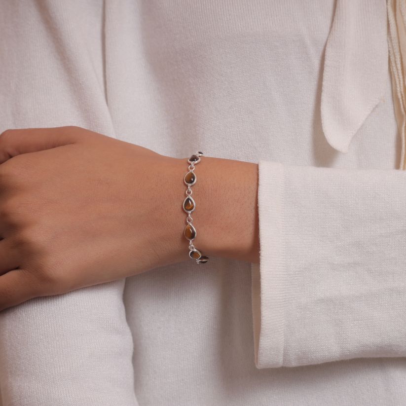 Elevate your style with the Tiger Eye Bracelet, a masterpiece that blends natural beauty with refined craftsmanship. The bracelet features a radiant Tiger Eye centerpiece, carefully cut to enhance its inherent allure and brilliance. Set in a band crafted from 925 sterling silver, it offers durability and a lasting shine that complements the gemstone’s warm golden-brown hues.
