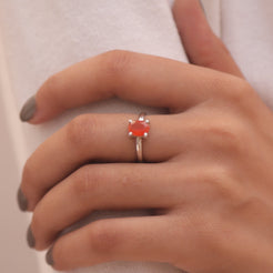 Elevate your style with the Carnelian , a masterpiece that blends natural beauty with refined craftsmanship. The ring features a radiant Carnelian centerpiece, carefully cut to enhance its inherent allure and brilliance. Set in a band crafted from 925 sterling silver, it offers durability and a lasting shine that complements the gemstone’s mesmerizing glow.