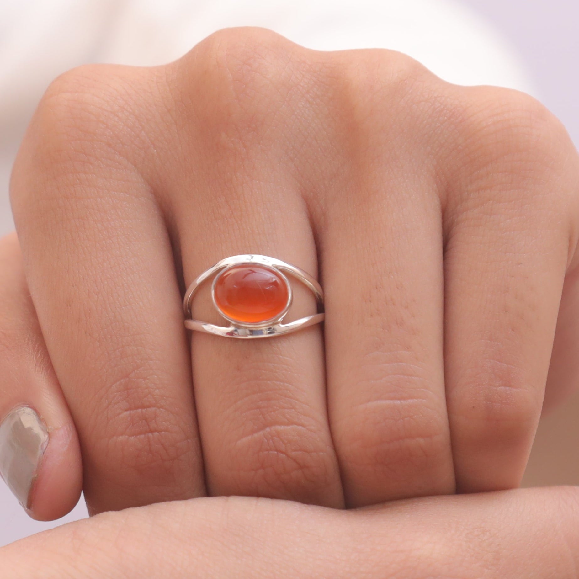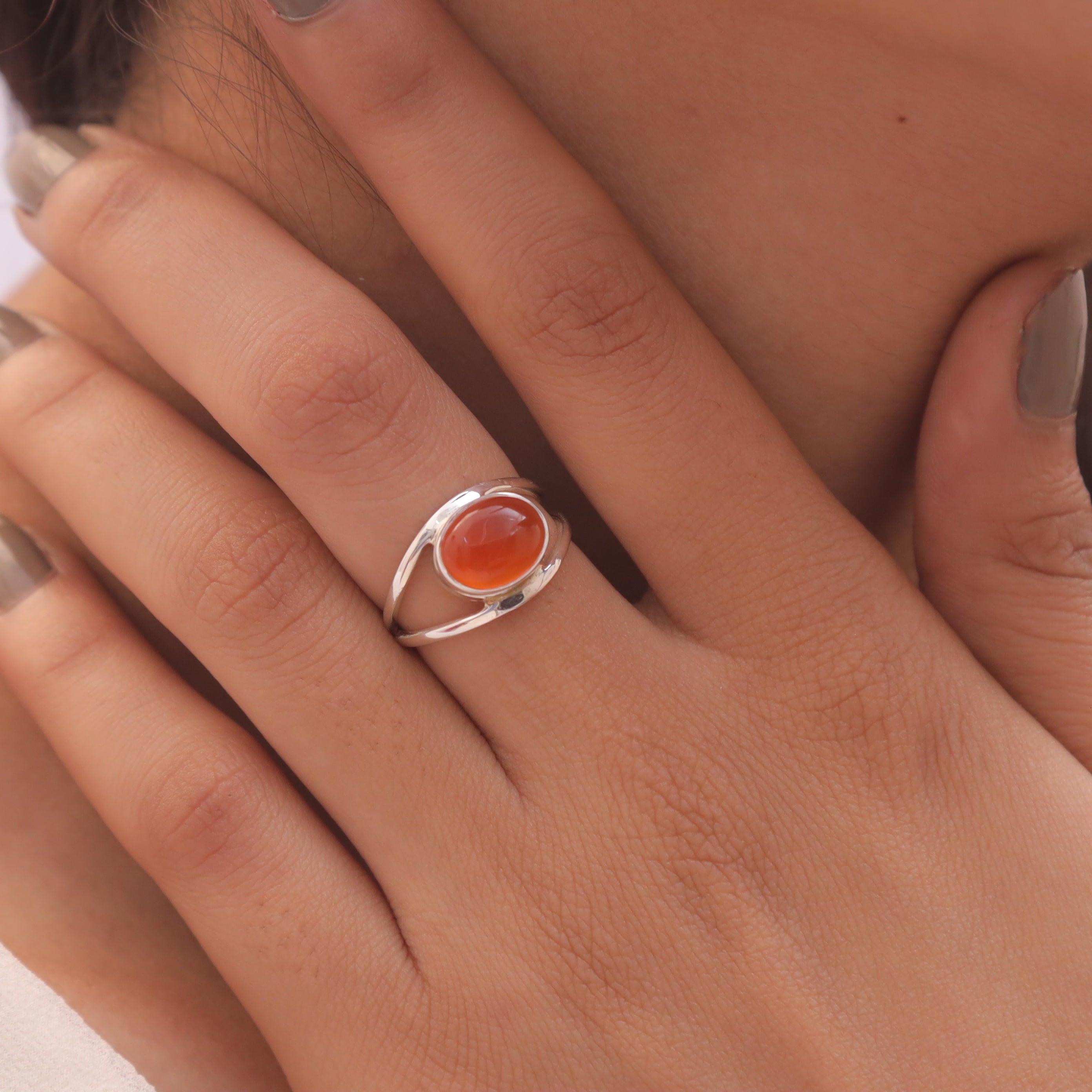 Elevate your style with the Carnelian , a masterpiece that blends natural beauty with refined craftsmanship. The ring features a radiant Carnelian centrepiece, carefully cut to enhance its inherent allure and brilliance. Set in a band crafted from 925 sterling silver, it offers durability and a lasting shine that complements the gemstone’s mesmerizing glow.