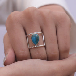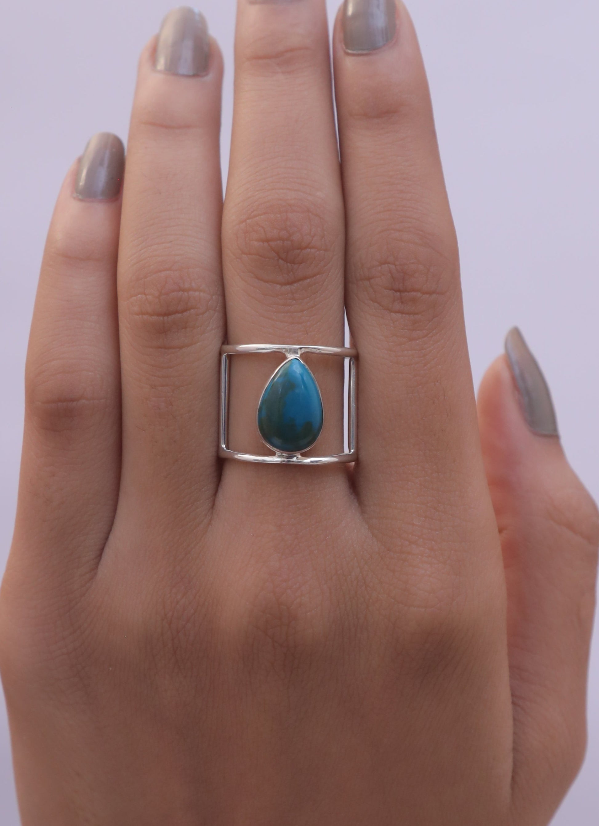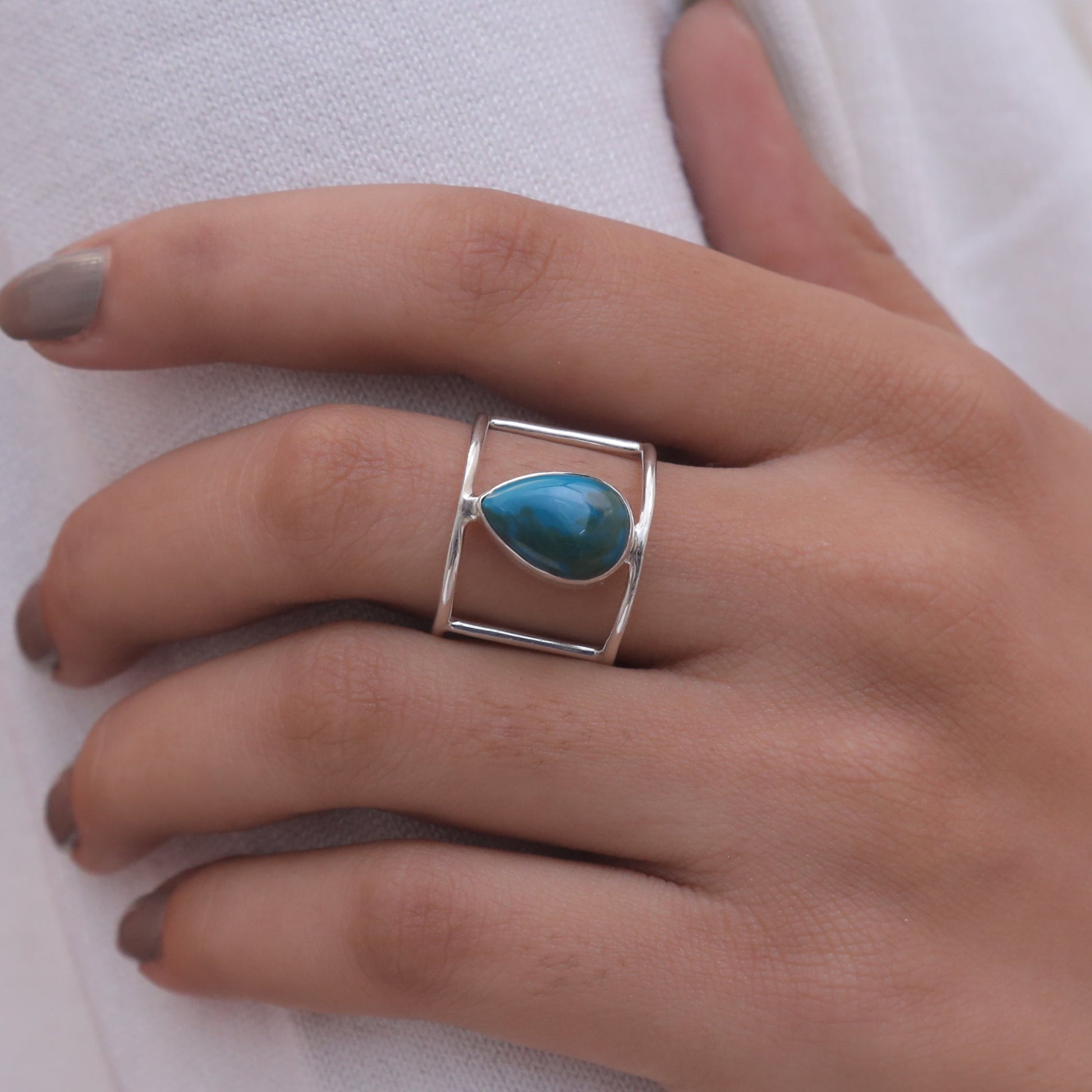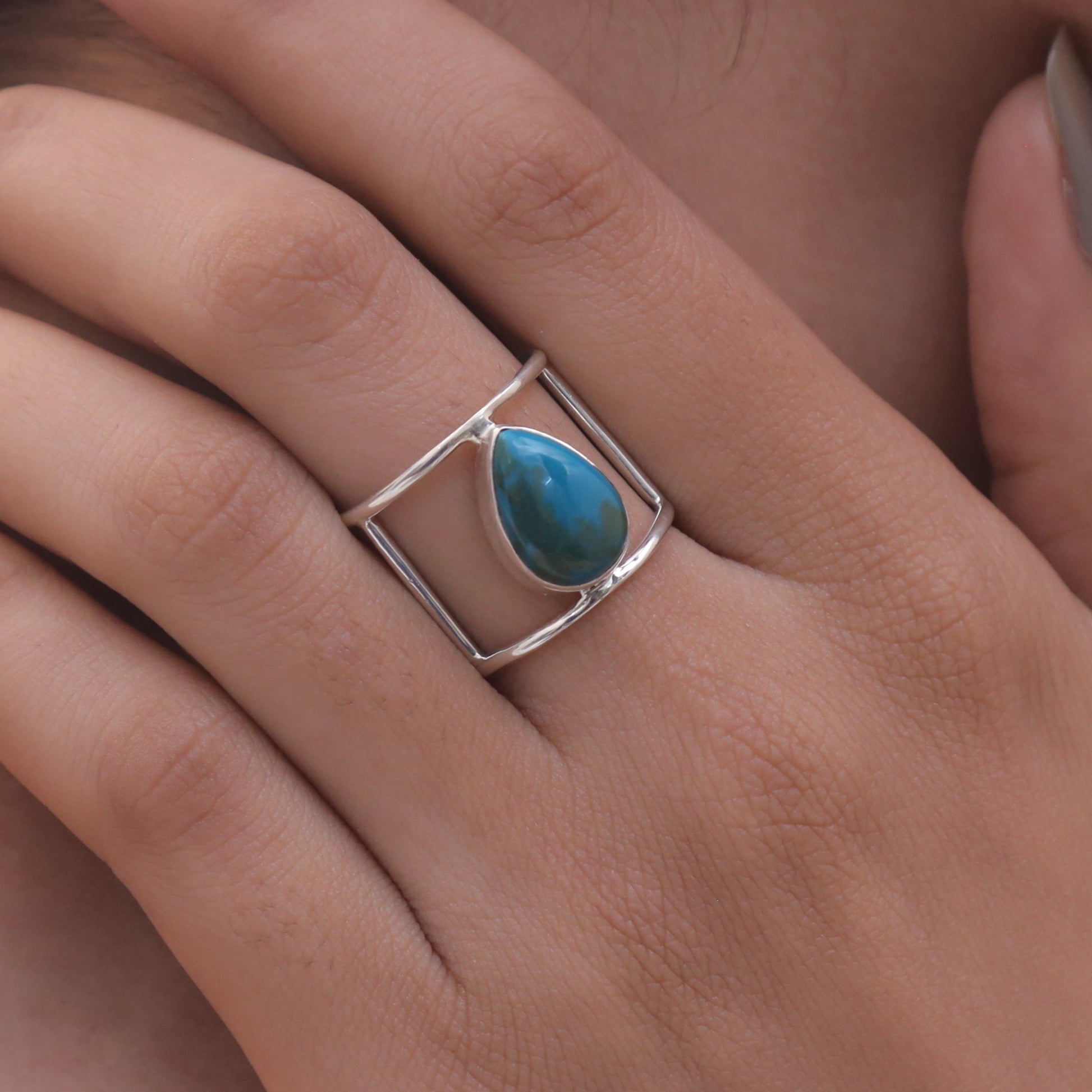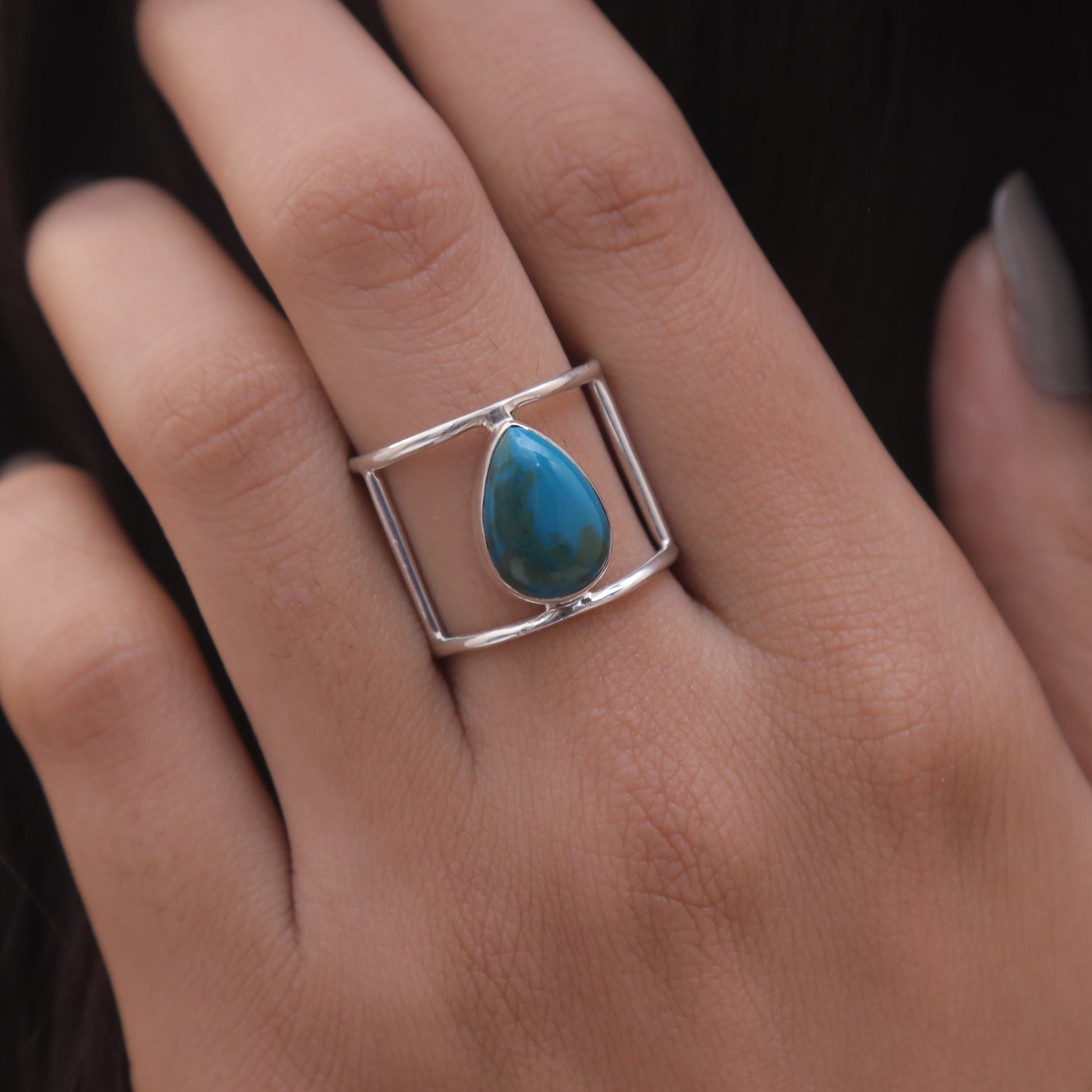 Elevate your style with the Chrysocolla Ring, a masterpiece that blends natural beauty with refined craftsmanship. The ring features a radiant Chrysocolla centerpiece, carefully cut to enhance its inherent allure and brilliance. Set in a band crafted from 925 sterling silver, it offers durability and a lasting shine that complements the gemstone's vibrant hue.