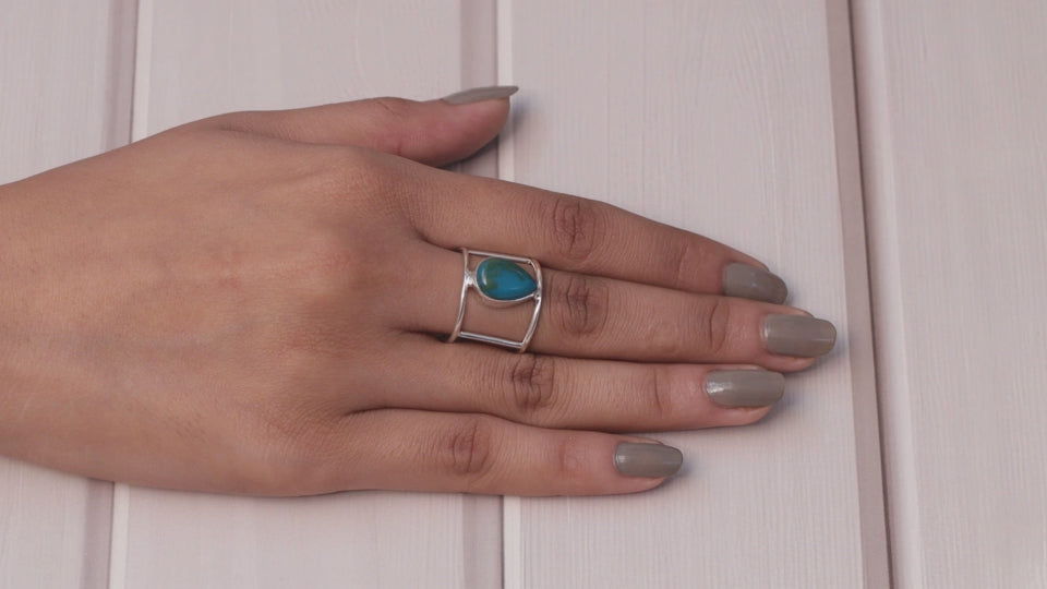 Each detail of the ring showcases expert craftsmanship, from the precisely set prongs securing the Chrysocolla to the polished silver band ensuring a comfortable fit. The design allows the Chrysocolla to shine as the focal point, making it a versatile accessory suitable for everyday wear or special occasions.