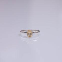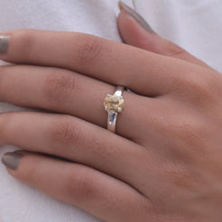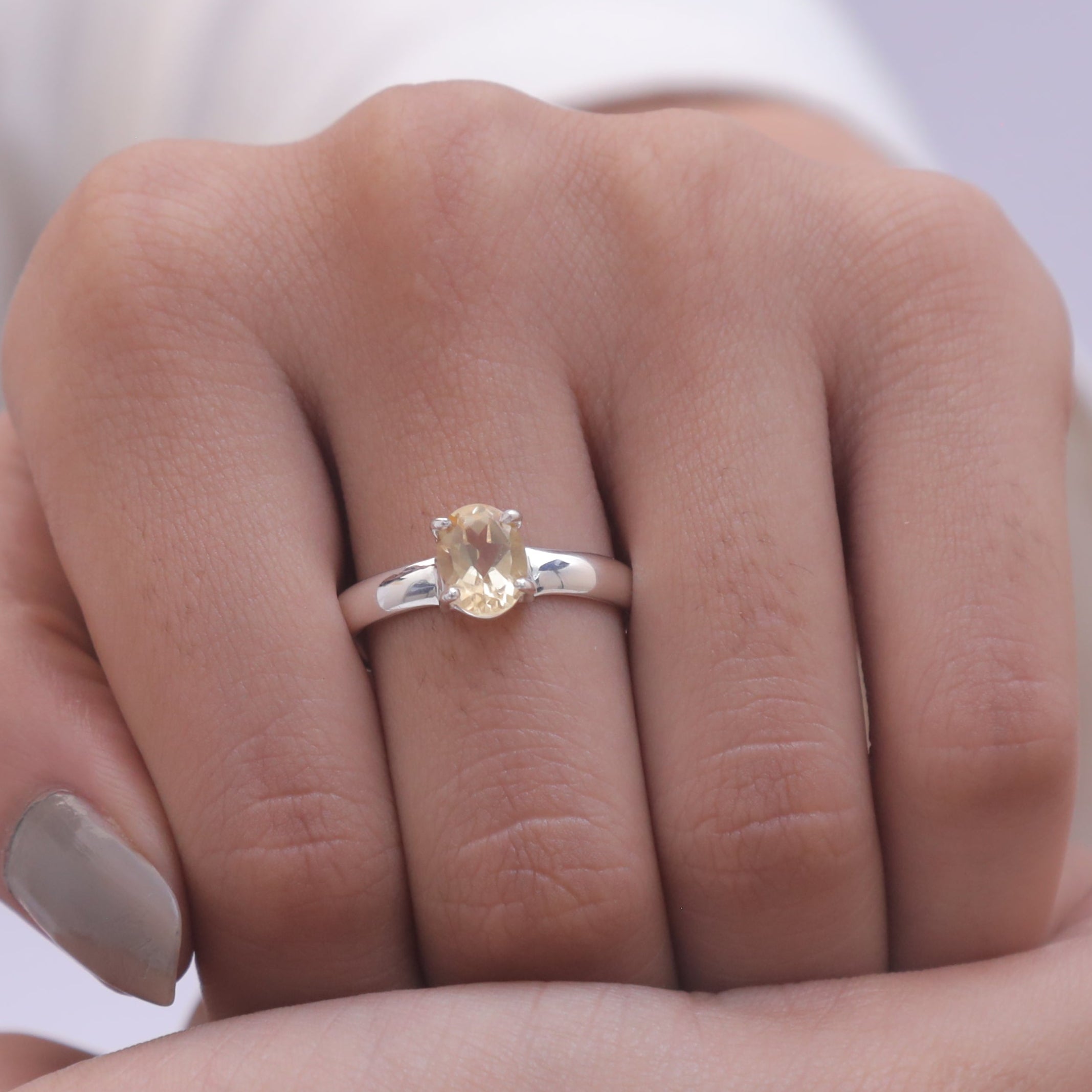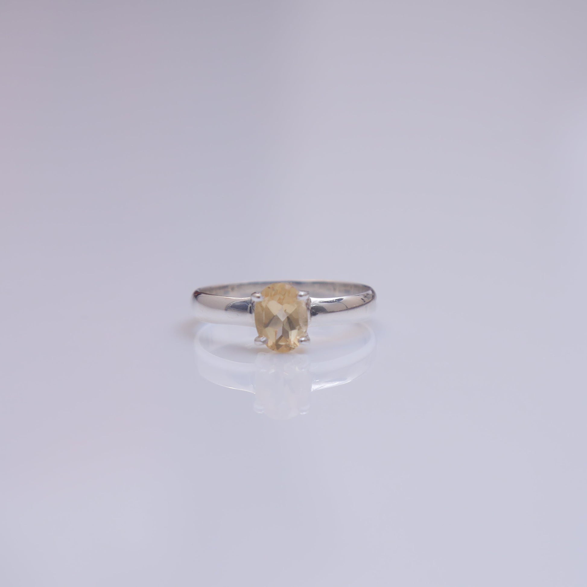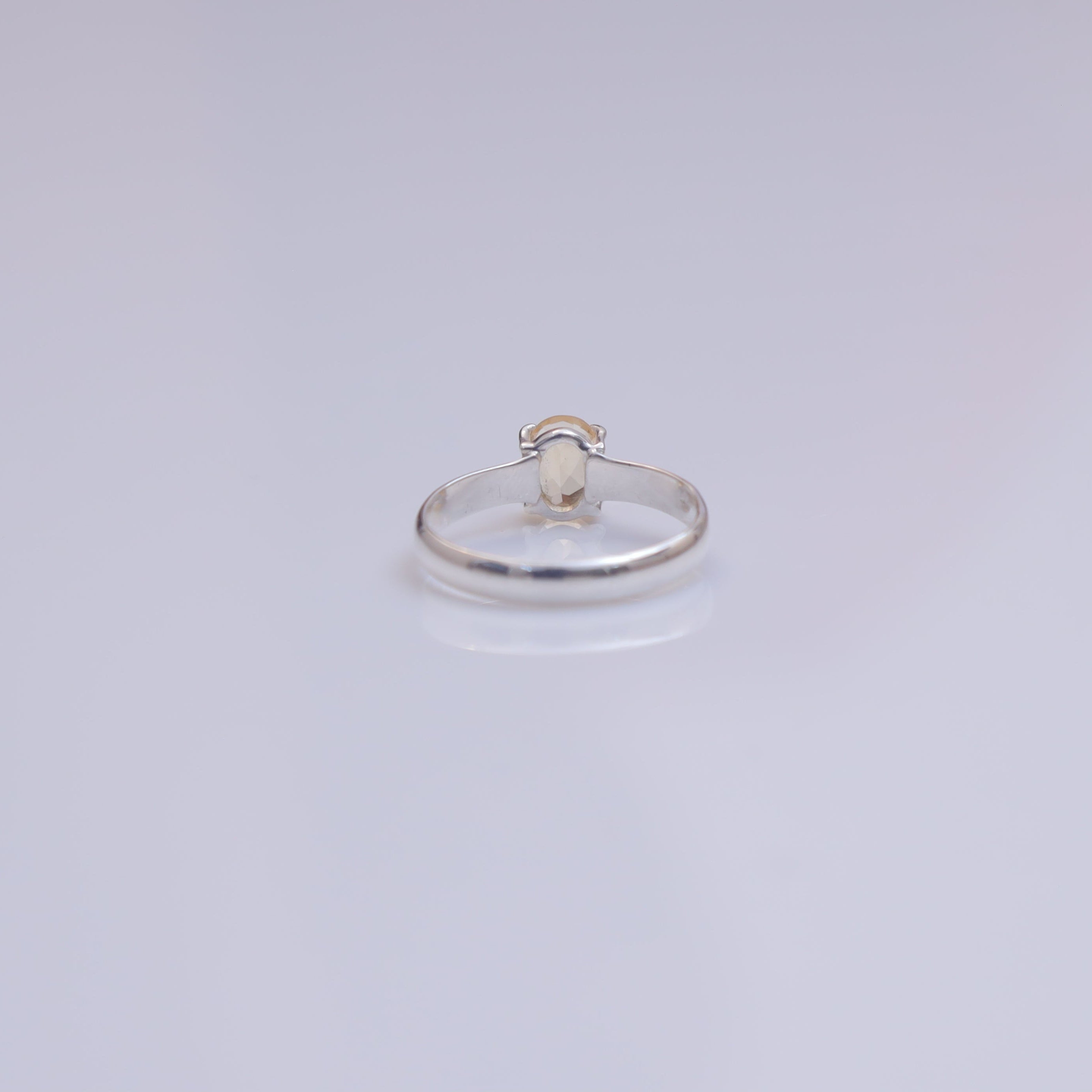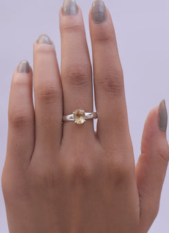 Each detail of the ring showcases expert craftsmanship, from the precisely set prongs securing the Citrine to the polished silver band ensuring a comfortable fit. The design allows the Citrine to shine as the focal point, making it a versatile accessory suitable for everyday wear or special occasions.