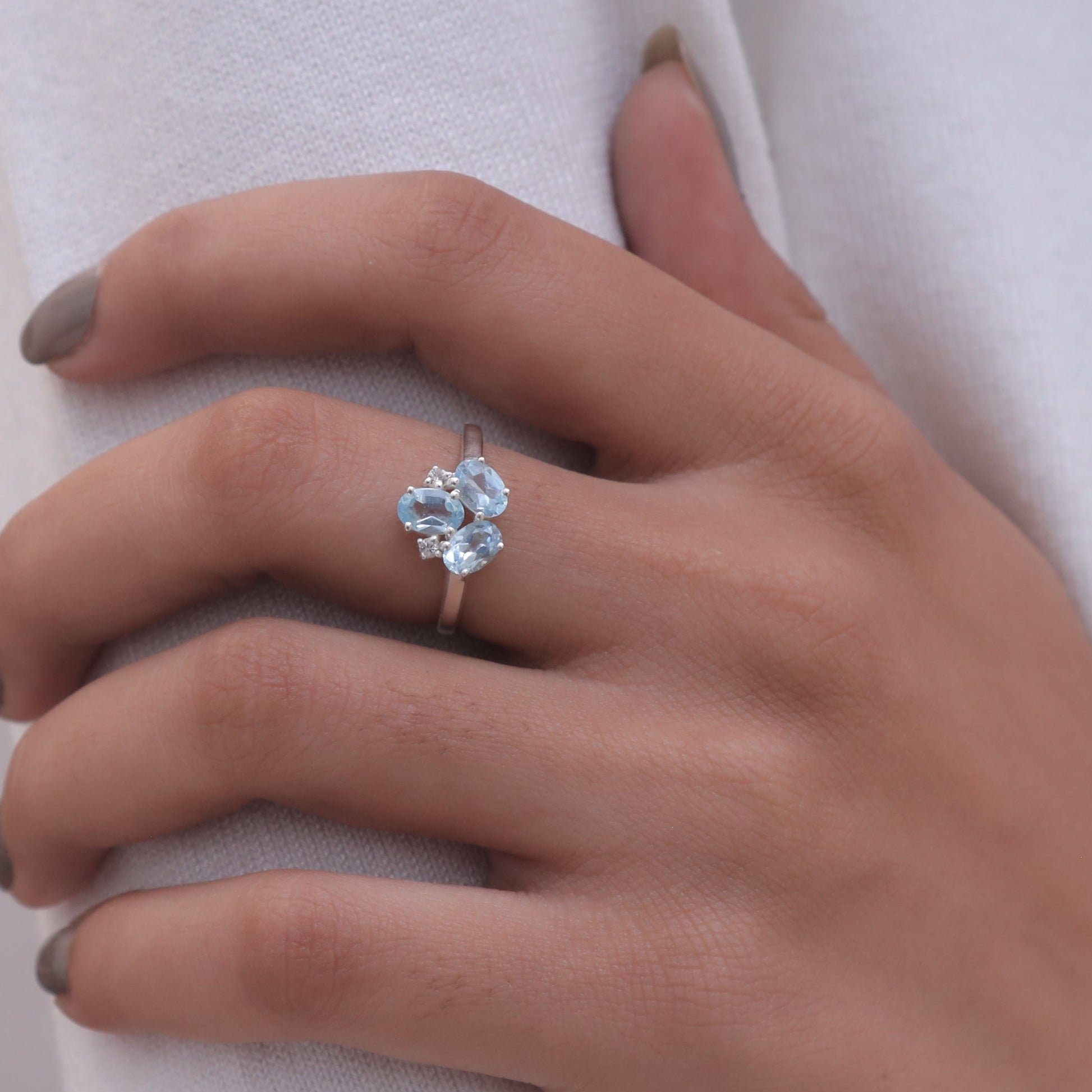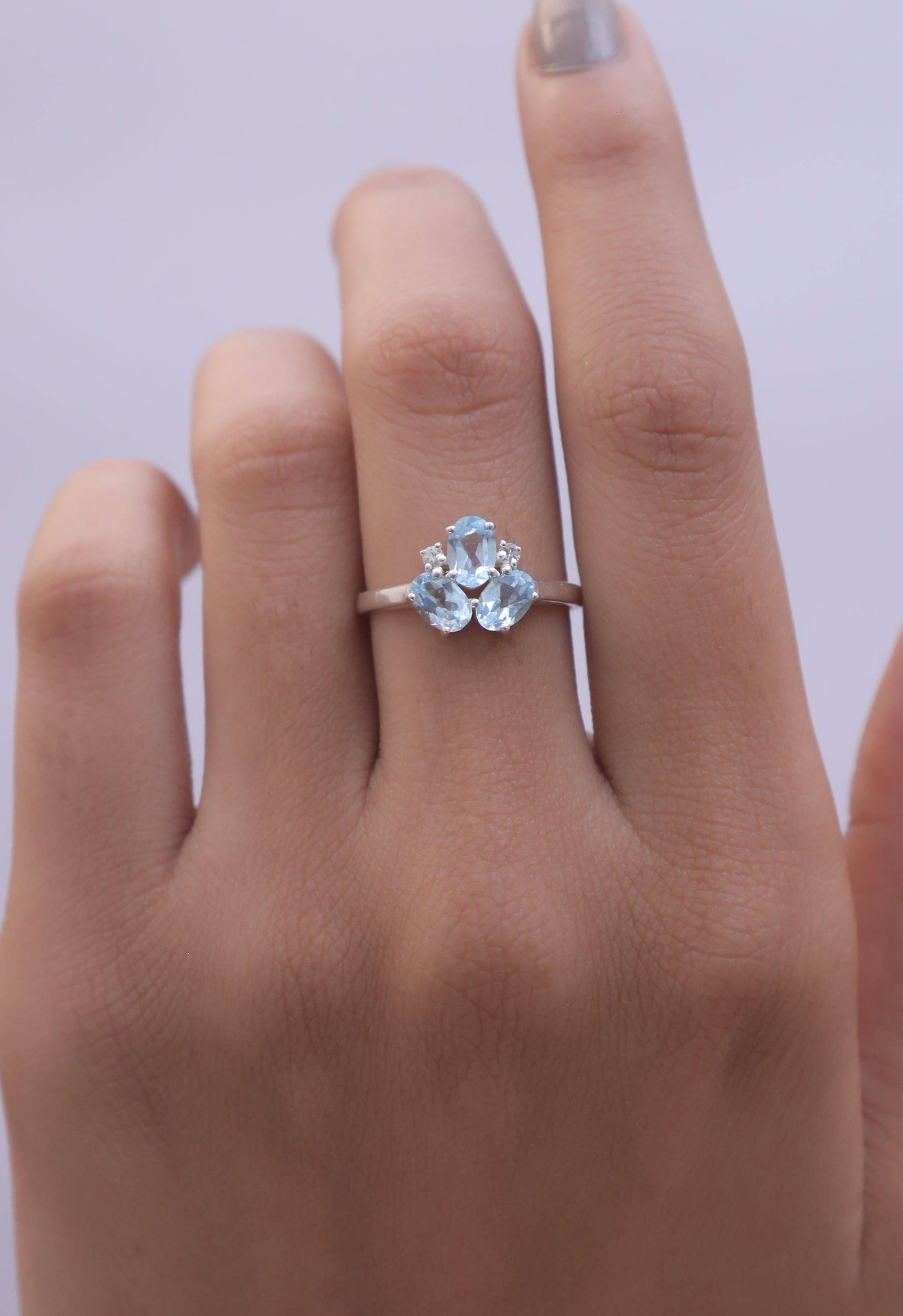 Each detail of the ring showcases expert craftsmanship, from the precisely set prongs securing the Blue Topaz to the polished silver band ensuring a comfortable fit. The design allows the Blue Topaz to shine as the focal point, making it a versatile accessory suitable for everyday wear or special occasions.