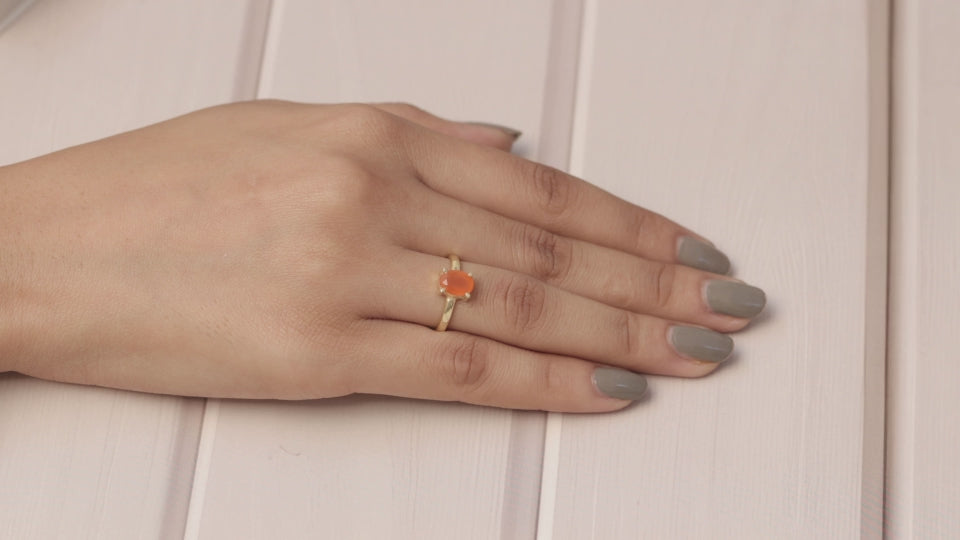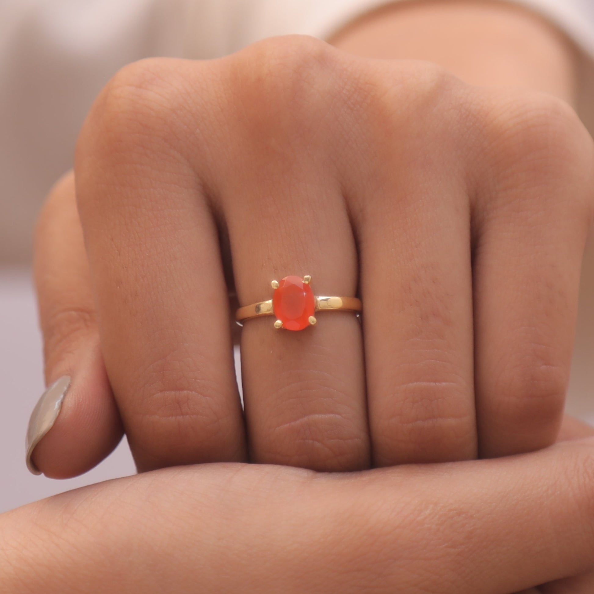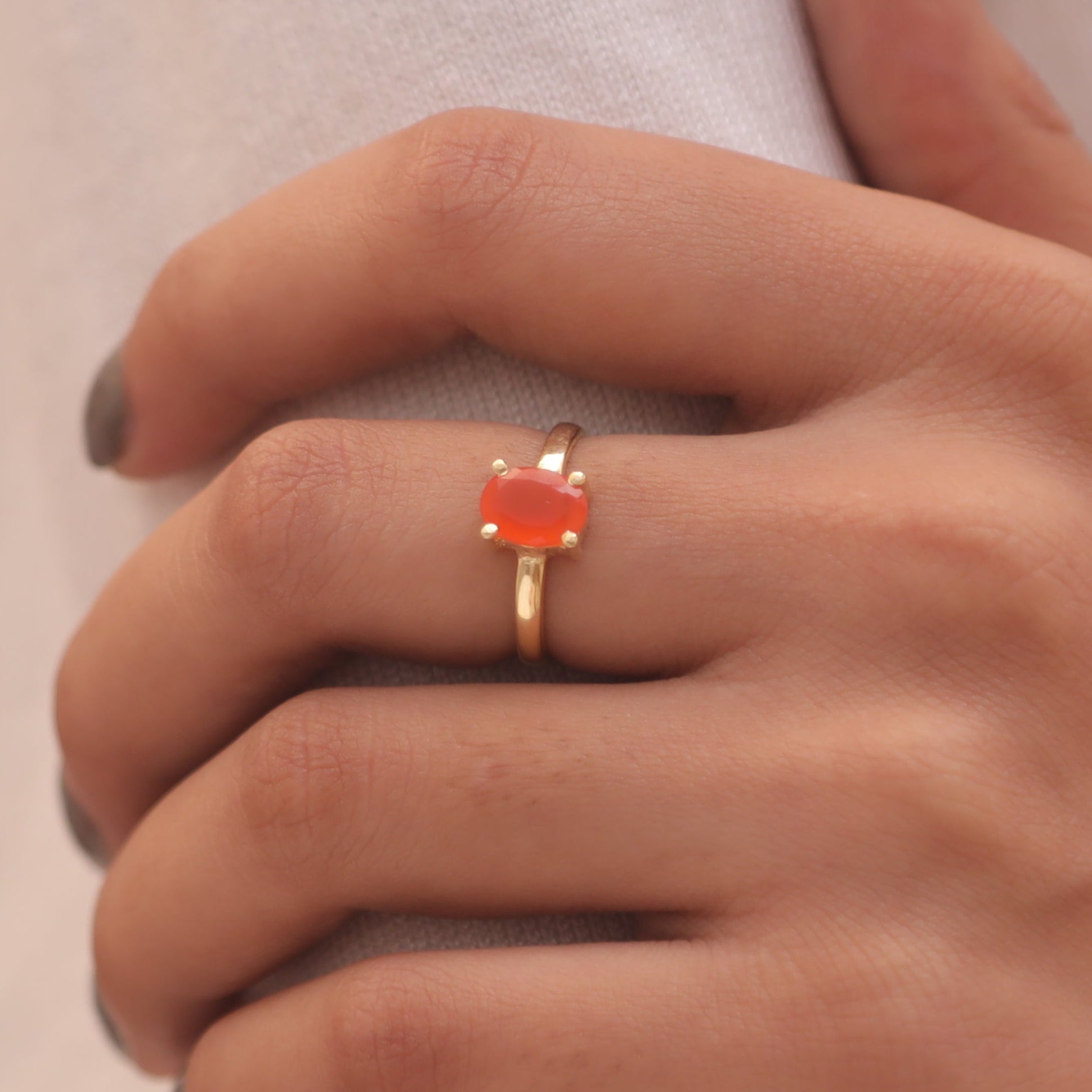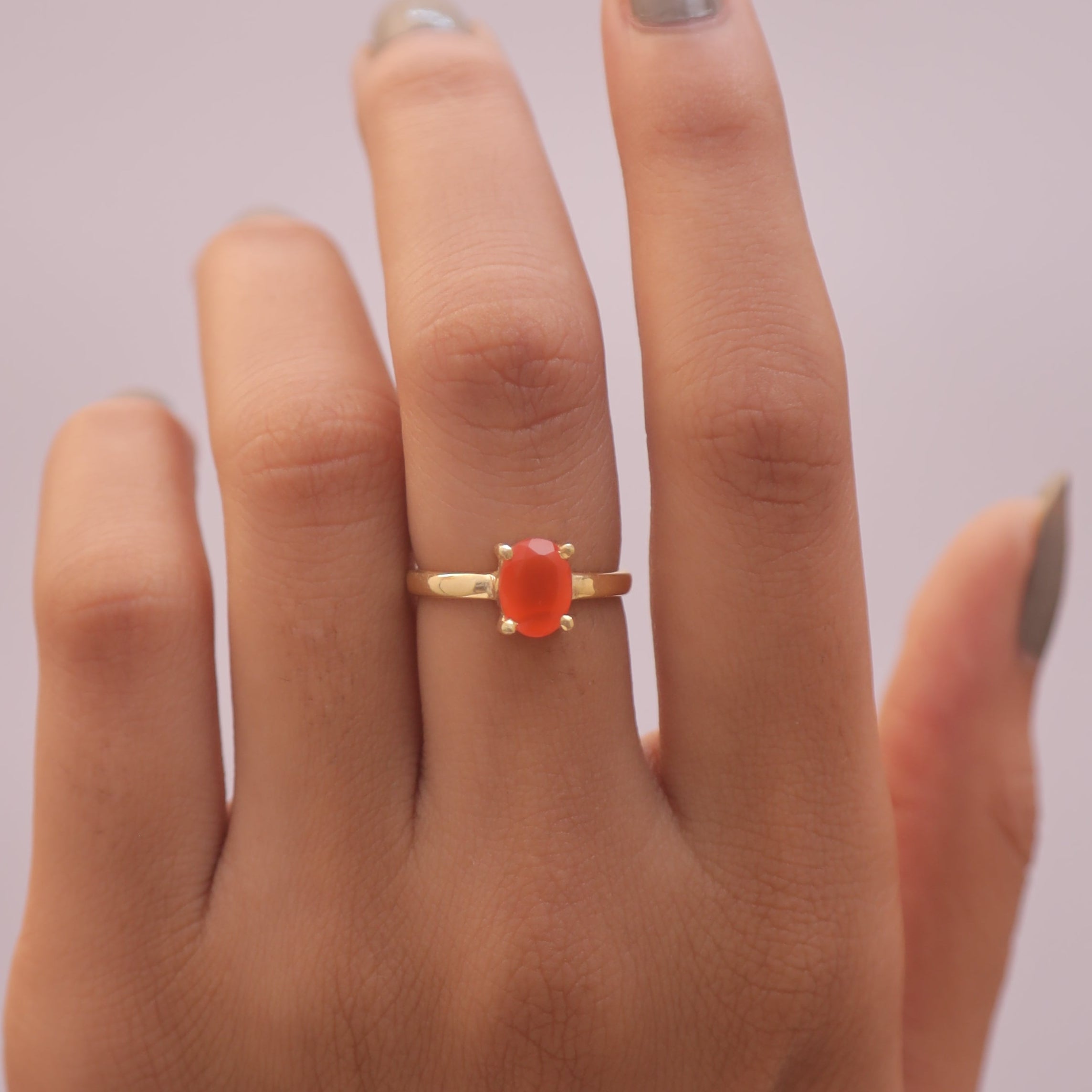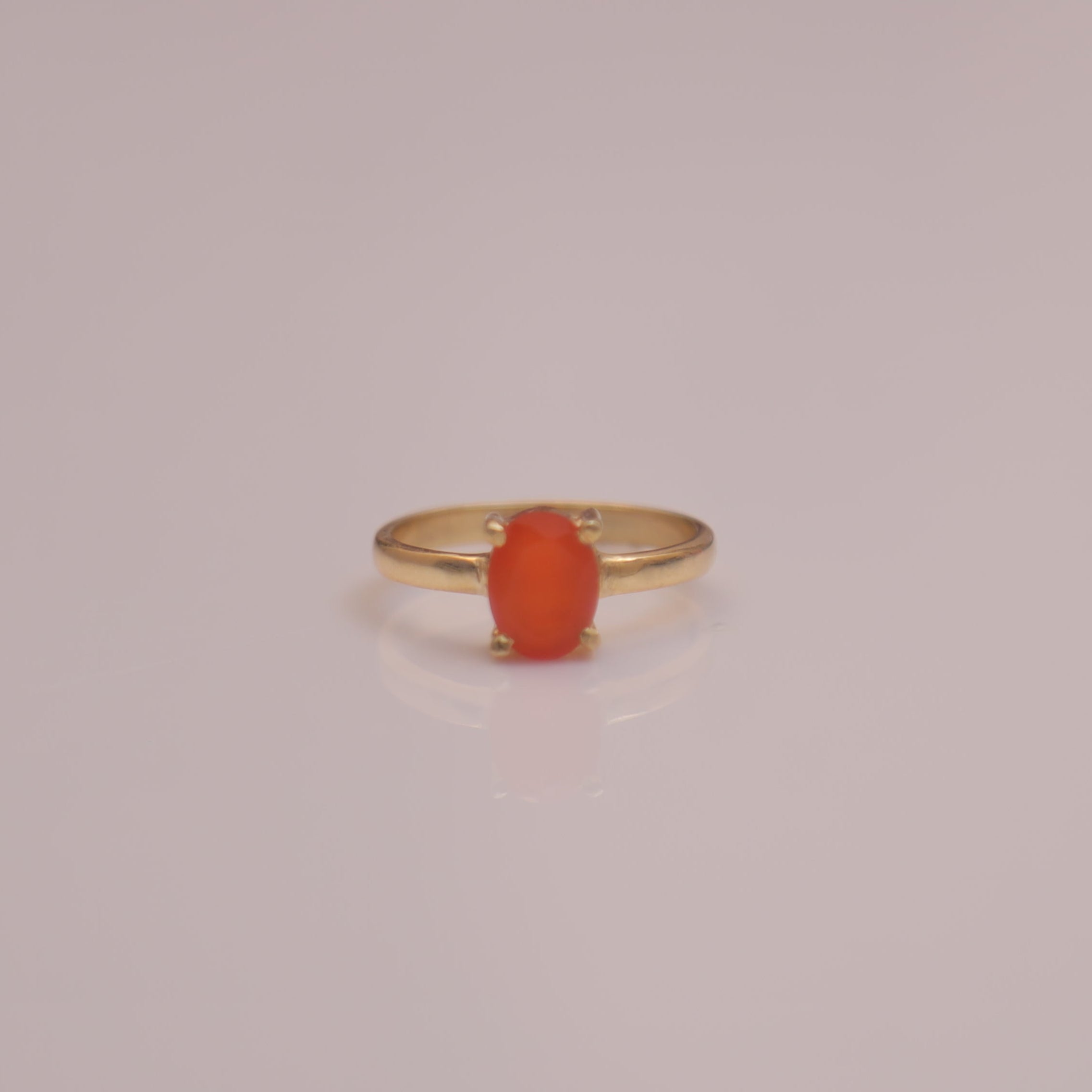 Each detail of the ring showcases expert craftsmanship, from the precisely set prongs securing the Carnelian to the polished silver band ensuring a comfortable fit. The design allows the Carnelian to shine as the focal point, making it a versatile accessory suitable for everyday wear or special occasions.