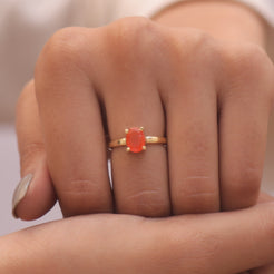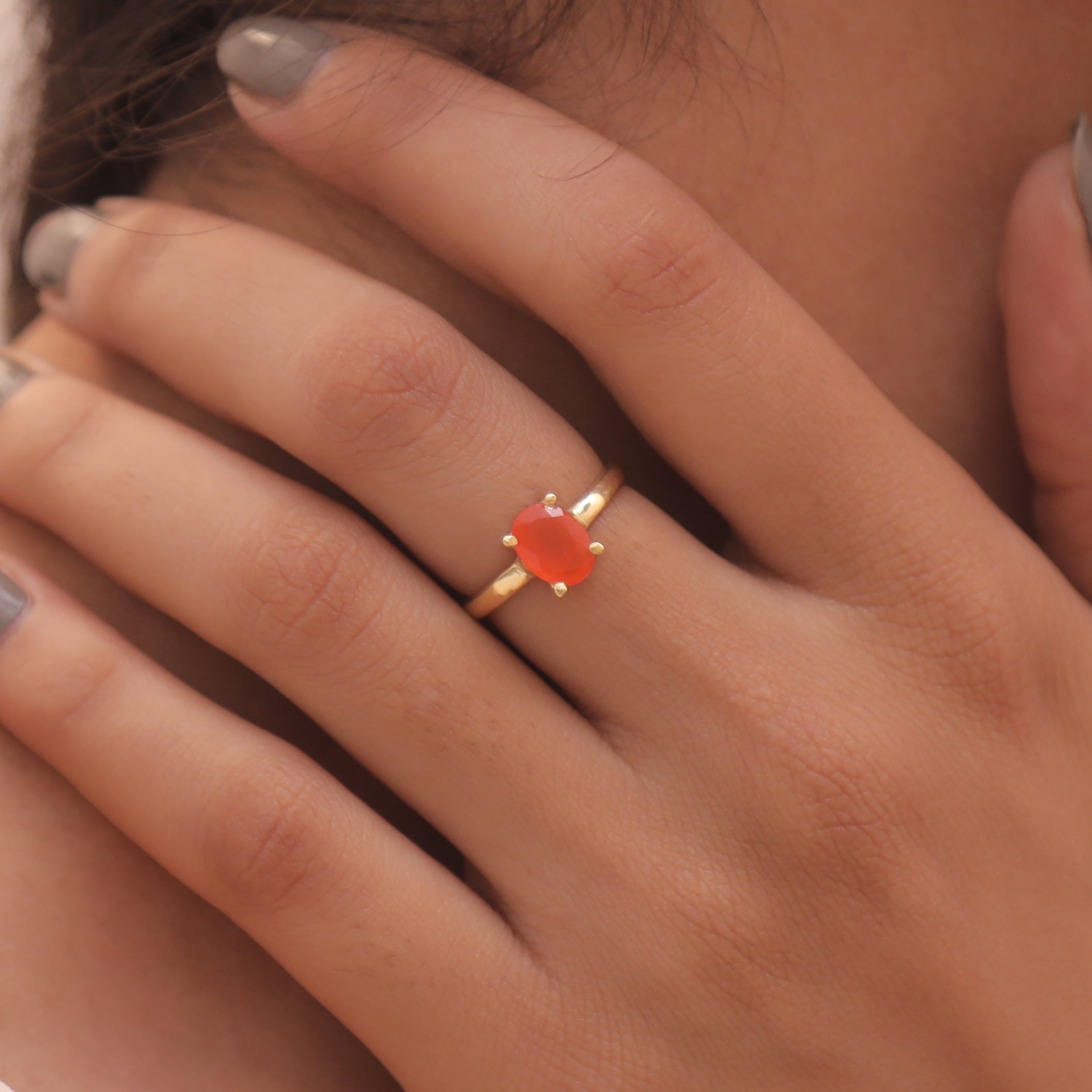 Cut Carnelian 18k Gold Plated Solid Silver Ring