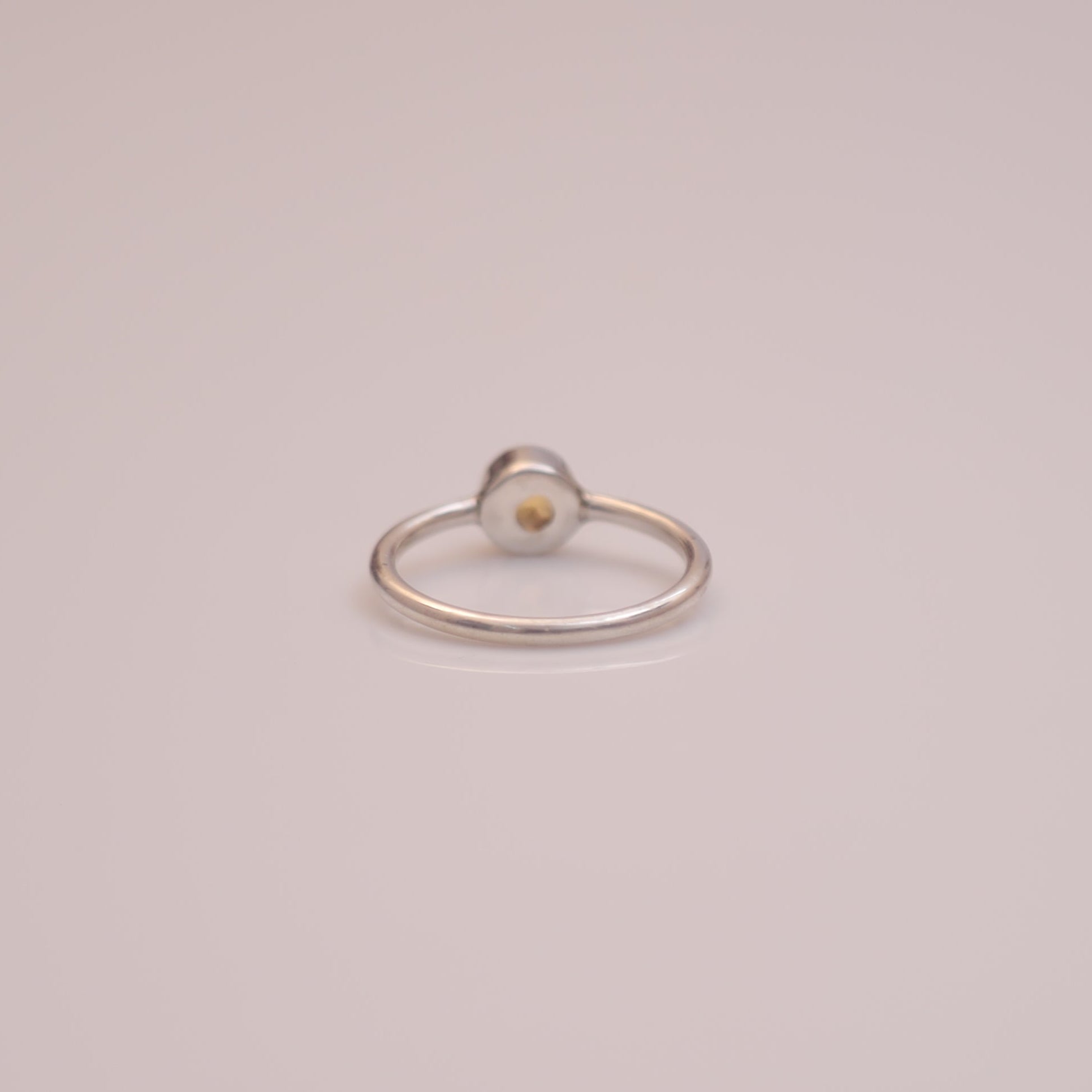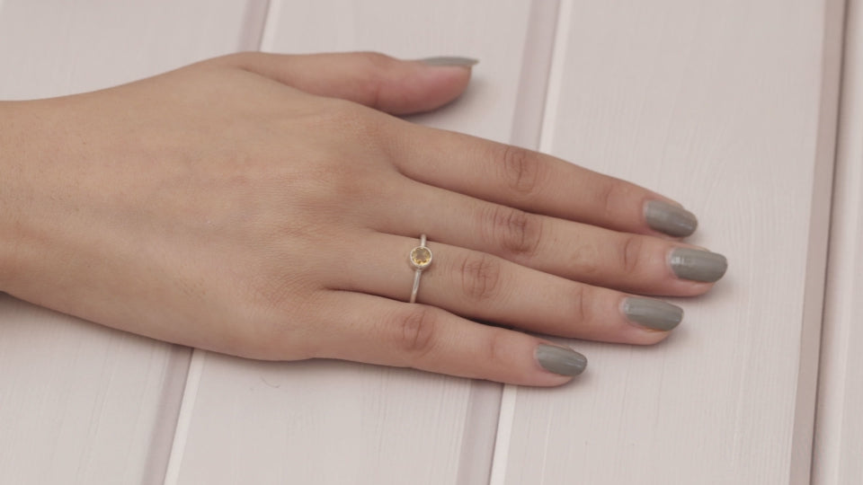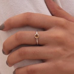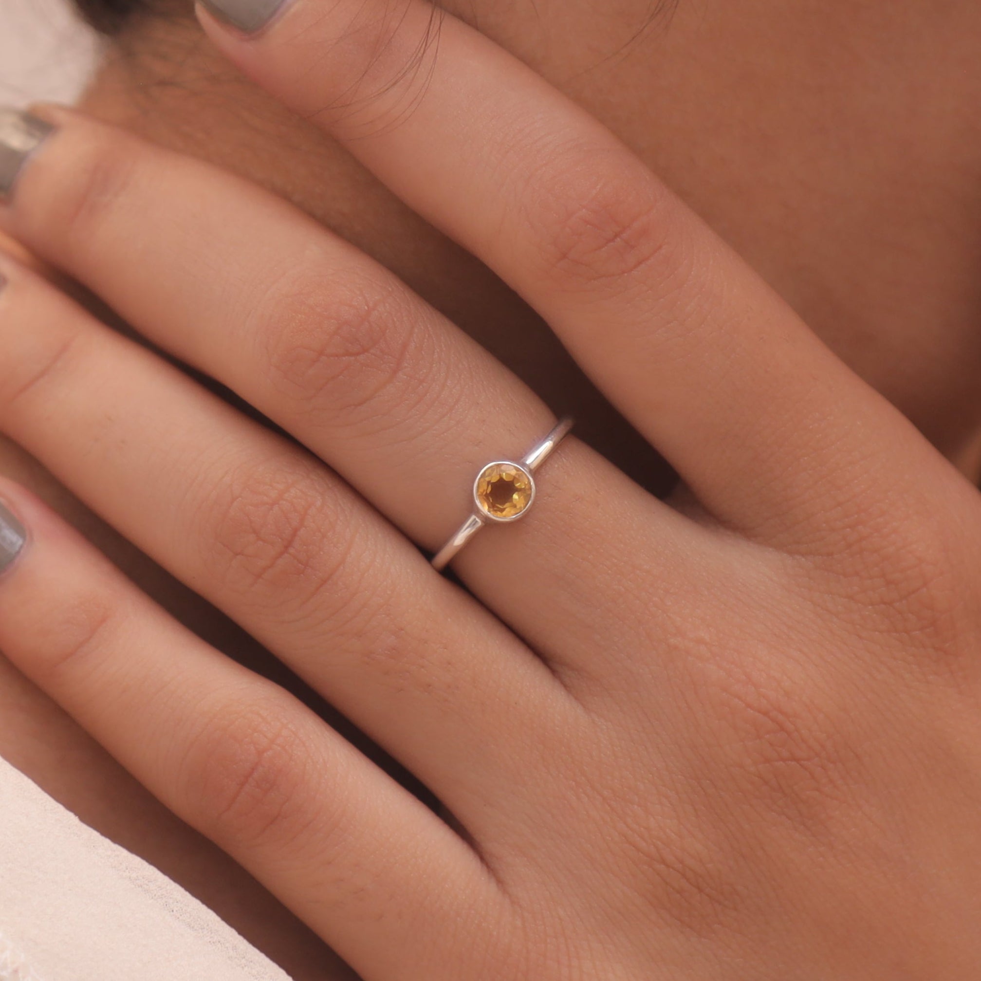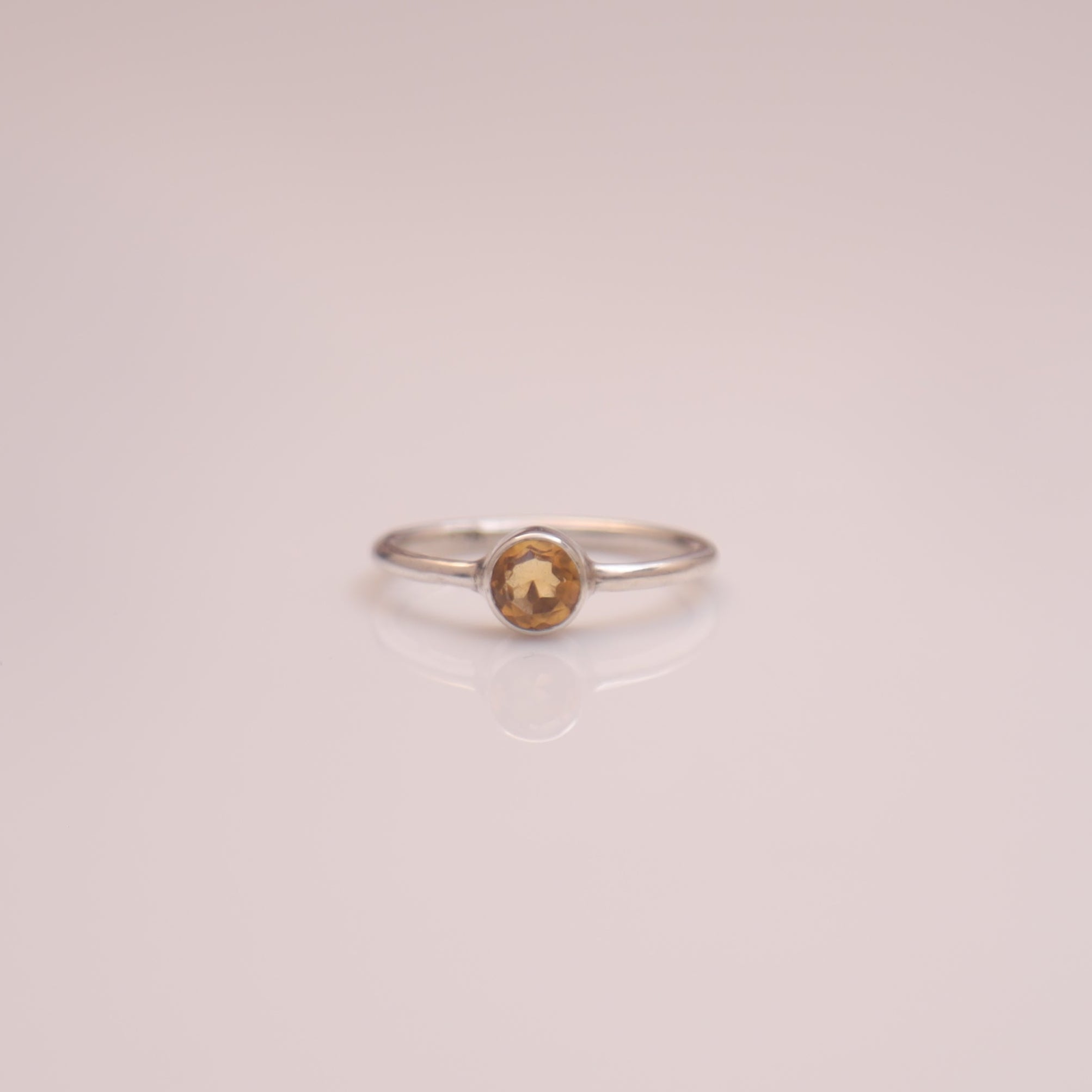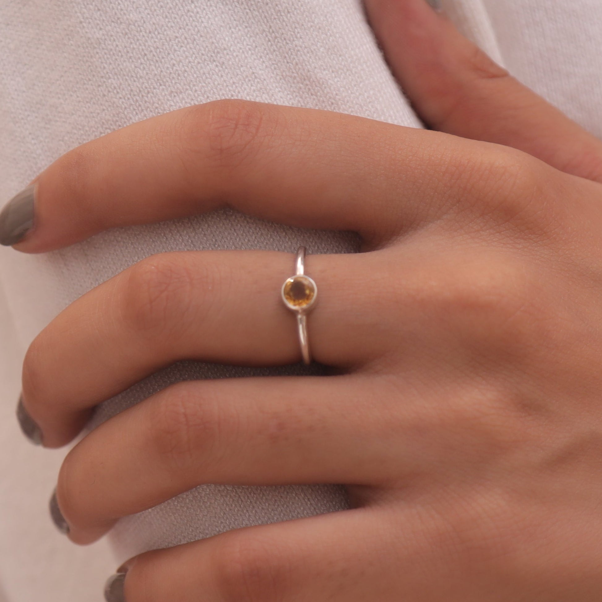 Each detail of the ring showcases expert craftsmanship, from the precisely set prongs securing the Citrine to the polished silver band ensuring a comfortable fit. The design allows the Citrine to shine as the focal point, making it a versatile accessory suitable for everyday wear or special occasions.
