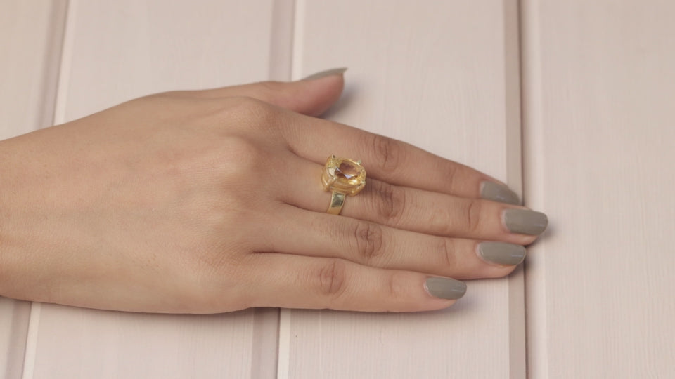 Cut Citrine 18k Gold Plated Sterling Silver Ring