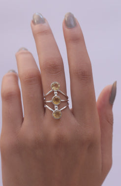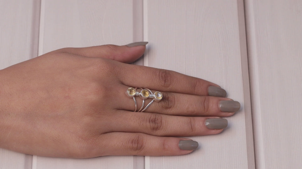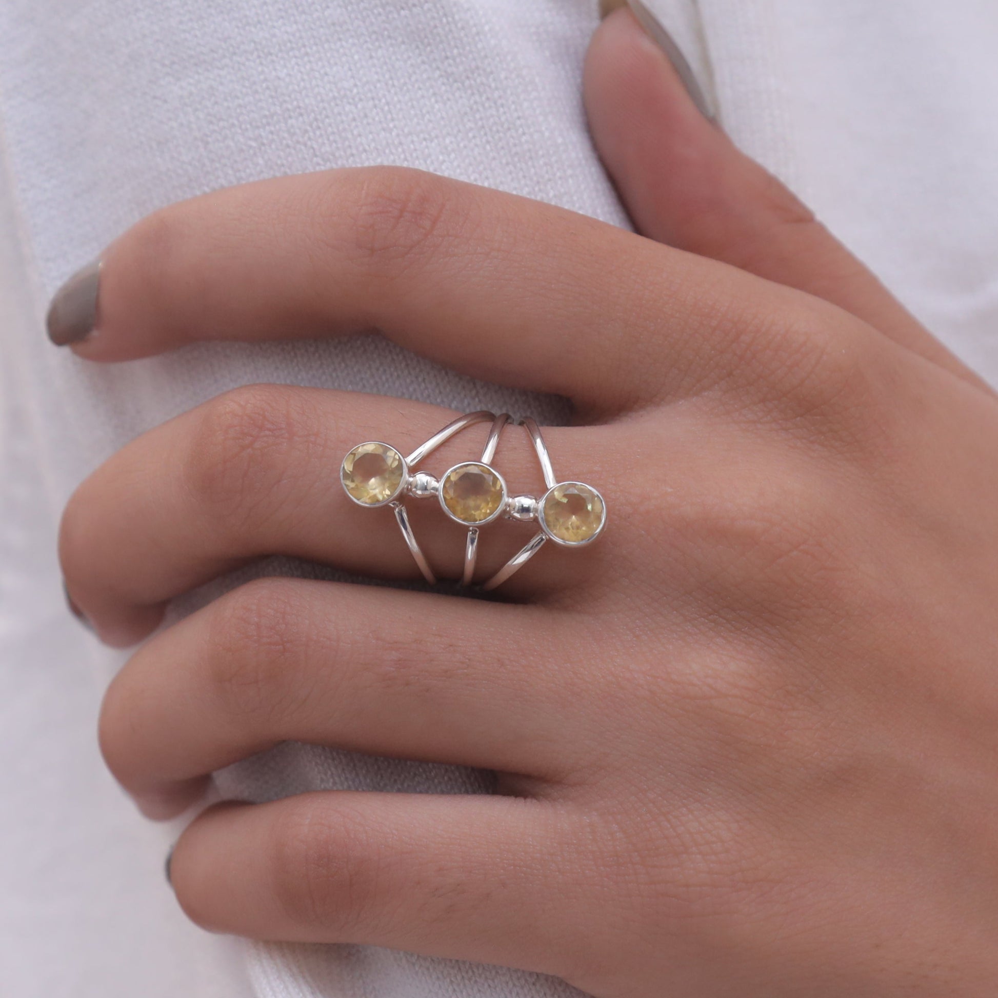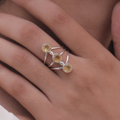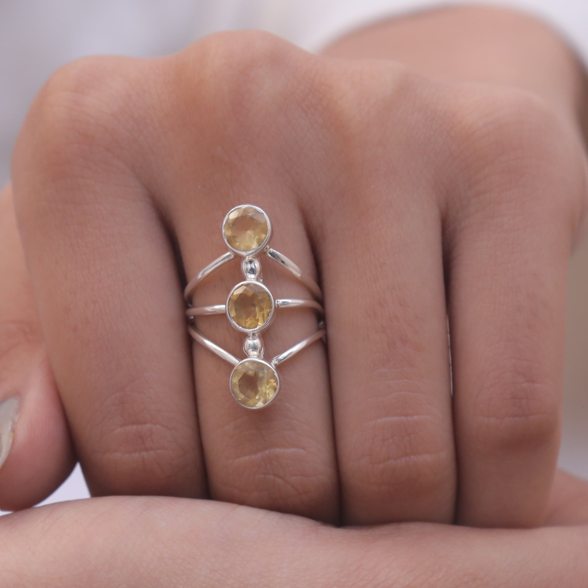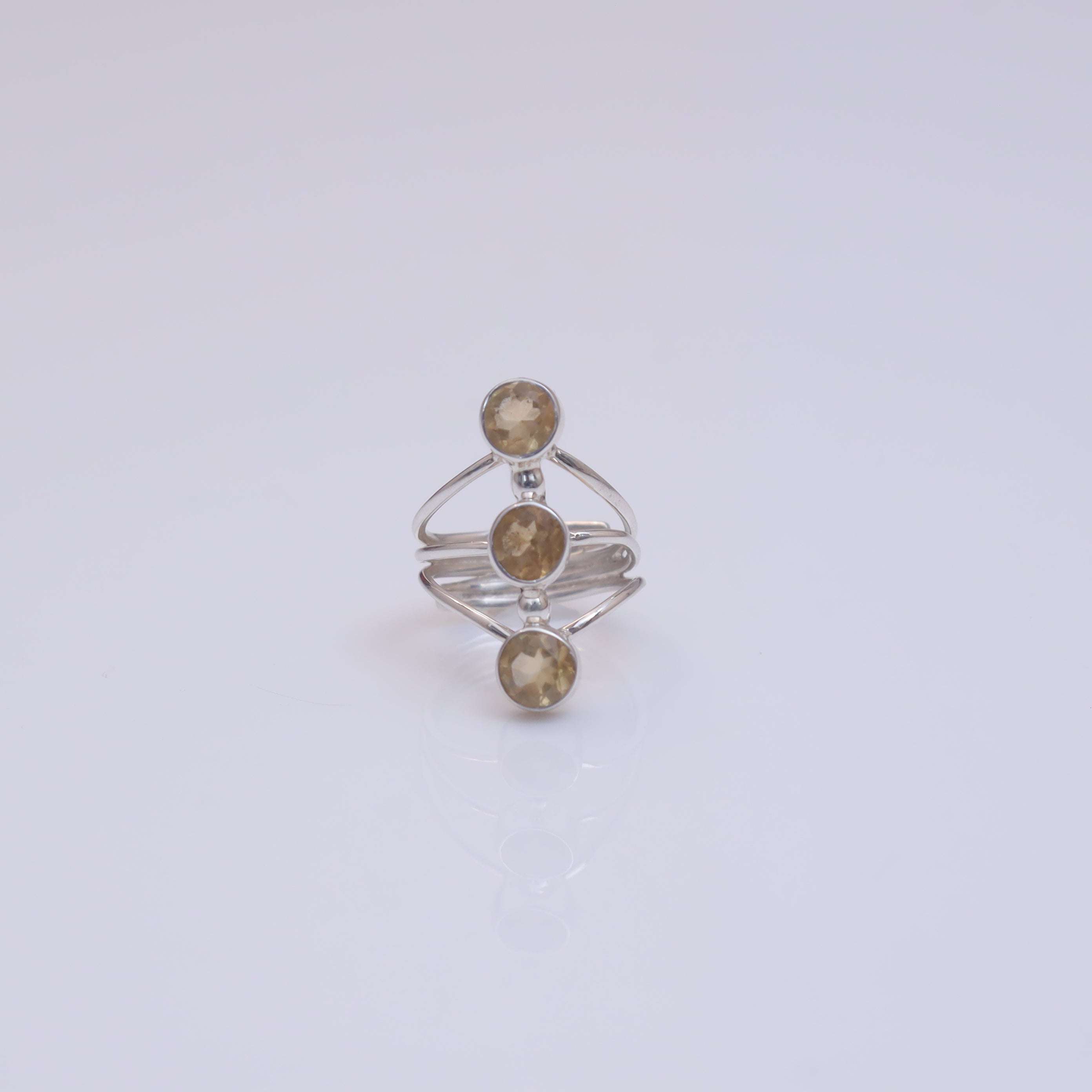 Each detail of the ring showcases expert craftsmanship, from the precisely set prongs securing the Citrine to the polished silver band ensuring a comfortable fit. The design allows the Citrine to shine as the focal point, making it a versatile accessory suitable for everyday wear or special occasions.