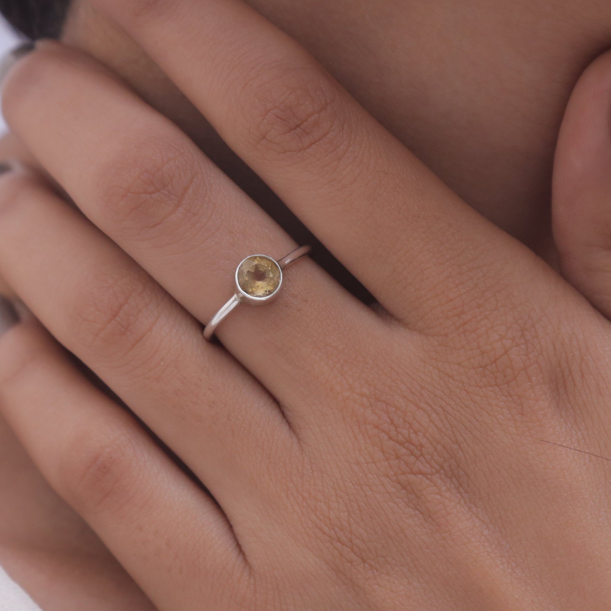Each detail of the ring showcases expert craftsmanship, from the precisely set prongs securing the Citrine to the polished silver band ensuring a comfortable fit. The design allows the Citrine to shine as the focal point, making it a versatile accessory suitable for everyday wear or special occasions.