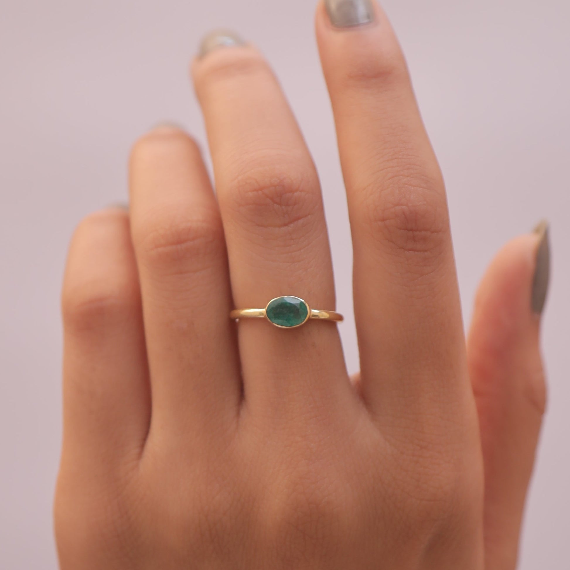 Cut Emerald 18k Gold Plated Sterling Silver Ring
