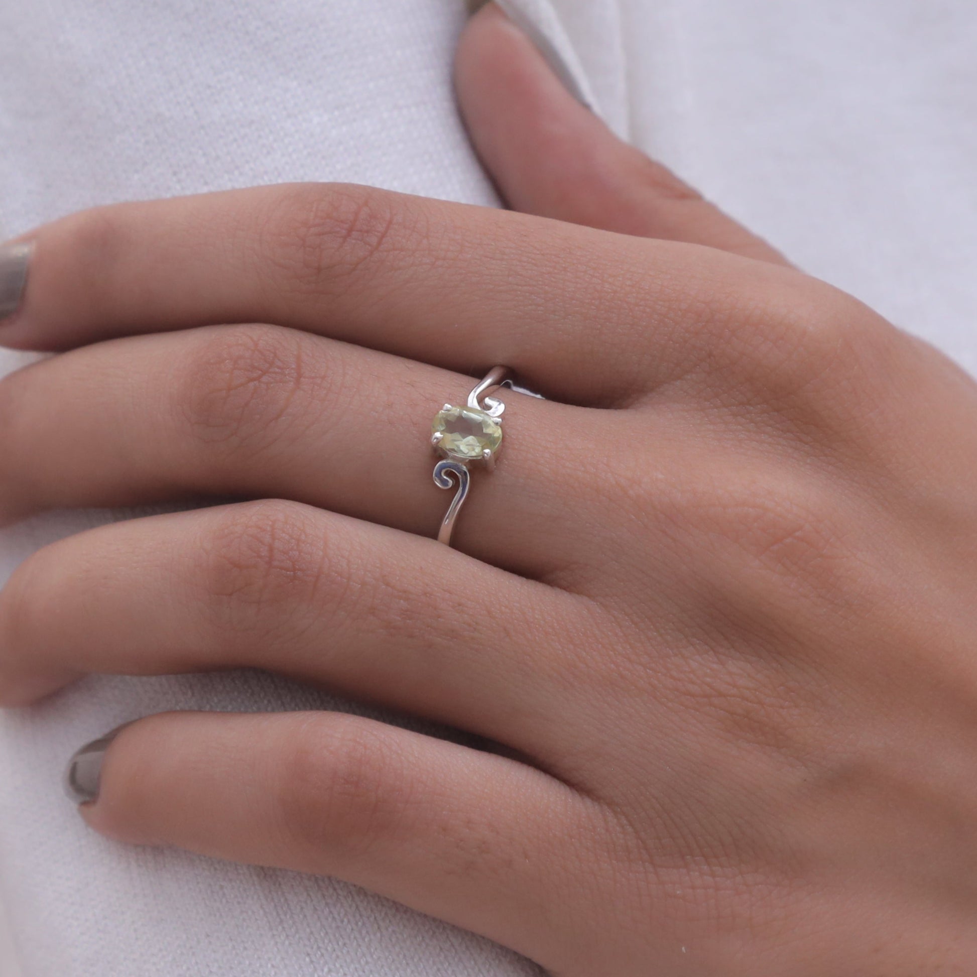 Each detail of the ring showcases expert craftsmanship, from the precisely set prongs securing the Lemon Topaz to the polished silver band ensuring a comfortable fit. The design allows the Lemon Topaz to shine as the focal point, making it a versatile accessory suitable for everyday wear or special occasions.