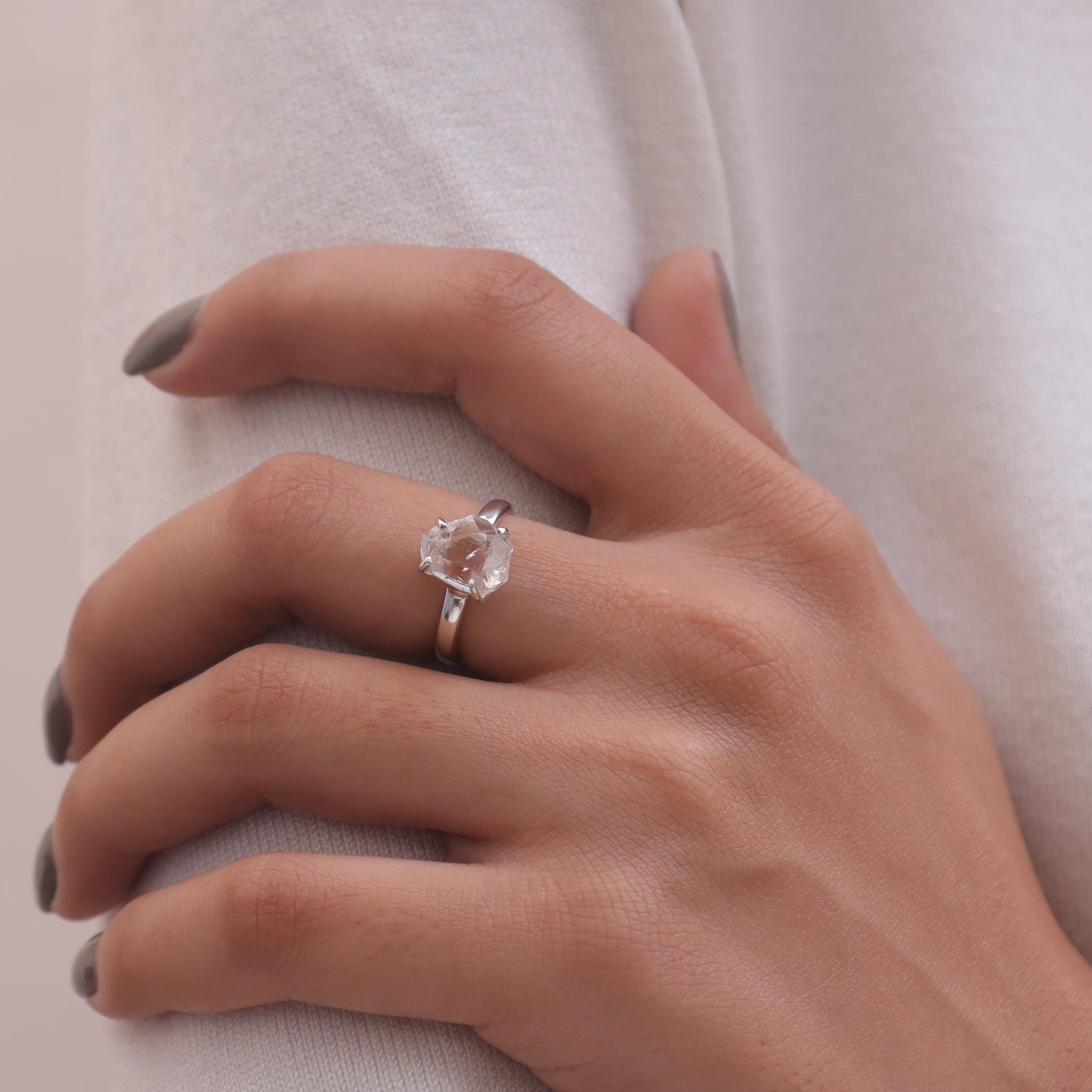 Elevate your style with the Herkimer , a masterpiece that blends natural beauty with refined craftsmanship. The ring features a radiant Herkimer centrepiece, carefully cut to enhance its inherent allure and brilliance. Set in a band crafted from 925 sterling silver, it offers durability and a lasting shine that complements the gemstone’s mesmerizing glow.