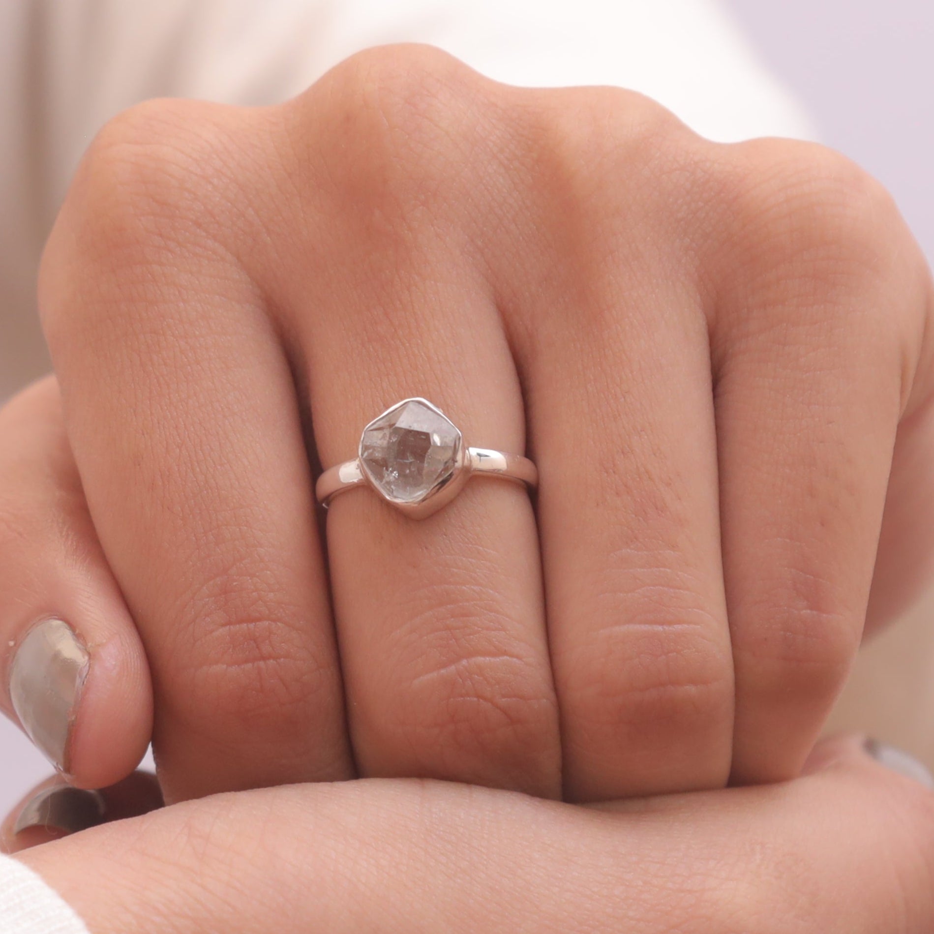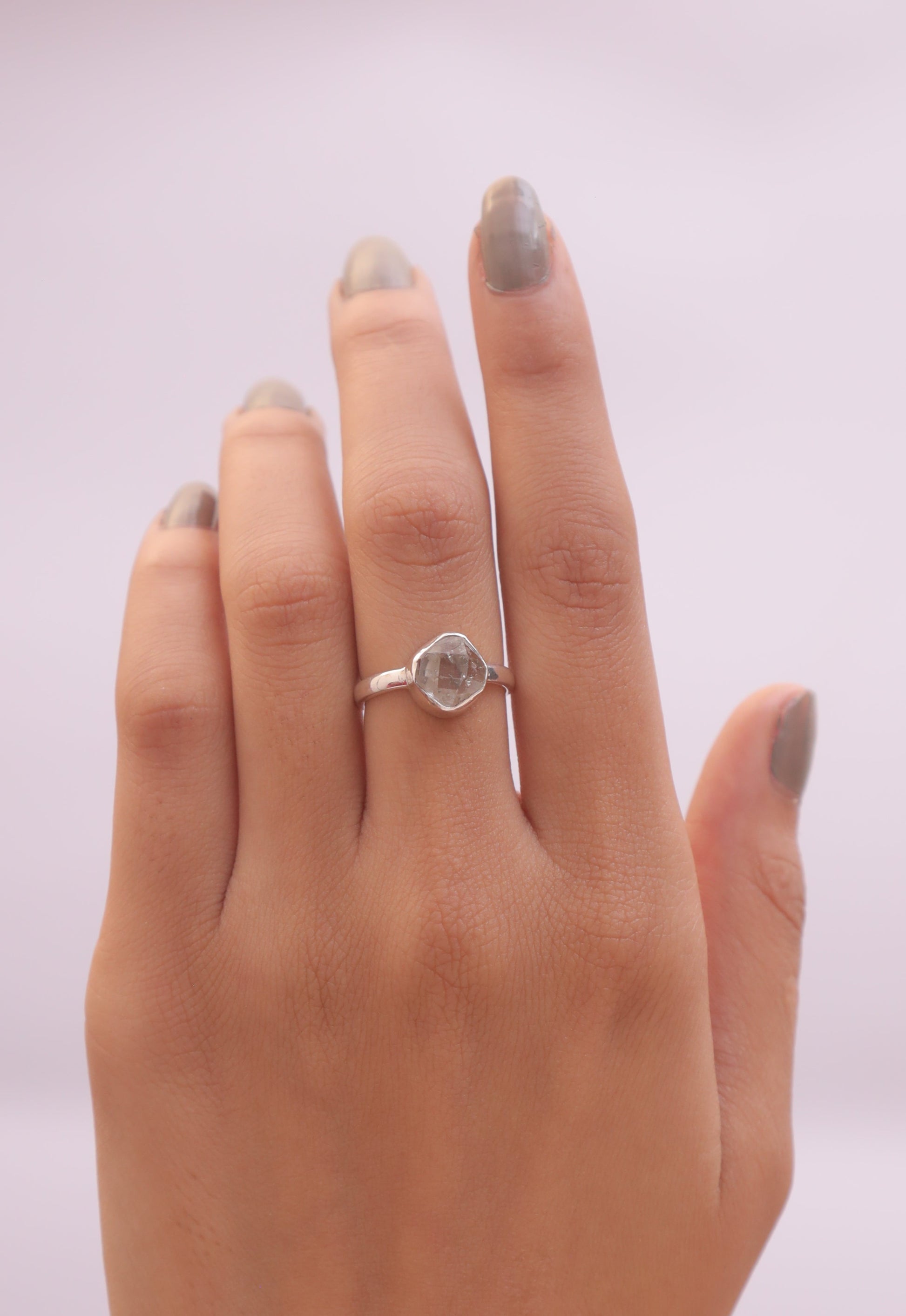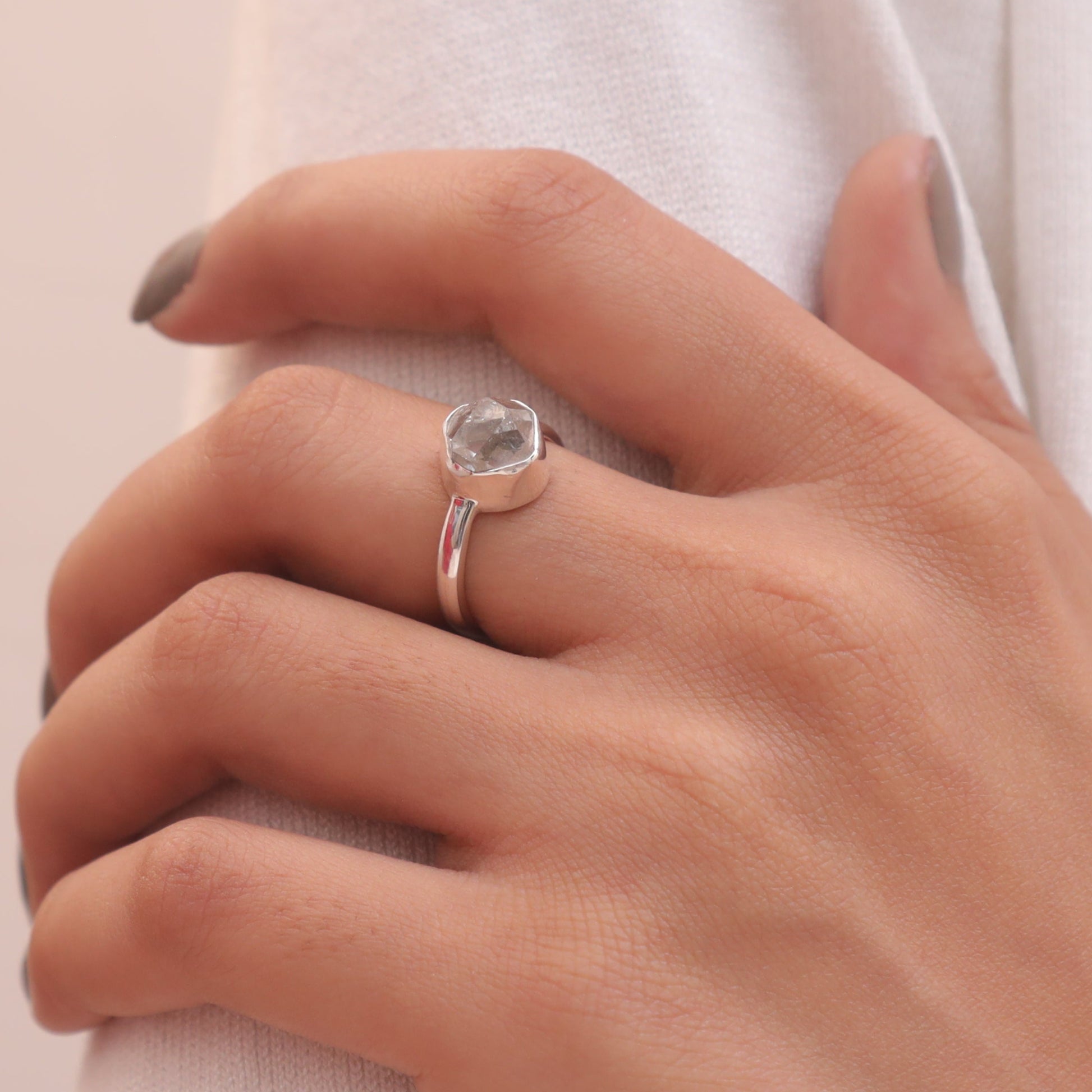 Elevate your style with the Herkimer , a masterpiece that blends natural beauty with refined craftsmanship. The ring features a radiant Herkimer centrepiece, carefully cut to enhance its inherent allure and brilliance. Set in a band crafted from 925 sterling silver, it offers durability and a lasting shine that complements the gemstone’s mesmerizing glow.
