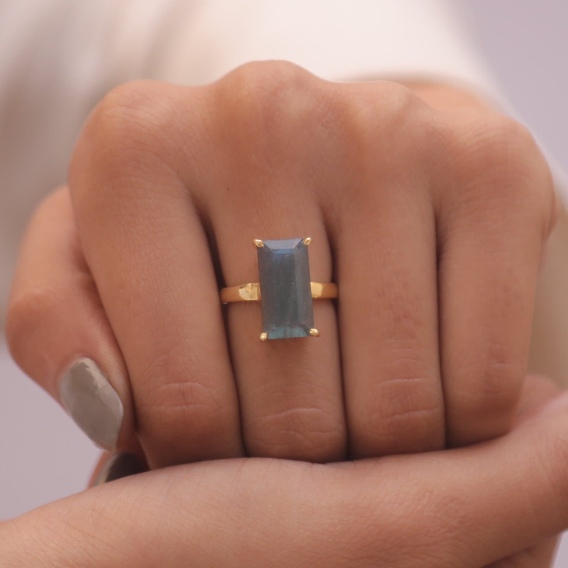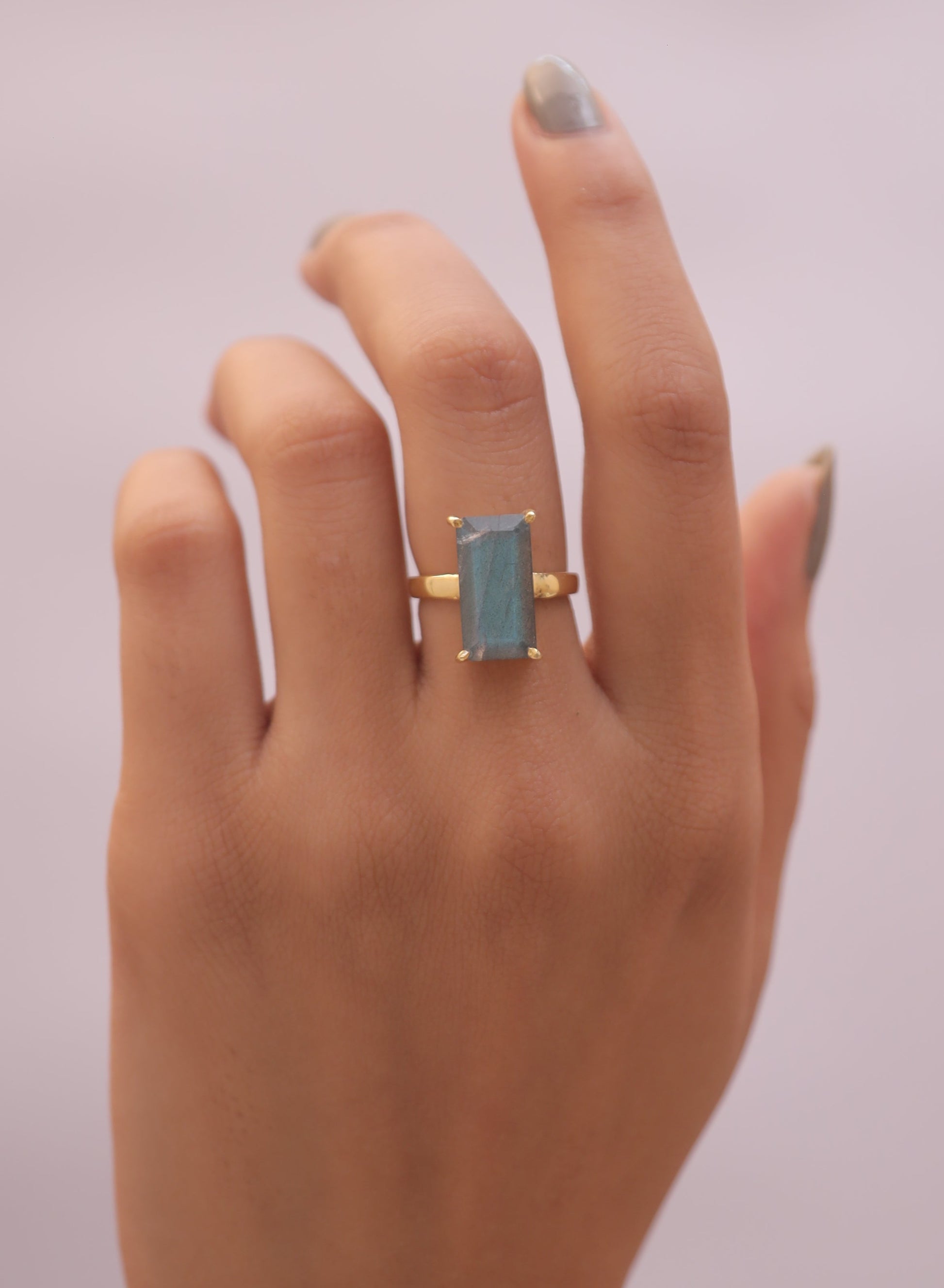 Elevate your style with the Labradorite , a masterpiece that blends natural beauty with refined craftsmanship. The ring features a radiant Labradorite centerpiece, carefully cut to enhance its inherent allure and brilliance. Set in a band crafted from 925 sterling silver, it offers durability and a lasting shine that complements the gemstone’s mesmerizing glow.