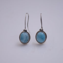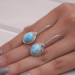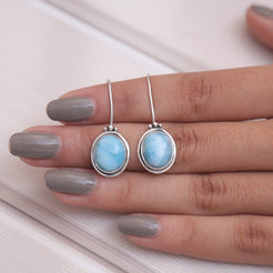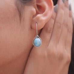 Elevate your style with the Larimar Sterling Silver Earrings a testament to blending natural beauty with refined craftsmanship. Each Earrings features a radiant larimar gemstone, carefully cut to enhance its inherent allure and brilliance. Set in 925 sterling silver, these Earrings offer durability and a lasting shine that complements the gemstone's vibrant hue.