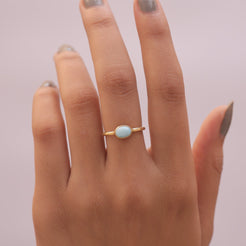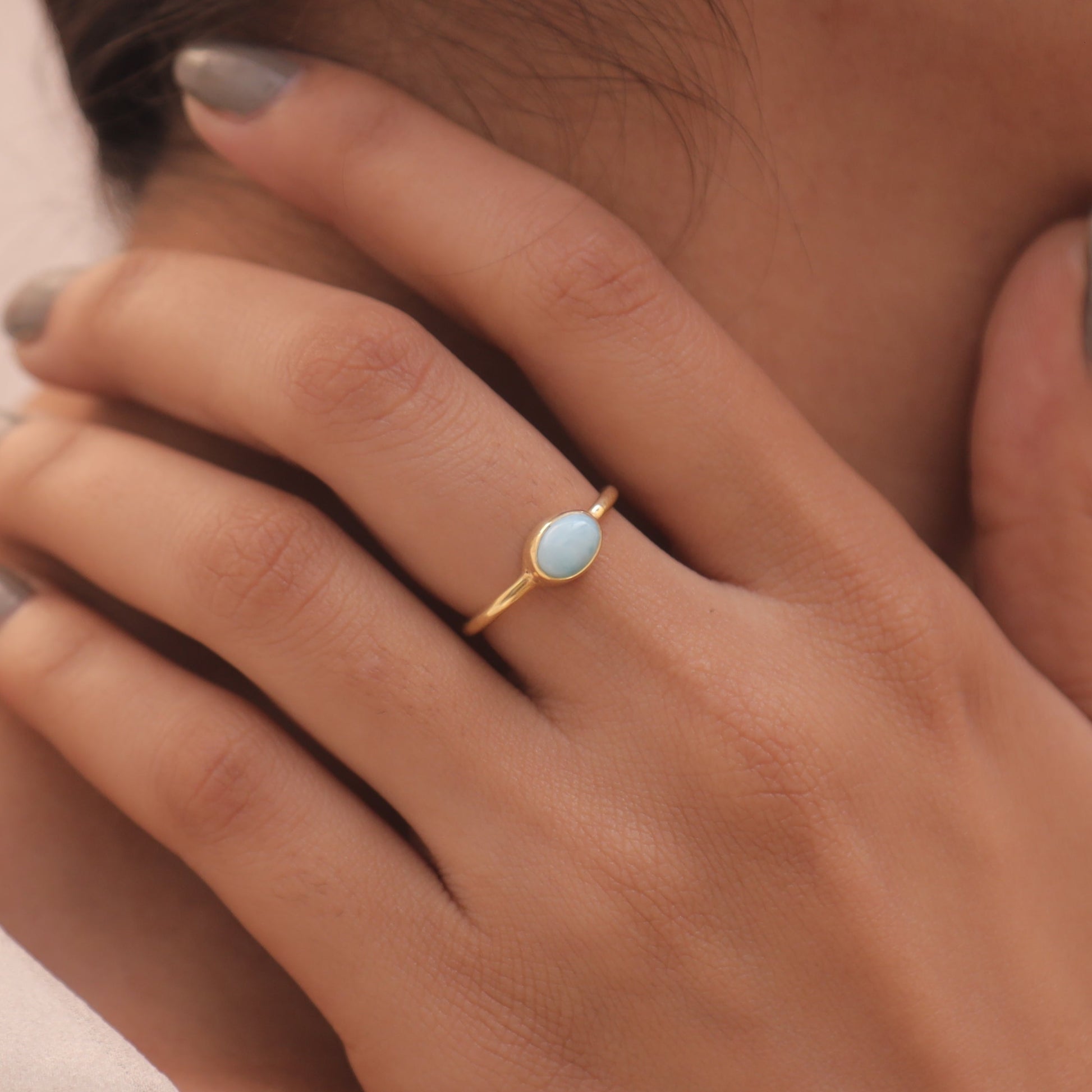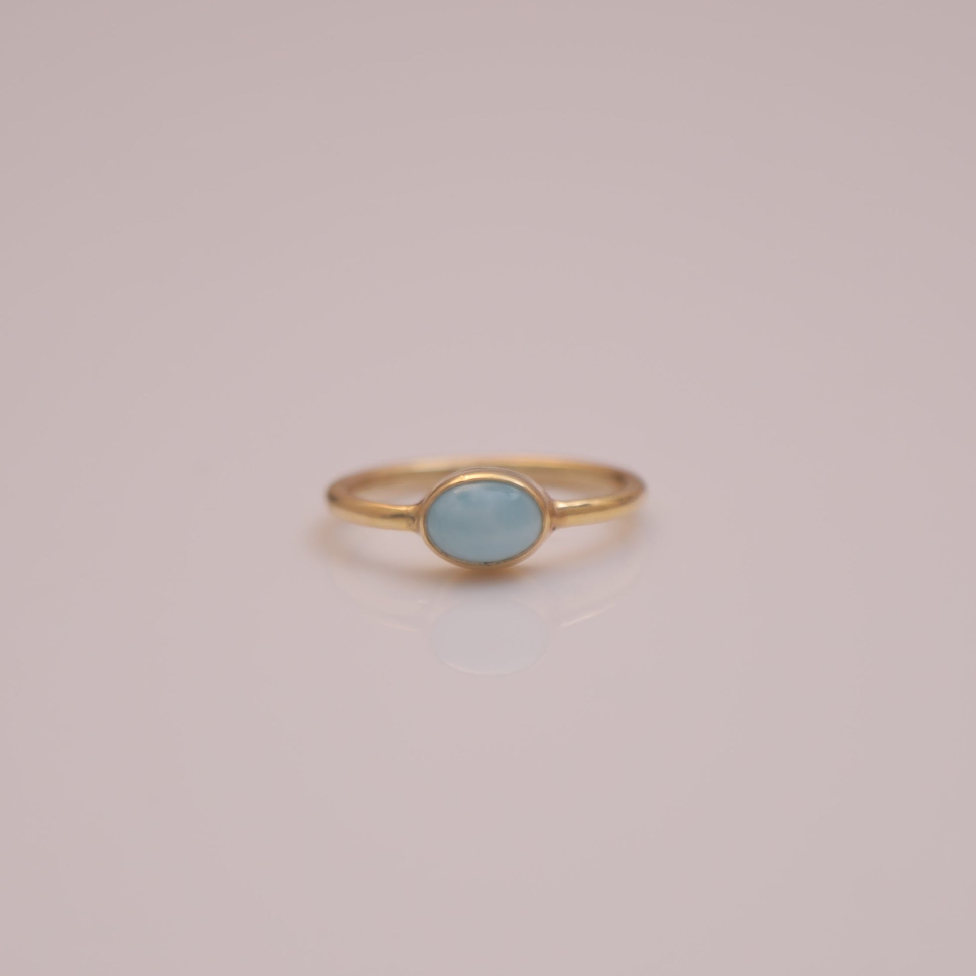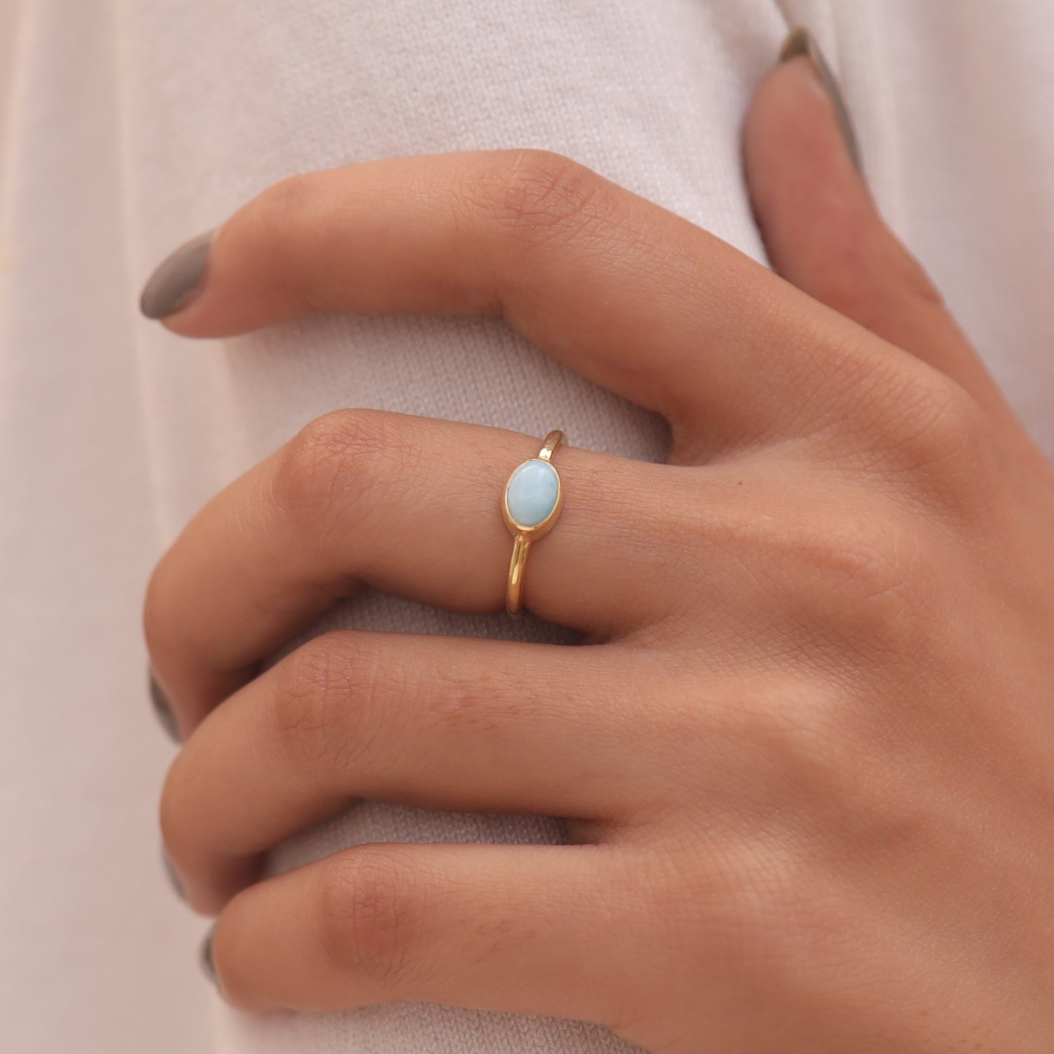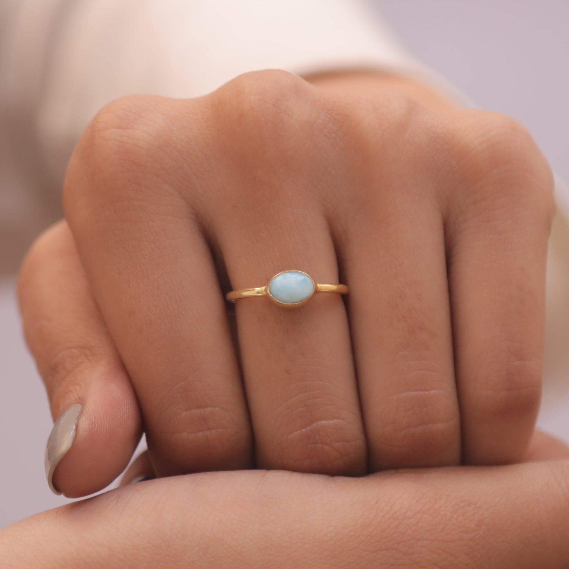 Elevate your style with the Larimar Ring, a masterpiece that blends natural beauty with refined craftsmanship. The ring features a radiant Larimar centerpiece, carefully cut to enhance its inherent allure and brilliance. Set in a band crafted from 925 sterling silver, it offers durability and a lasting shine that complements the gemstone's vibrant hue.