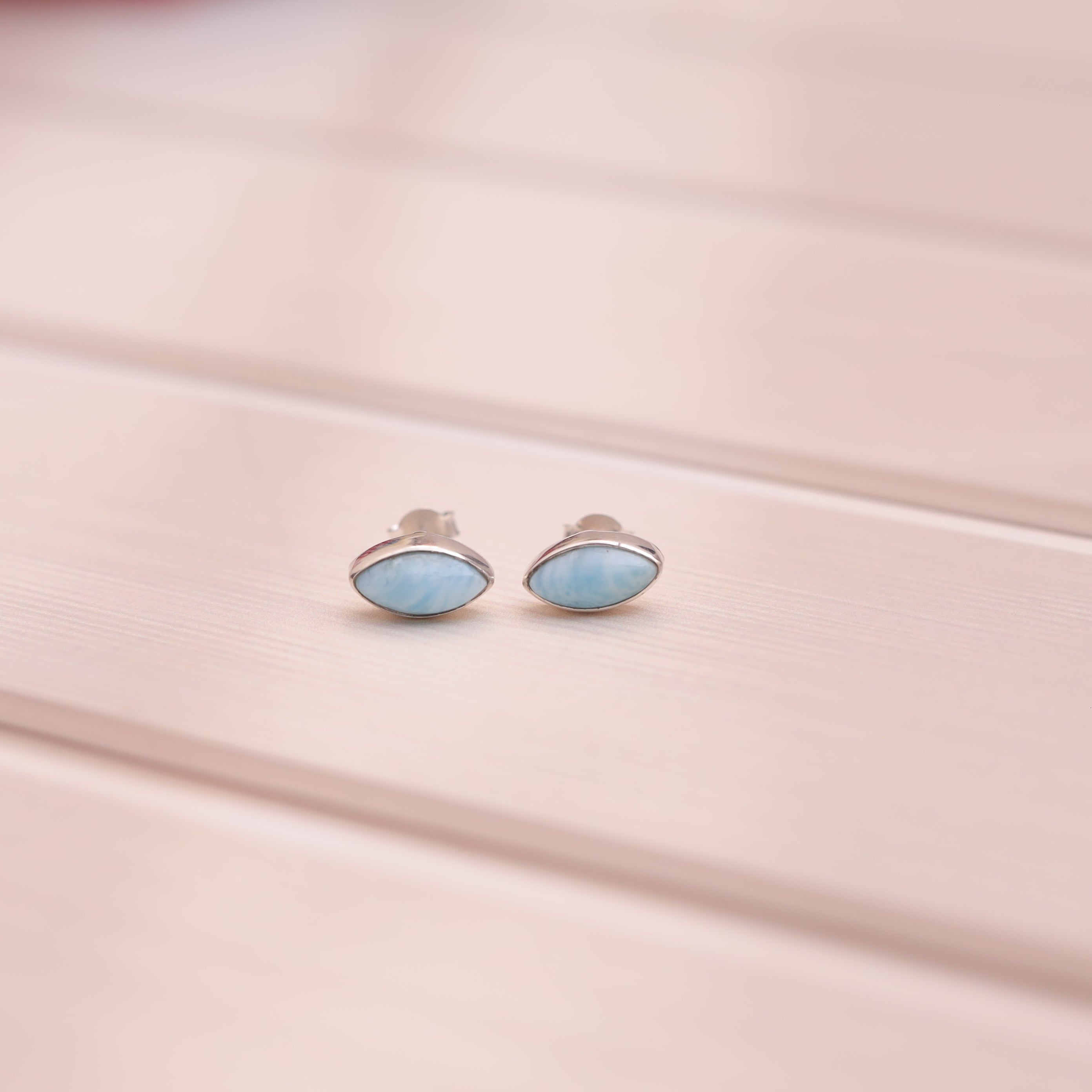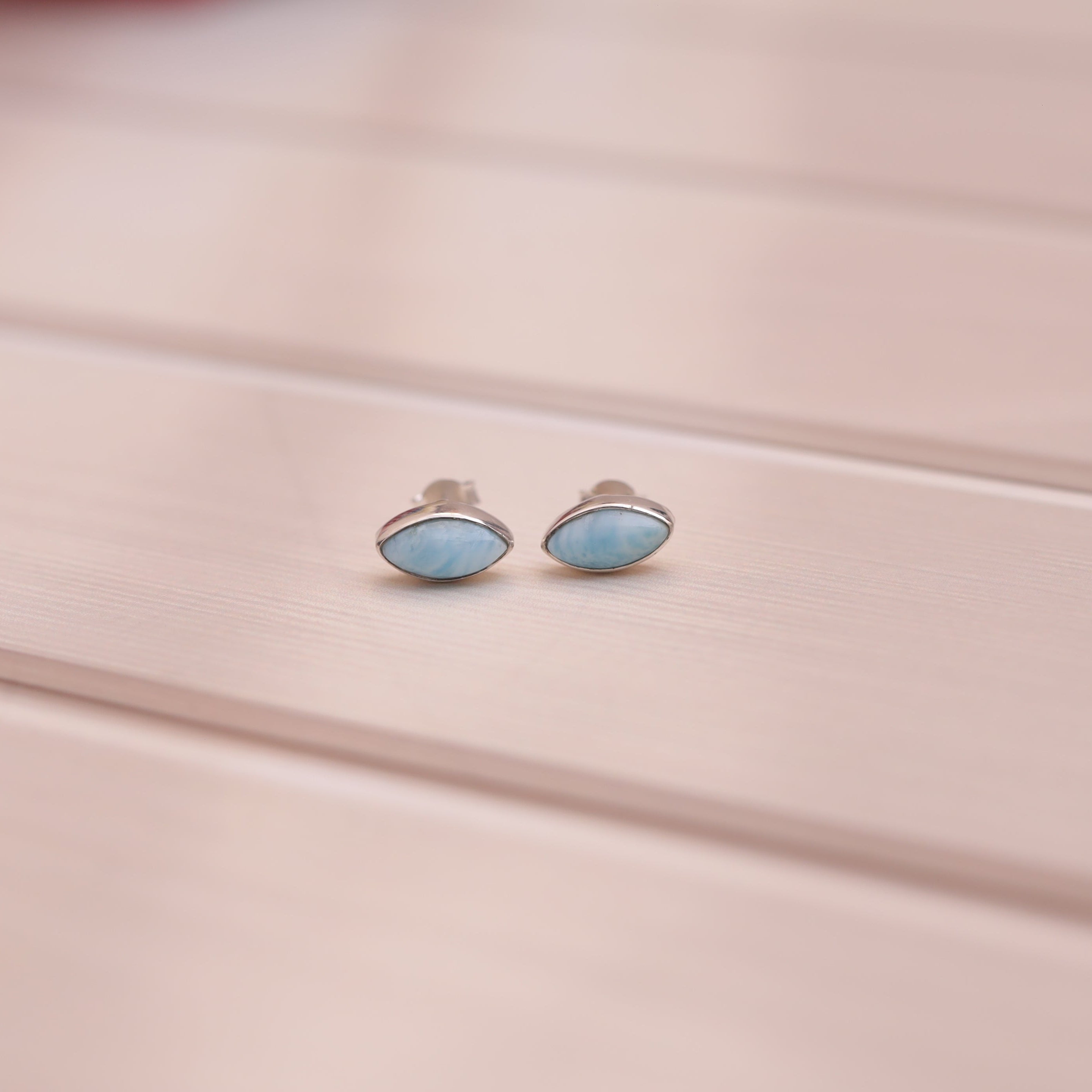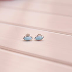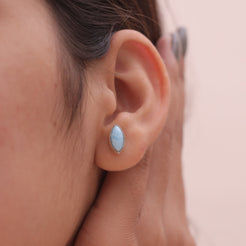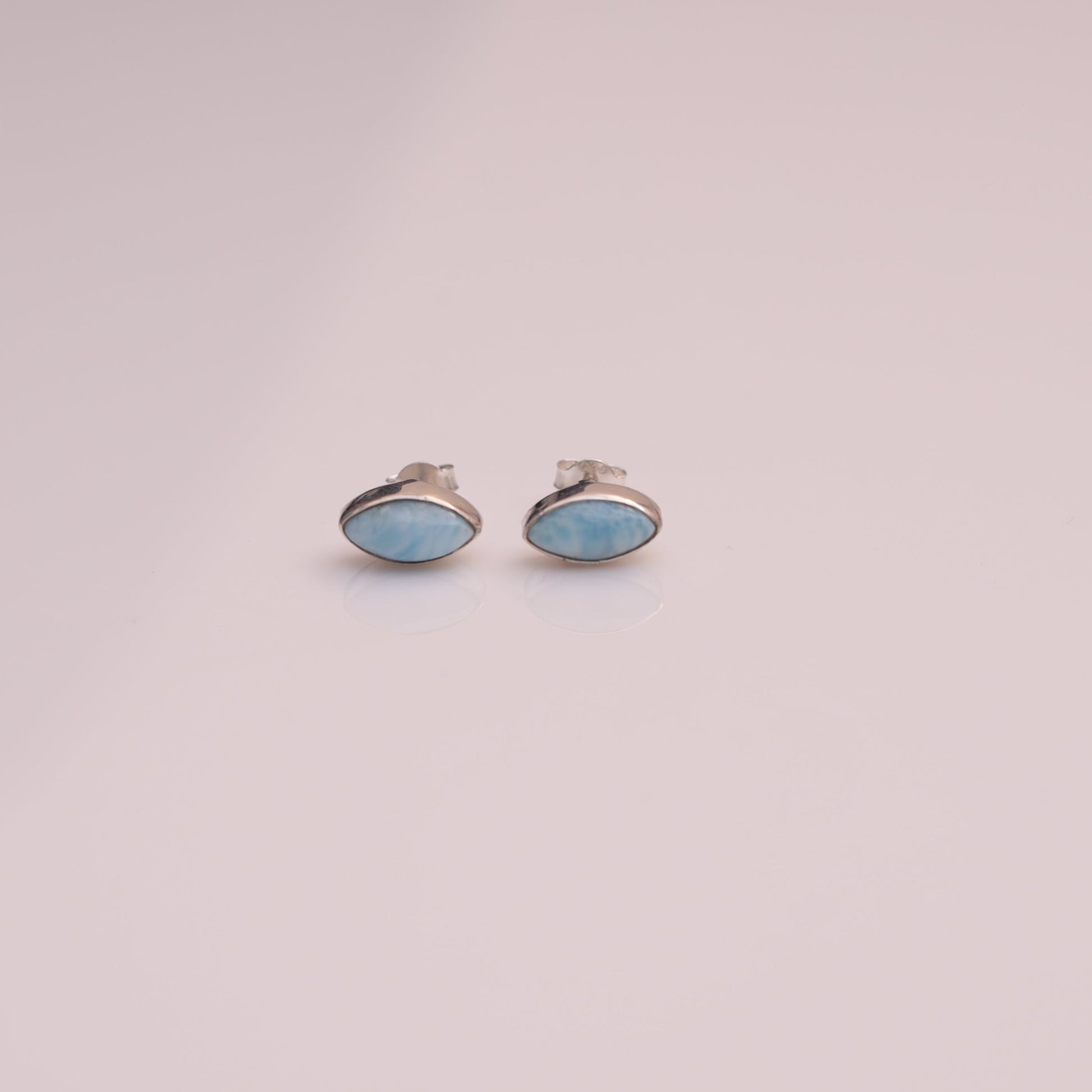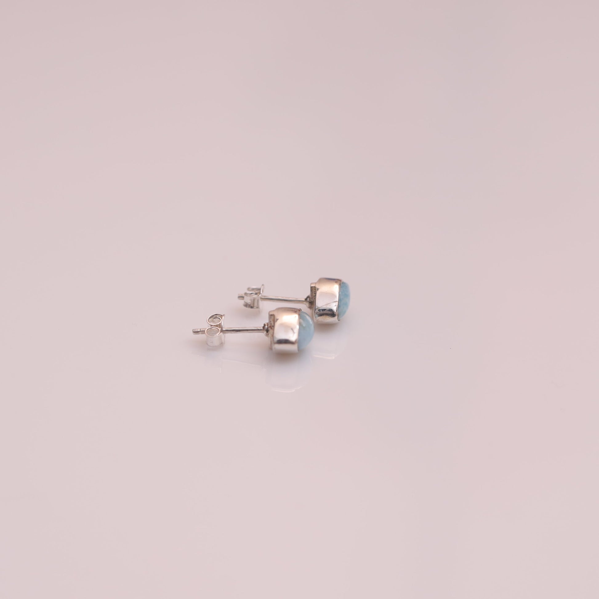 Elevate your style with the Larimar Sterling Silver Studs a testament to blending natural beauty with refined craftsmanship. Each Studs features a radiant larimar gemstone, carefully cut to enhance its inherent allure and brilliance. Set in 925 sterling silver, these studs offer durability and a lasting shine that complements the gemstone's vibrant hue.