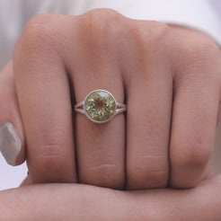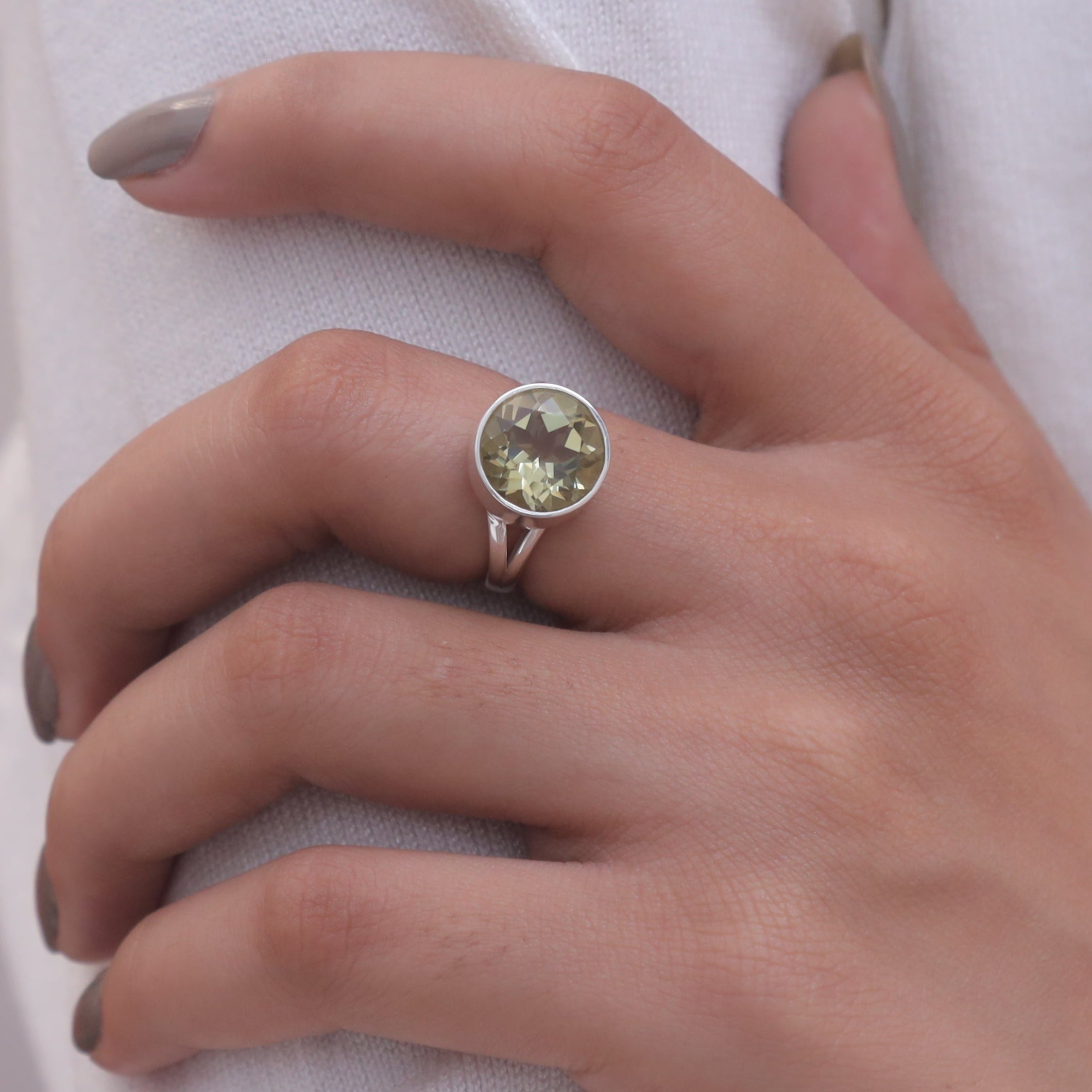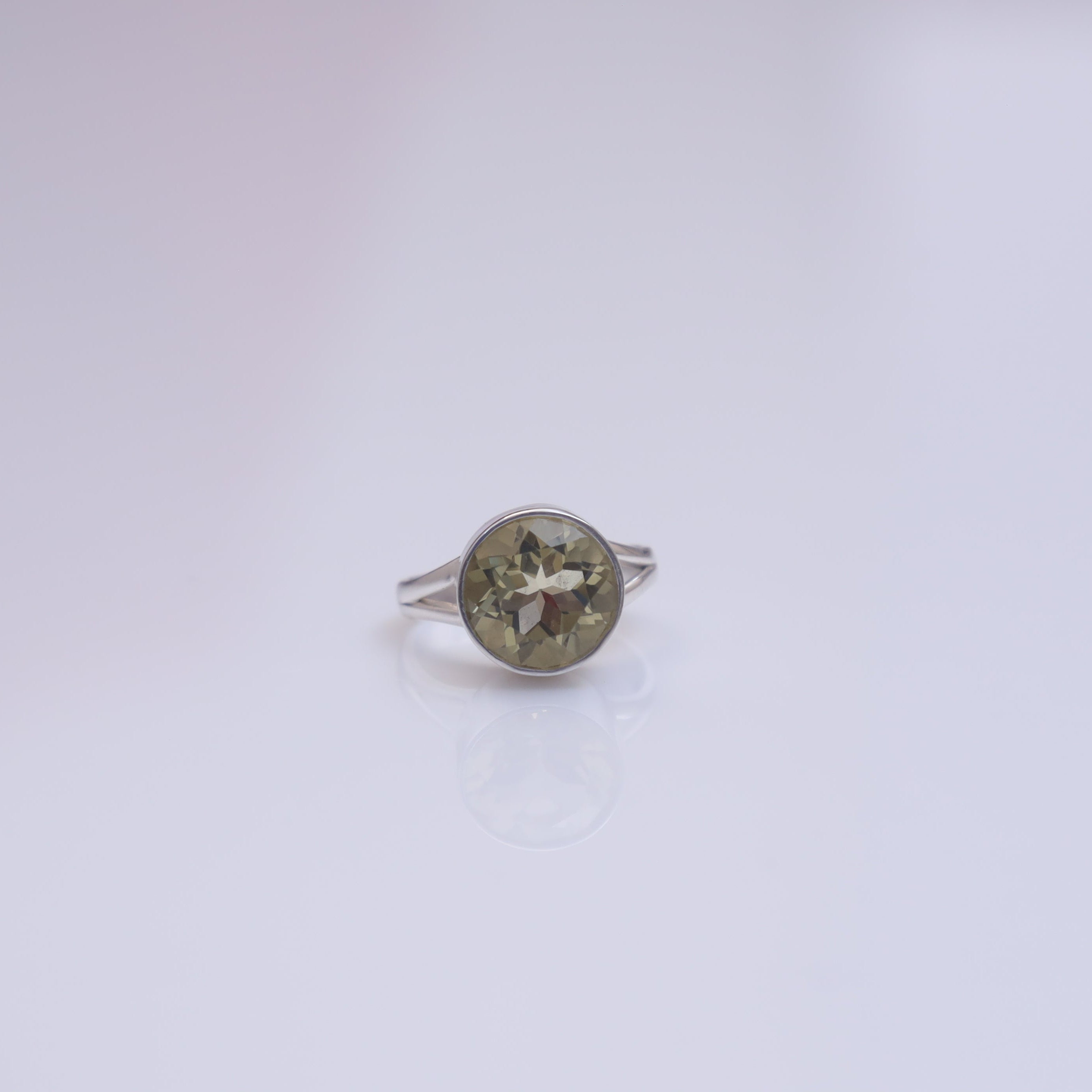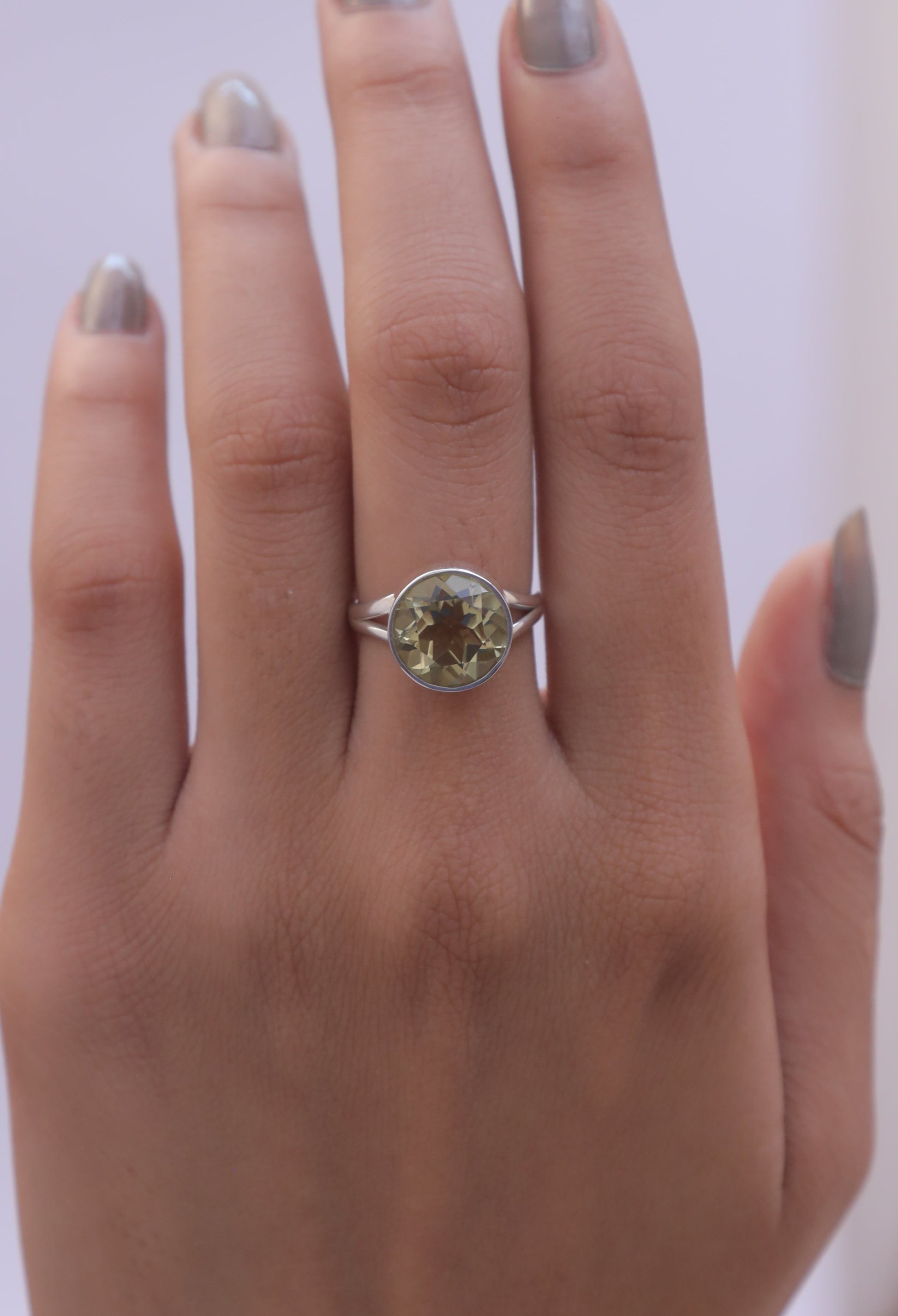 Each detail of the ring showcases expert craftsmanship, from the precisely set prongs securing the Lemon Topaz to the polished silver band ensuring a comfortable fit. The design allows the Lemon Topaz to shine as the focal point, making it a versatile accessory suitable for everyday wear or special occasions.