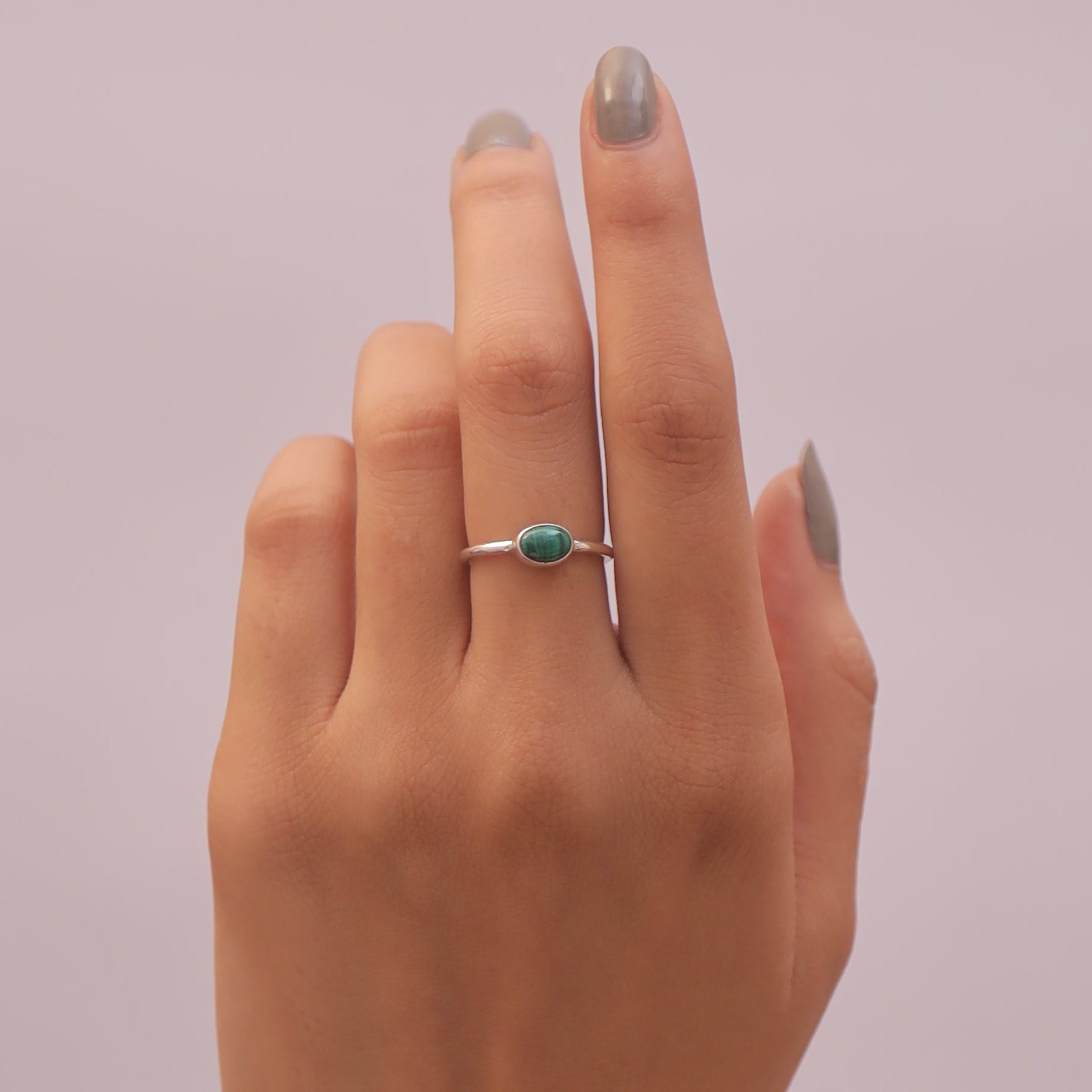 Crafted with precision, the malachite is securely held by polished prongs, allowing it to shine as the focal point of each ring. The design ensures comfort and a perfect fit, making these rings versatile for everyday wear or special occasions.