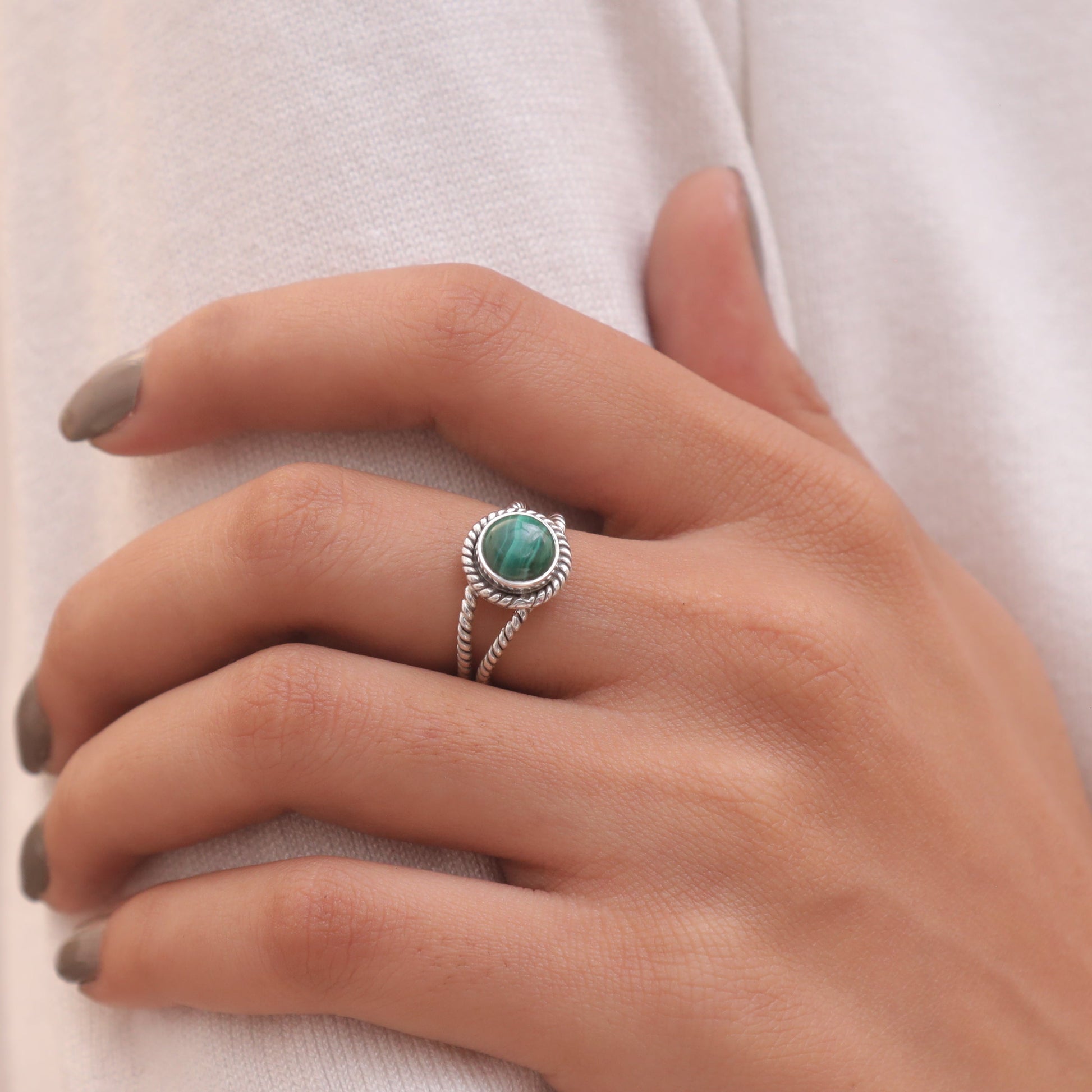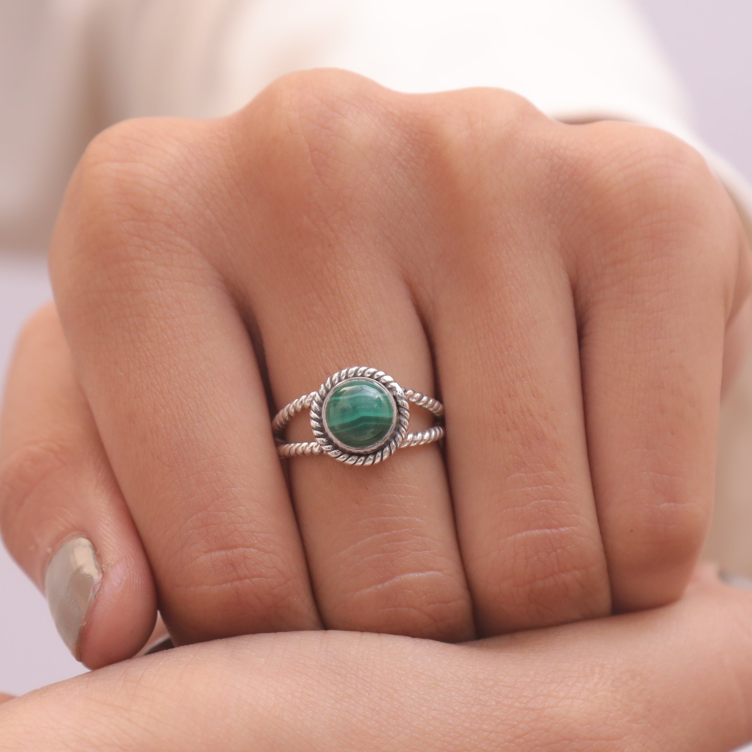Elevate your style with the Malachite Silver Ring, a testament to blending natural beauty with refined craftsmanship. Each ring features a radiant malachite gemstone, carefully cut to enhance its inherent allure and brilliance. Set in 925 sterling silver, these rings offer durability and a lasting shine that complements the gemstone's vibrant hue.