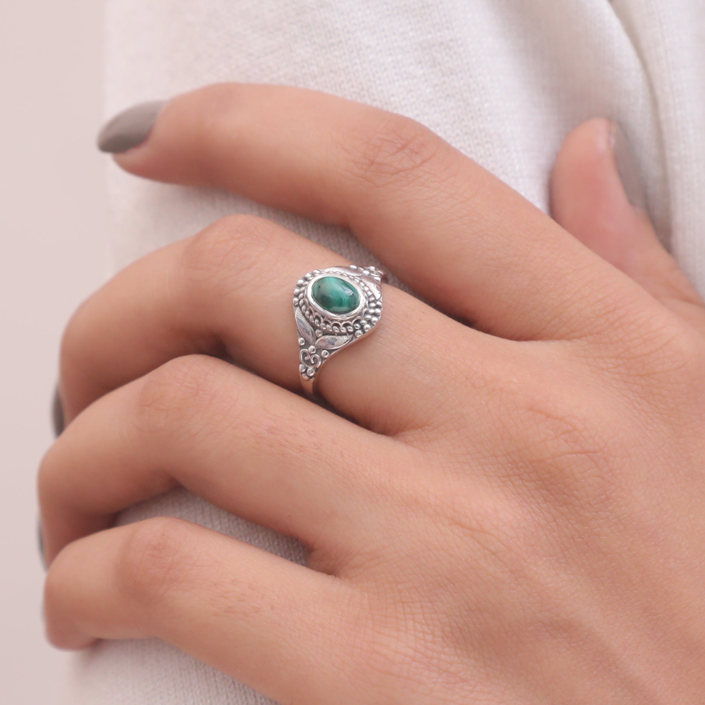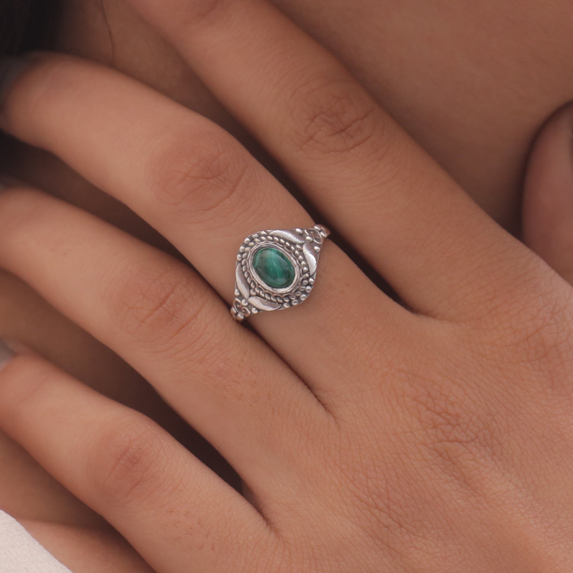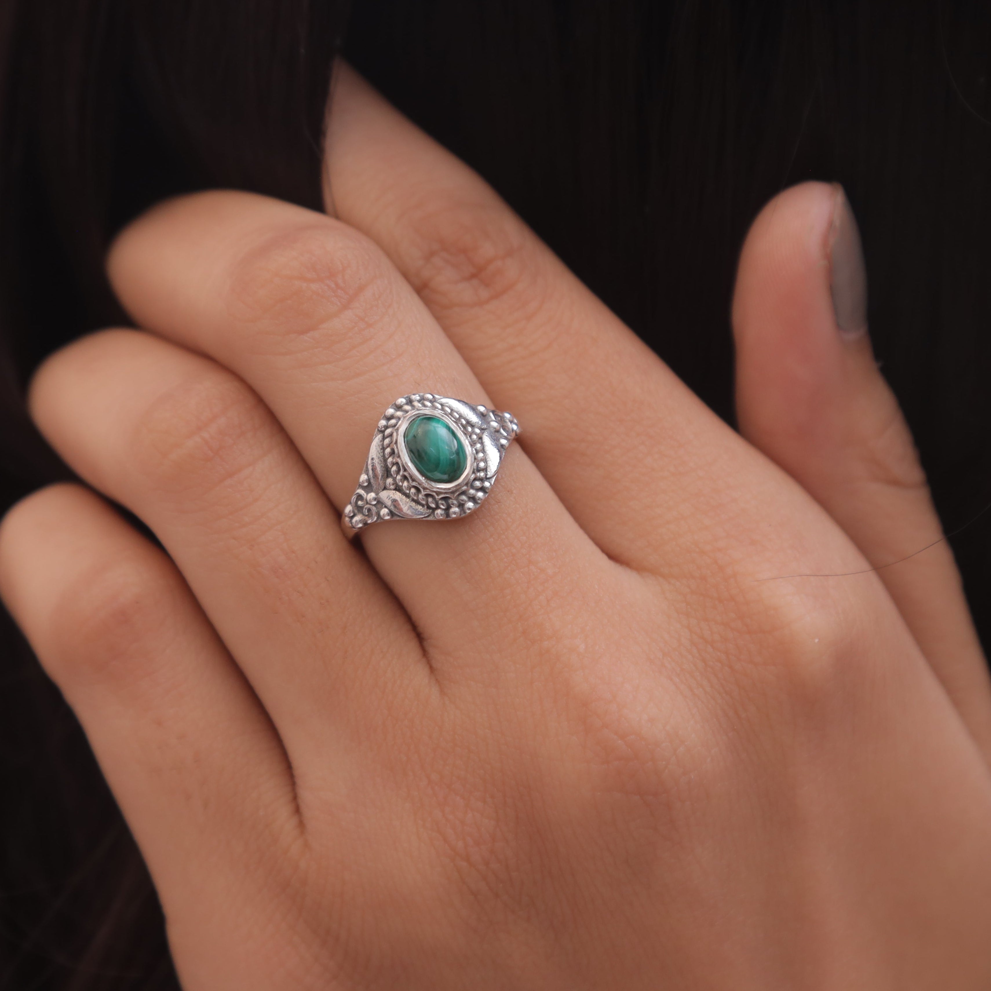 Elevate your style with the Malachite Silver Ring, a testament to blending natural beauty with refined craftsmanship. Each ring features a radiant malachite gemstone, carefully cut to enhance its inherent allure and brilliance. Set in 925 sterling silver, these rings offer durability and a lasting shine that complements the gemstone's vibrant hue.