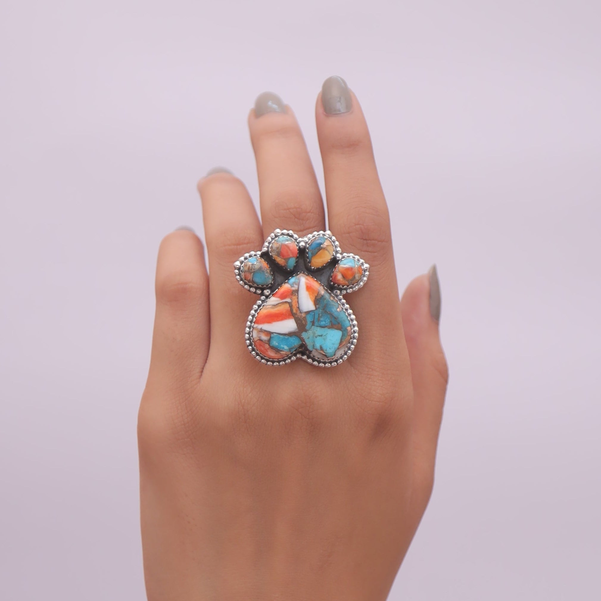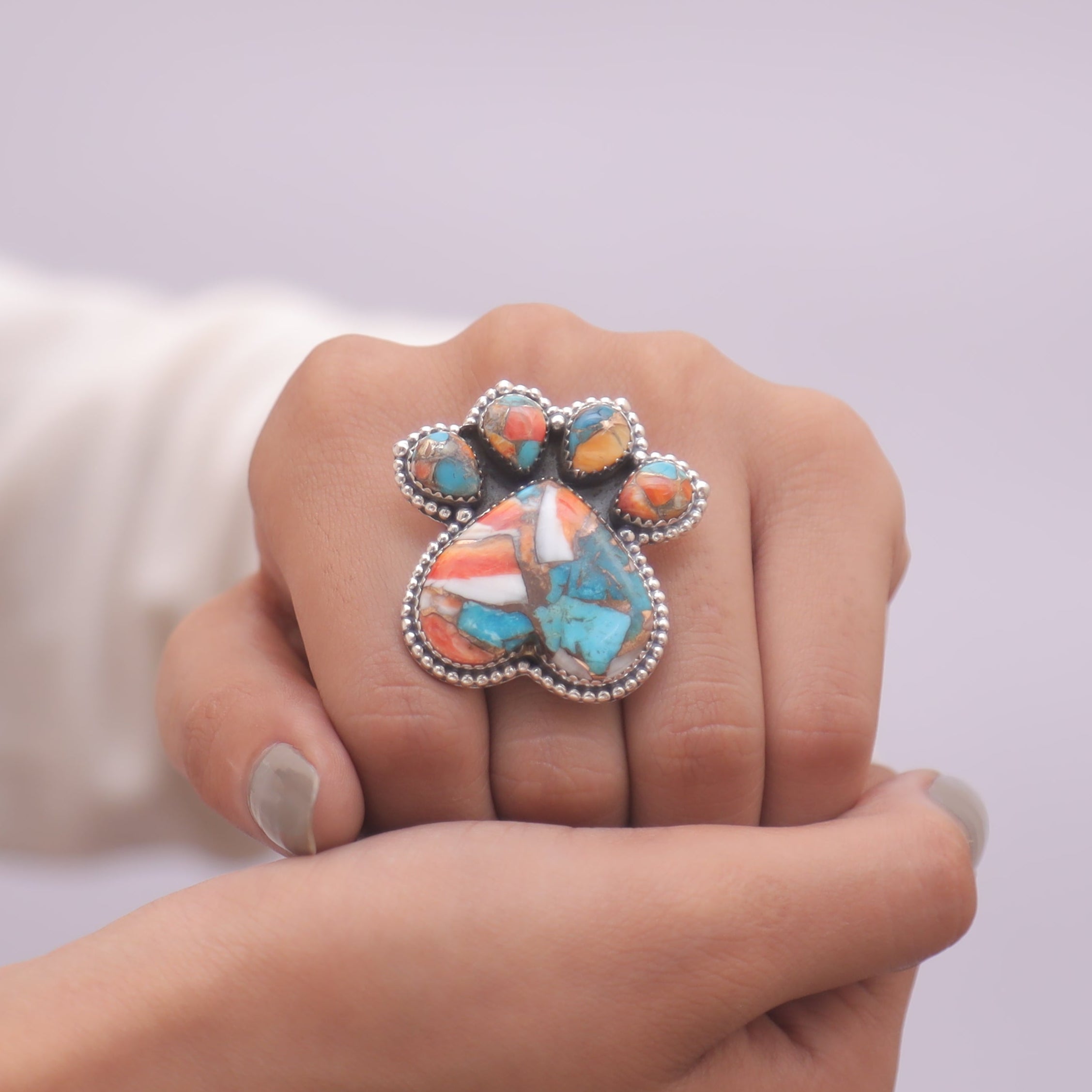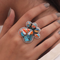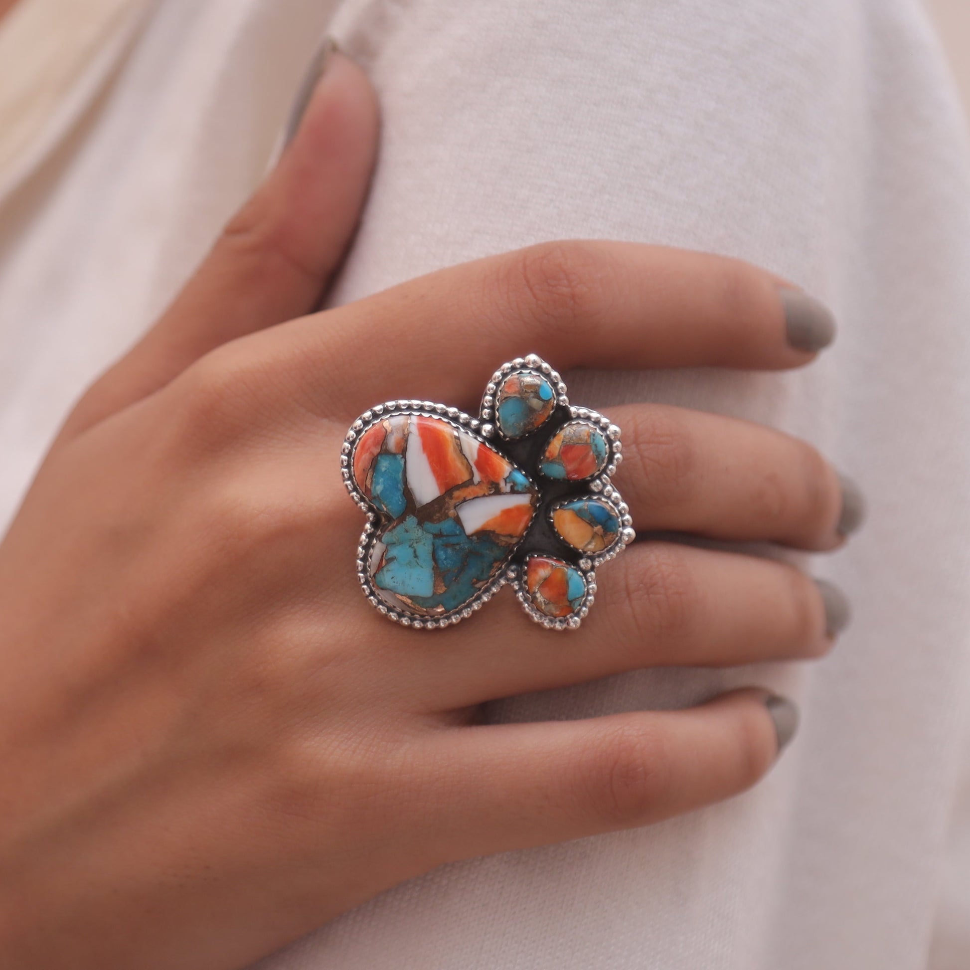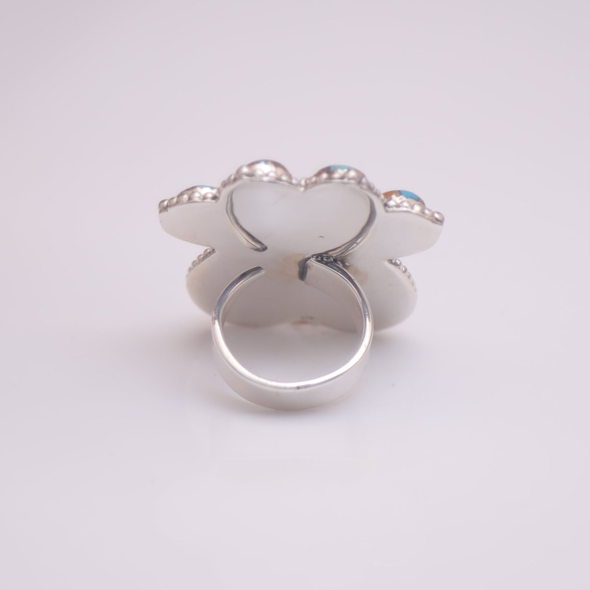 Each detail of the ring showcases expert craftsmanship, from the precisely set prongs securing the Oyster Turquoise to the polished silver band ensuring a comfortable fit. The design allows the Oyster Turquoise to shine as the focal point, making it a versatile accessory suitable for everyday wear or special occasions.