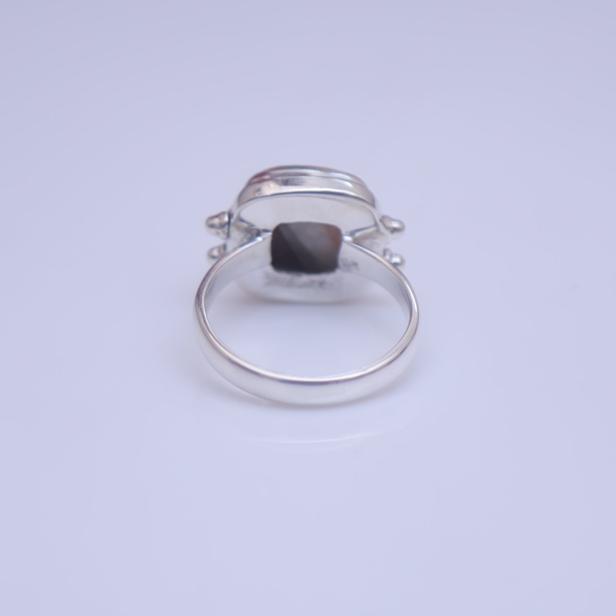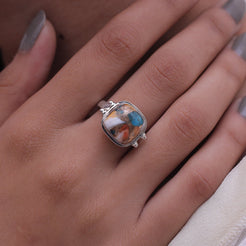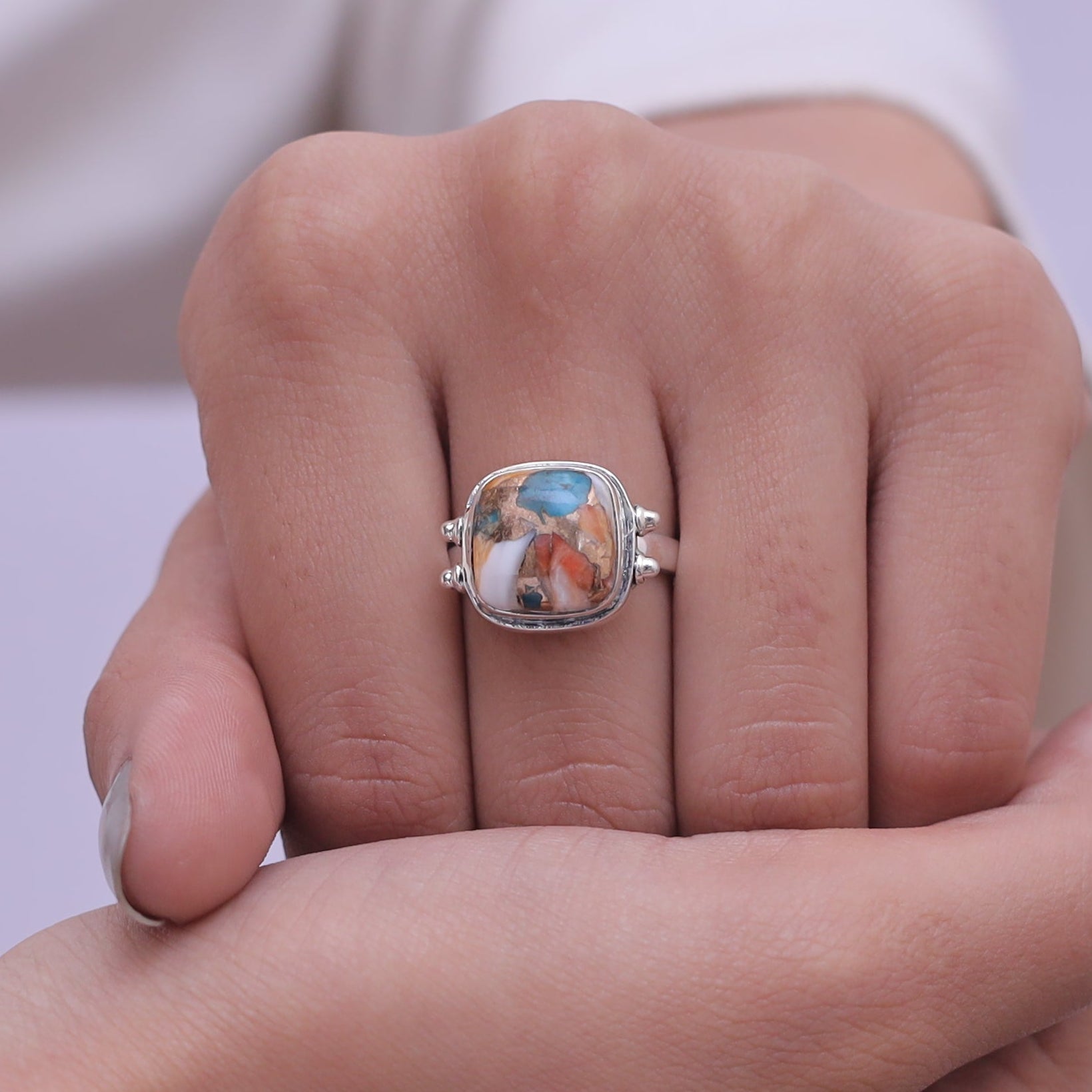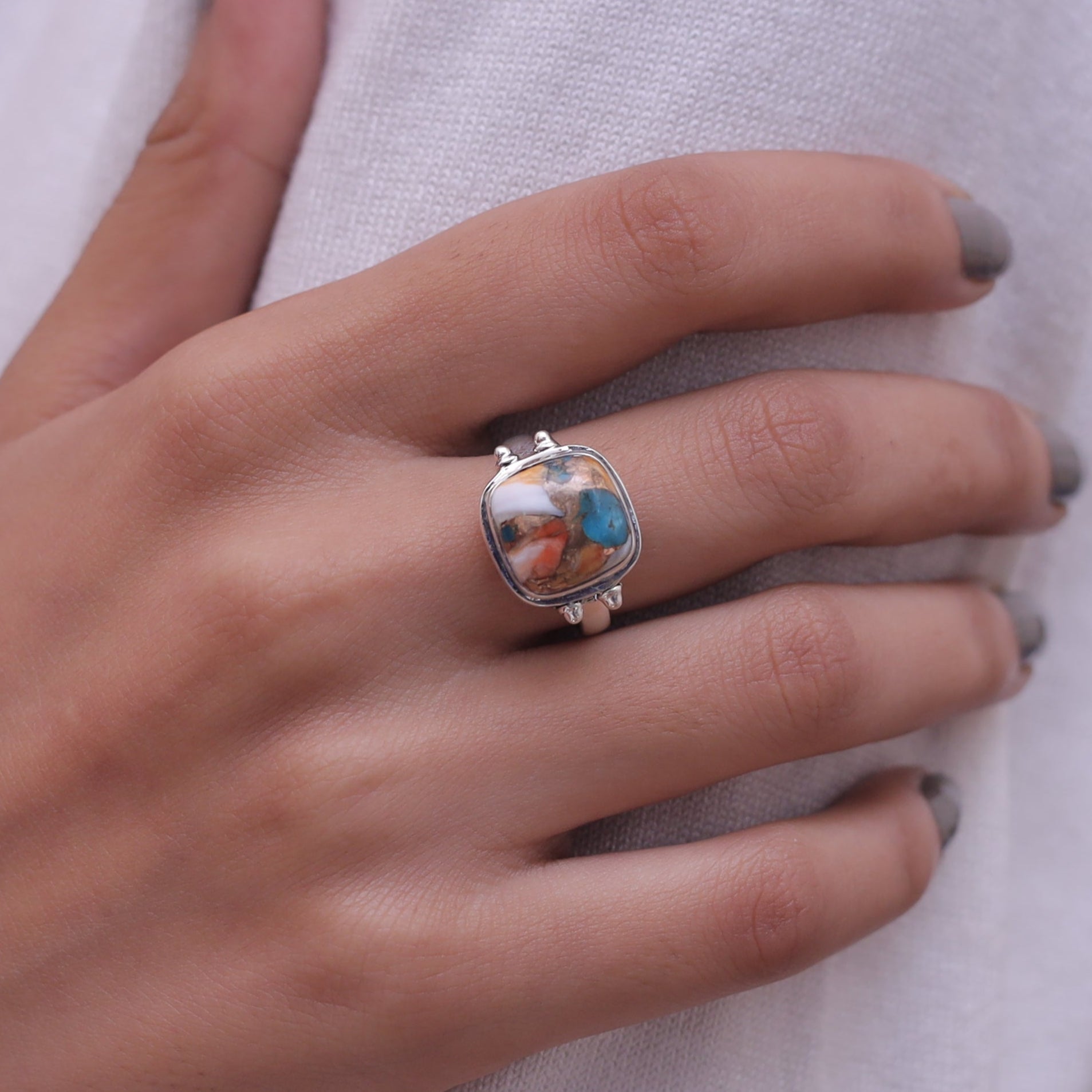 Each detail of the ring showcases expert craftsmanship, from the precisely set prongs securing the Oyster Turquoise to the polished silver band ensuring a comfortable fit. The design allows the Oyster Turquoise to shine as the focal point, making it a versatile accessory suitable for everyday wear or special occasions.