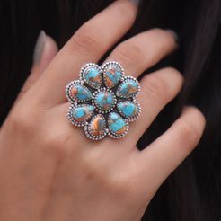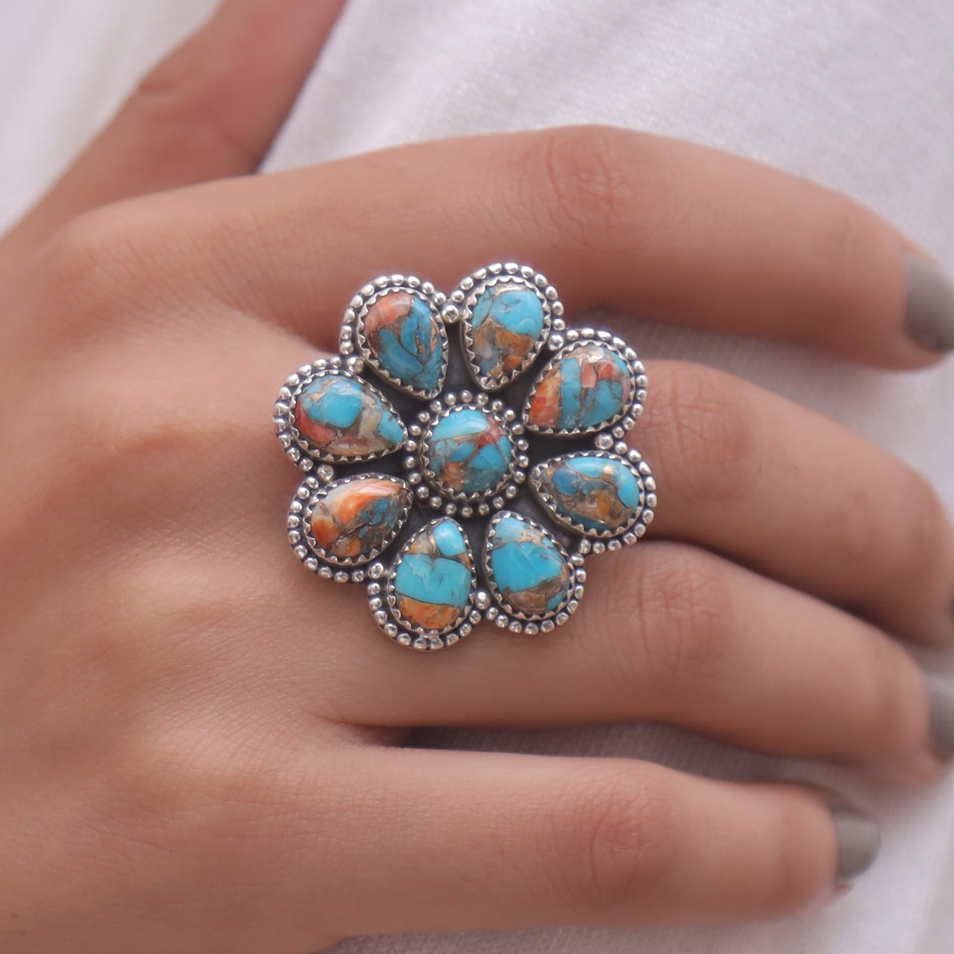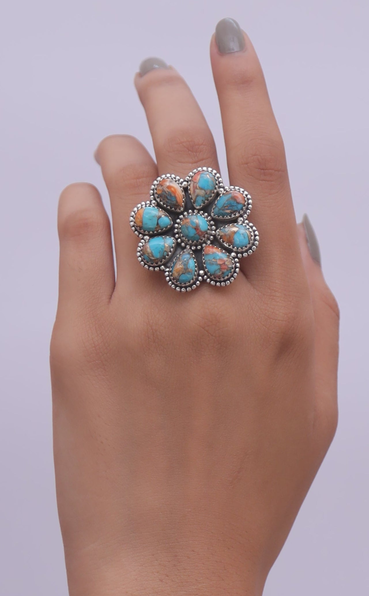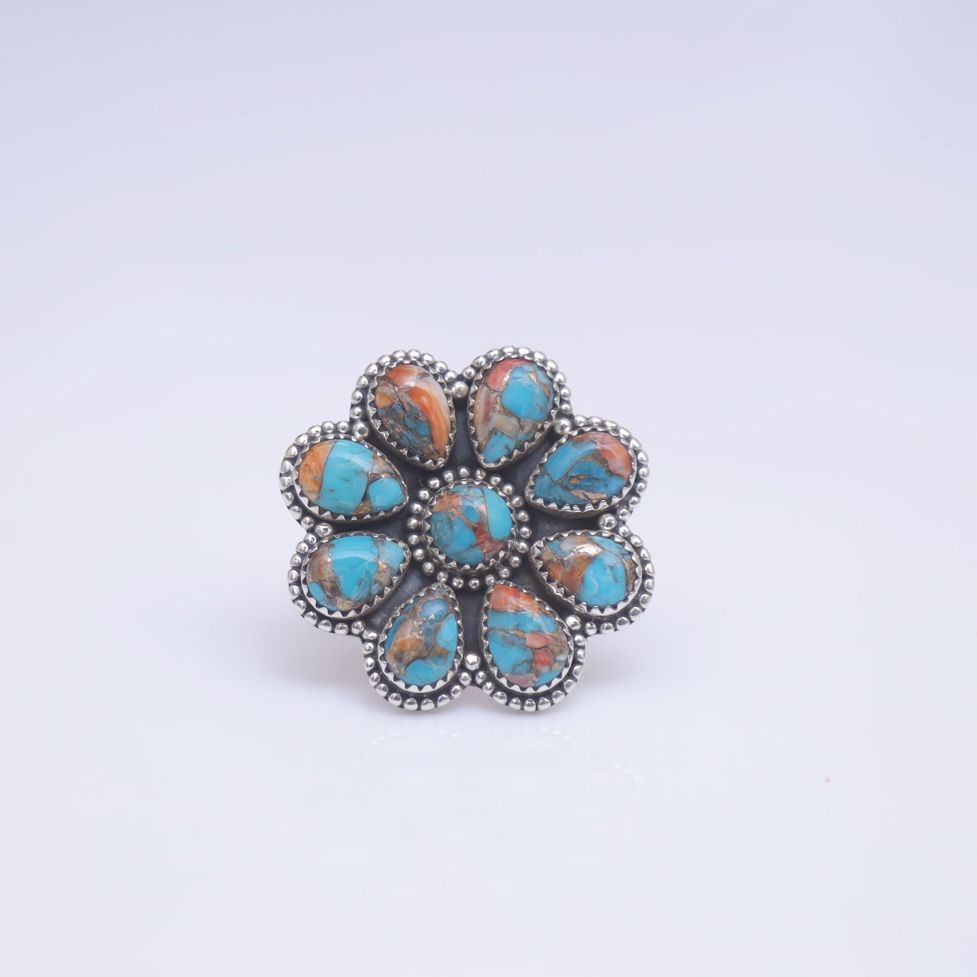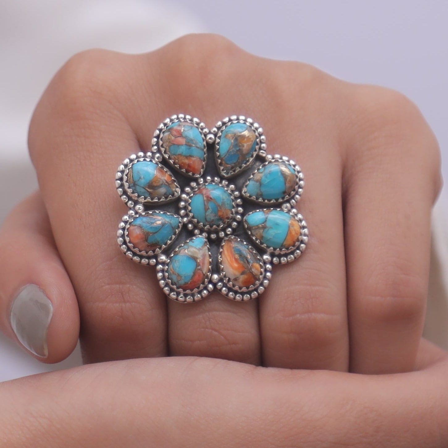 Each detail of the ring showcases expert craftsmanship, from the precisely set prongs securing the Oyster Turquoise to the polished silver band ensuring a comfortable fit. The design allows the Oyster Turquoise to shine as the focal point, making it a versatile accessory suitable for everyday wear or special occasions.