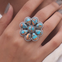 Elevate your style with the Oyster Turquoise Ring, a masterpiece that blends natural beauty with refined craftsmanship. The ring features a radiant Oyster Turquoise centrepiece, carefully cut to enhance its inherent allure and brilliance. Set in a band crafted from 925 sterling silver, it offers durability and a lasting shine that complements the gemstone's vibrant hue.