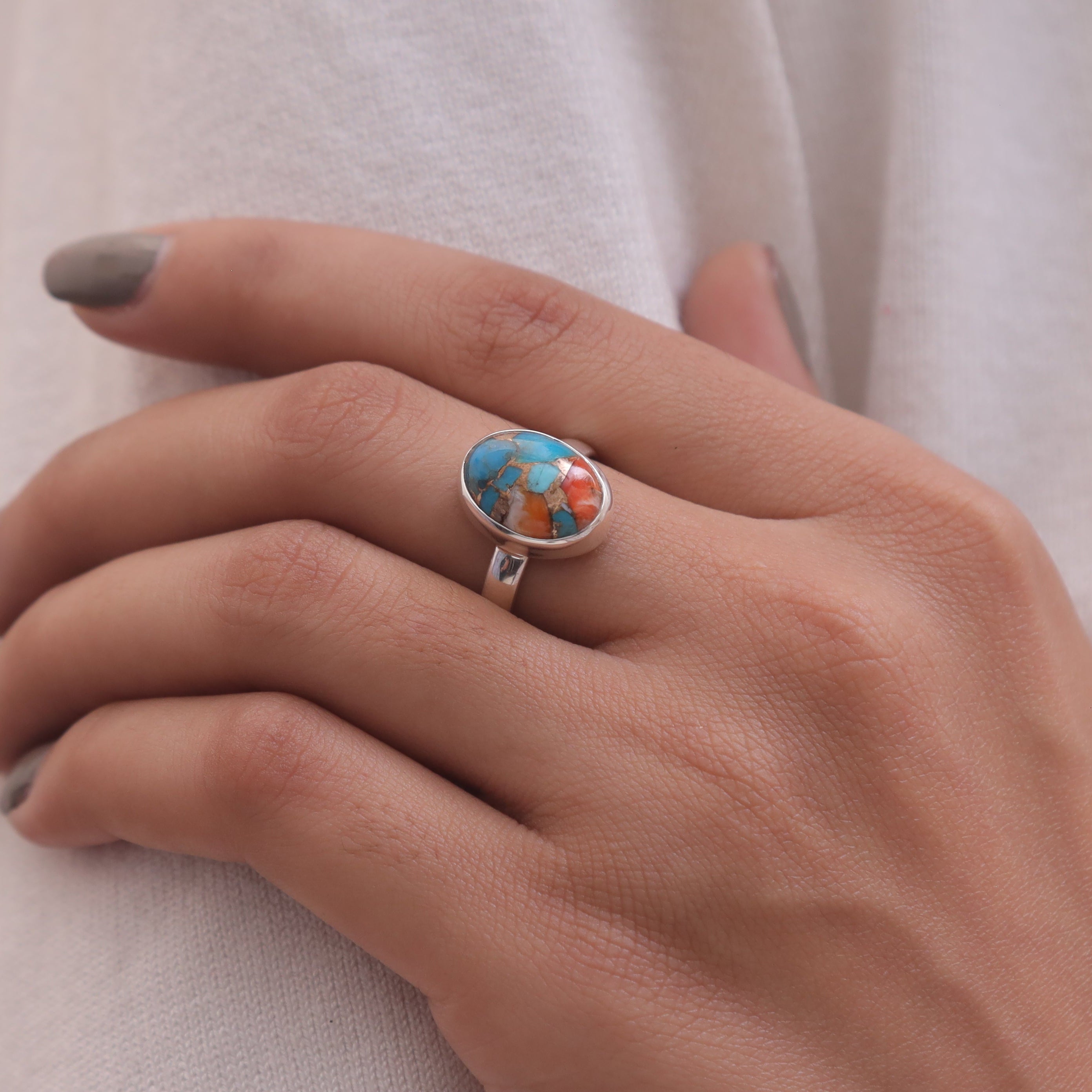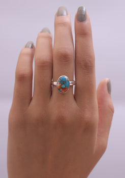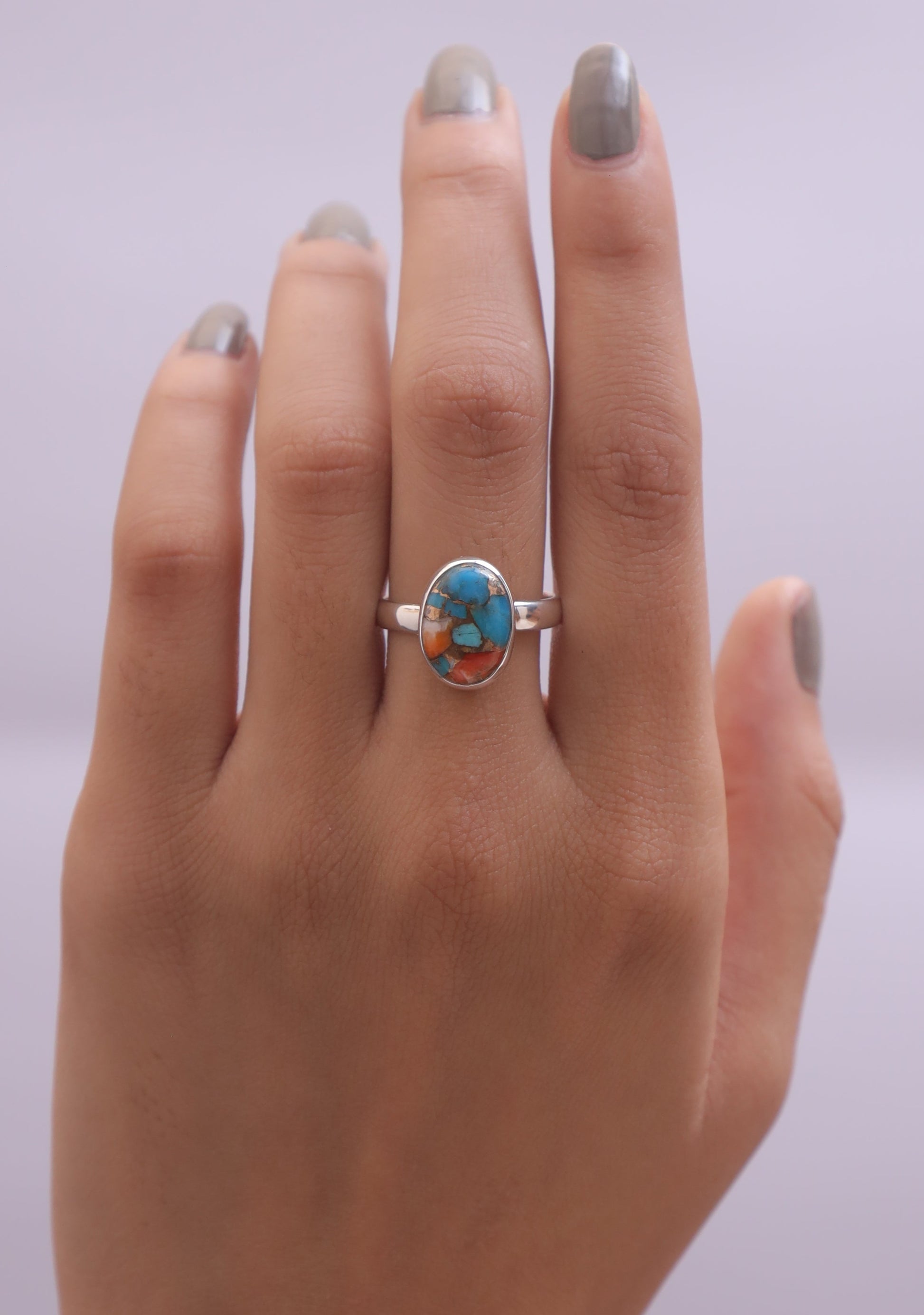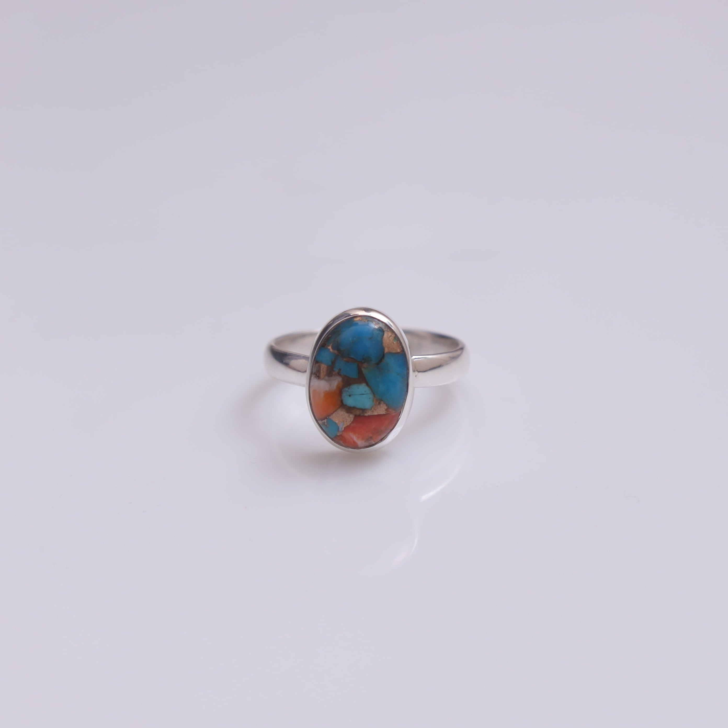 Each detail of the ring showcases expert craftsmanship, from the precisely set prongs securing the Oyster Turquoise to the polished silver band ensuring a comfortable fit. The design allows the Oyster Turquoise to shine as the focal point, making it a versatile accessory suitable for everyday wear or special occasions.