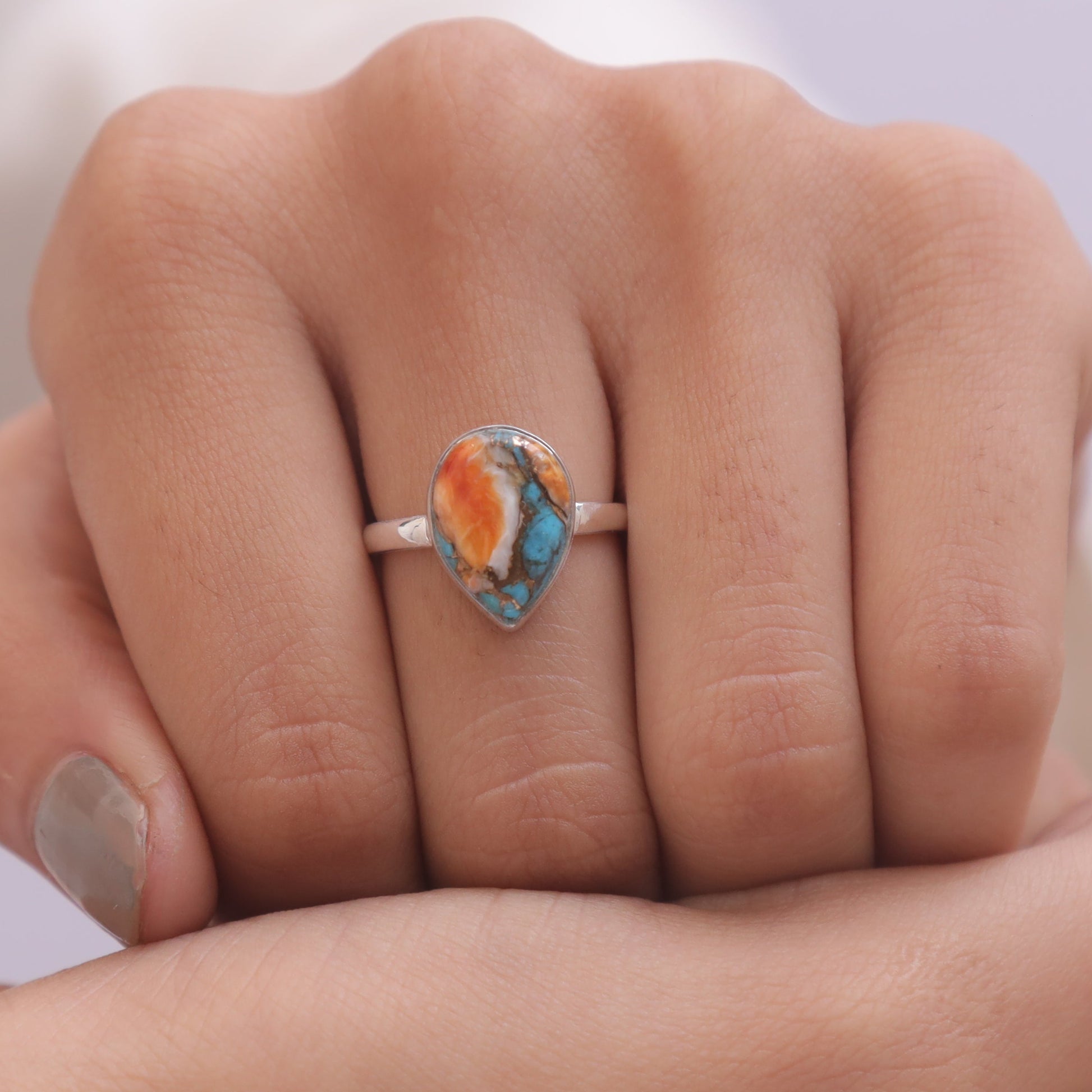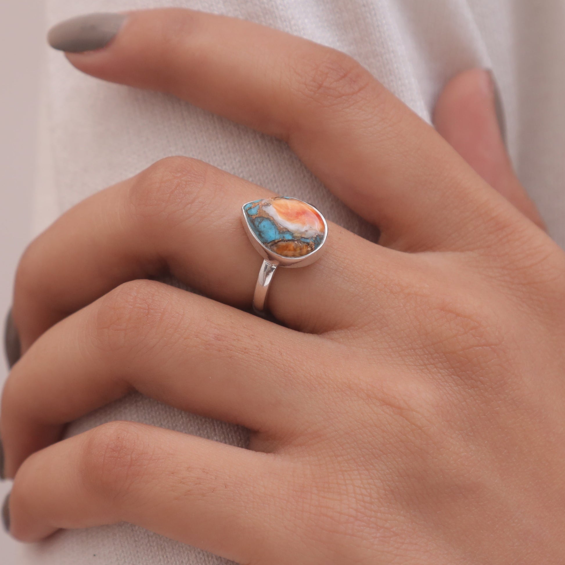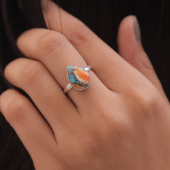 Elevate your style with the Oyster Turquoise Ring, a masterpiece that blends natural beauty with refined craftsmanship. The ring features a radiant Oyster Turquoise centrepiece, carefully cut to enhance its inherent allure and brilliance. Set in a band crafted from 925 sterling silver, it offers durability and a lasting shine that complements the gemstone's vibrant hue.