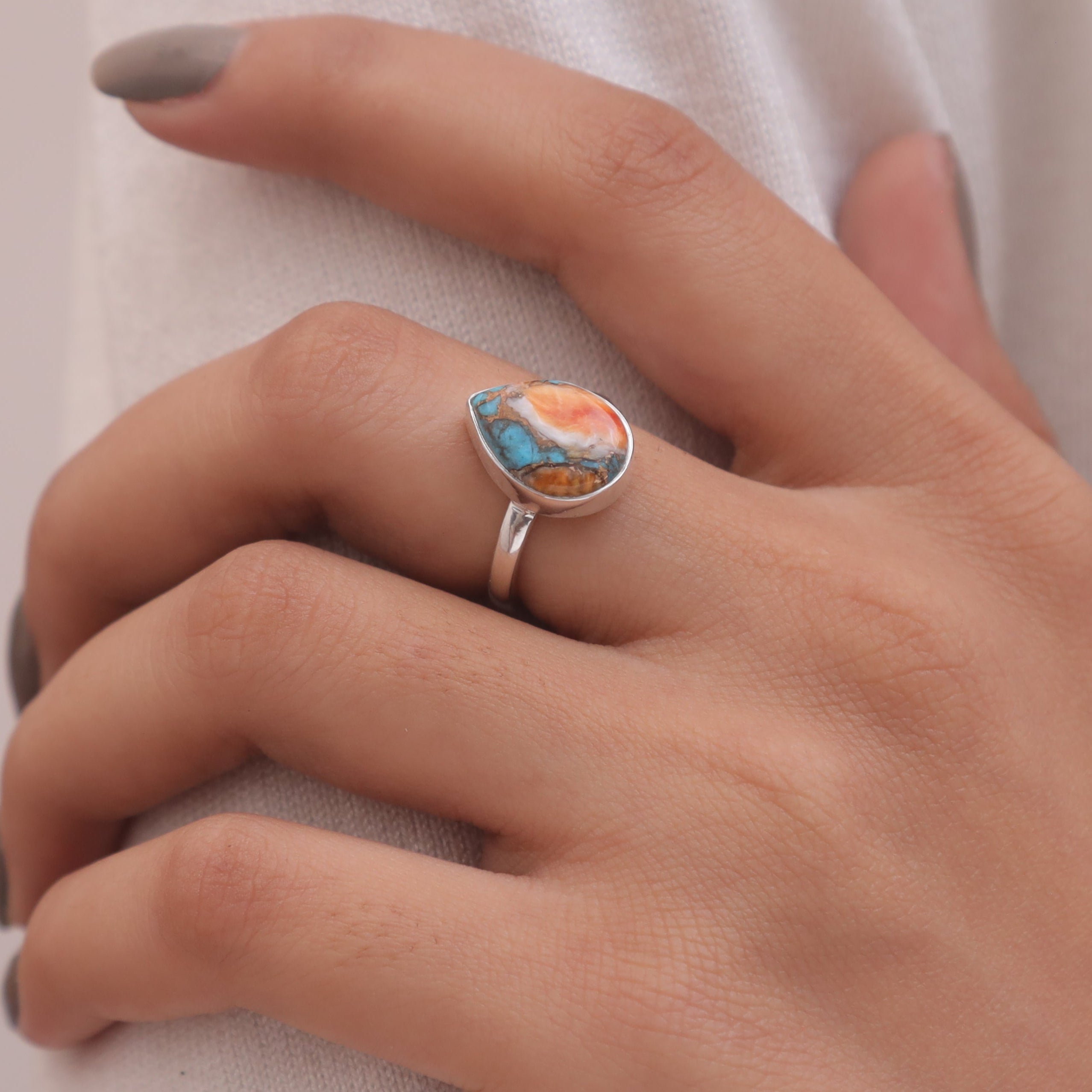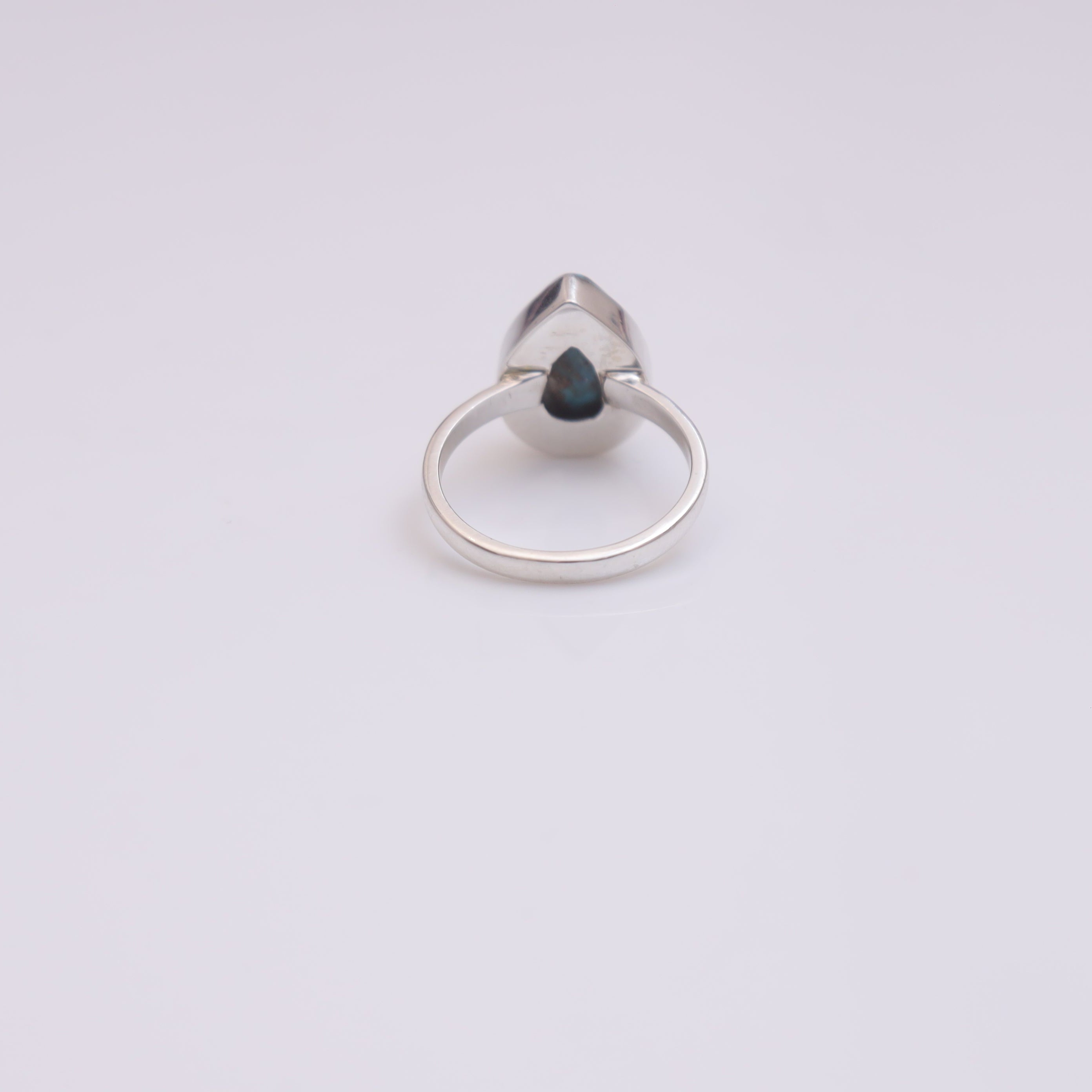 Each detail of the ring showcases expert craftsmanship, from the precisely set prongs securing the Oyster Turquoise to the polished silver band ensuring a comfortable fit. The design allows the Oyster Turquoise to shine as the focal point, making it a versatile accessory suitable for everyday wear or special occasions.
