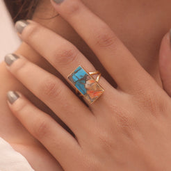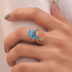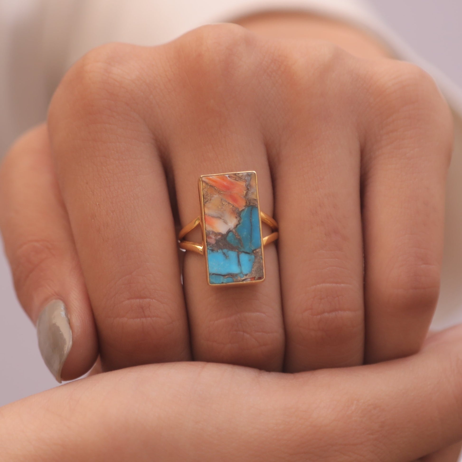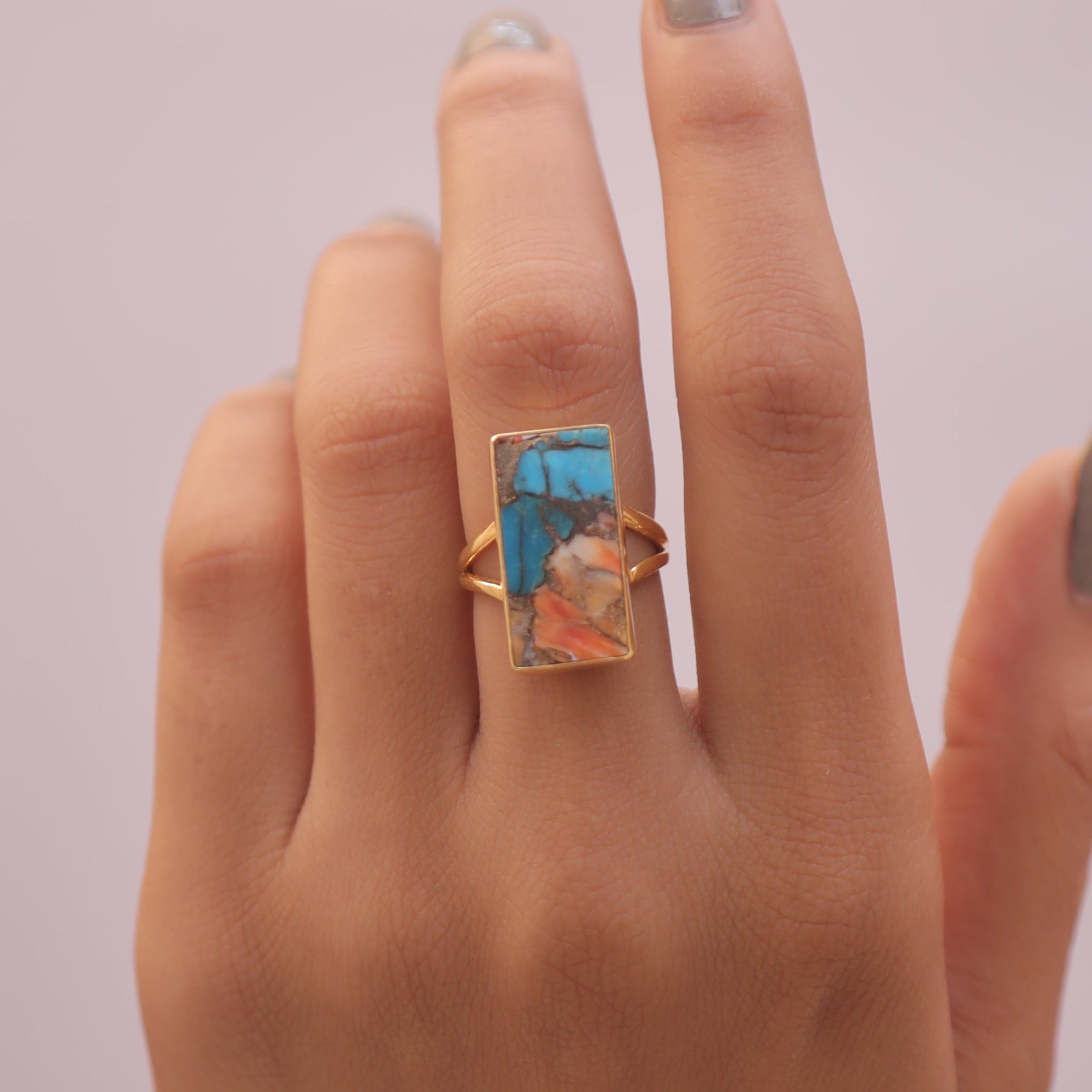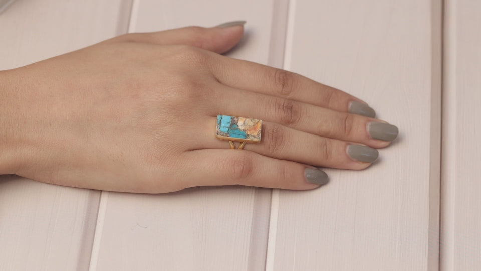 Oyster Turquoise 18k Gold Plated Sterling Silver Ring